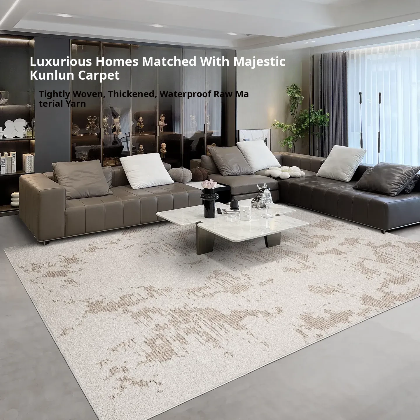 Gu Zhen Kunlun Snow-Resistant Waterproof Area Rug – Modern Minimalist Luxury Carpet for Living Room and Bedroom, Stylish and Easy to Clean, Perfect for Villas and High-End Spaces!