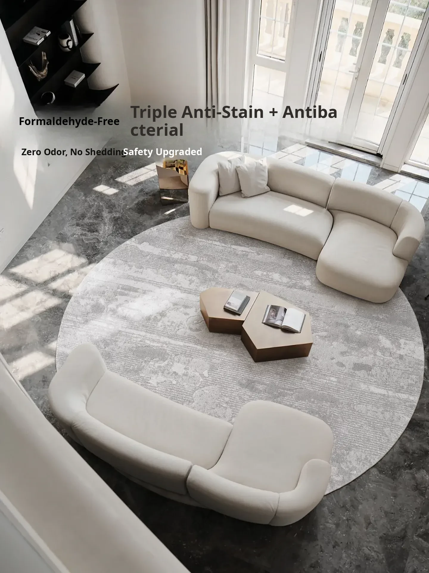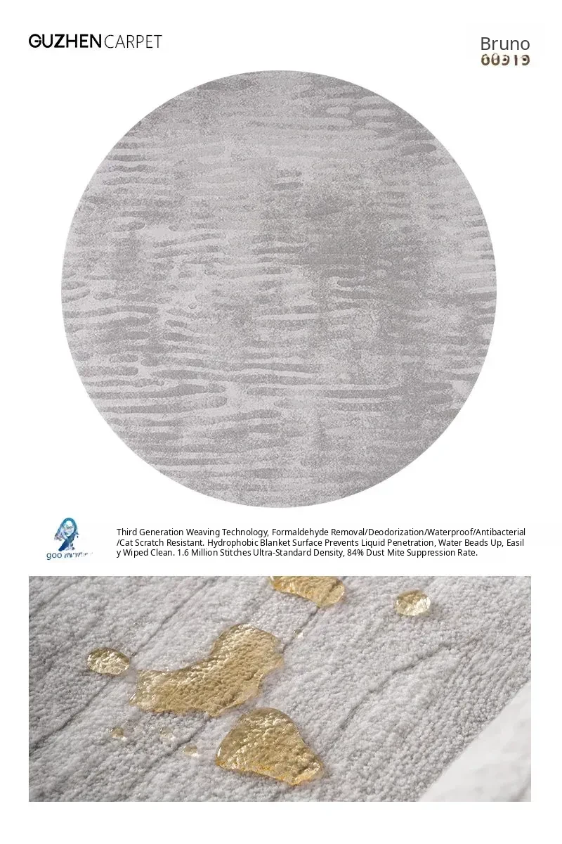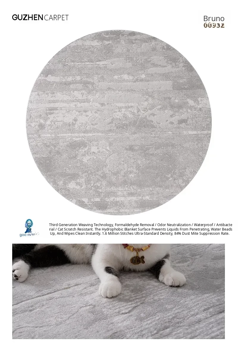 GuZhen 2026 New Round Carpet - Cat Scratch Resistant, Waterproof, Stain-Resistant, Luxury Minimalist Design for Villa Living Room, Formaldehyde Removal, and Antibacterial Features