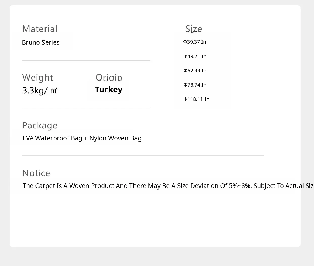 Circular Diameter 49.21in