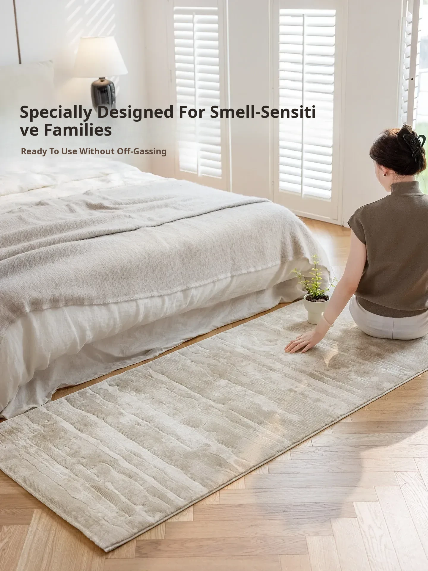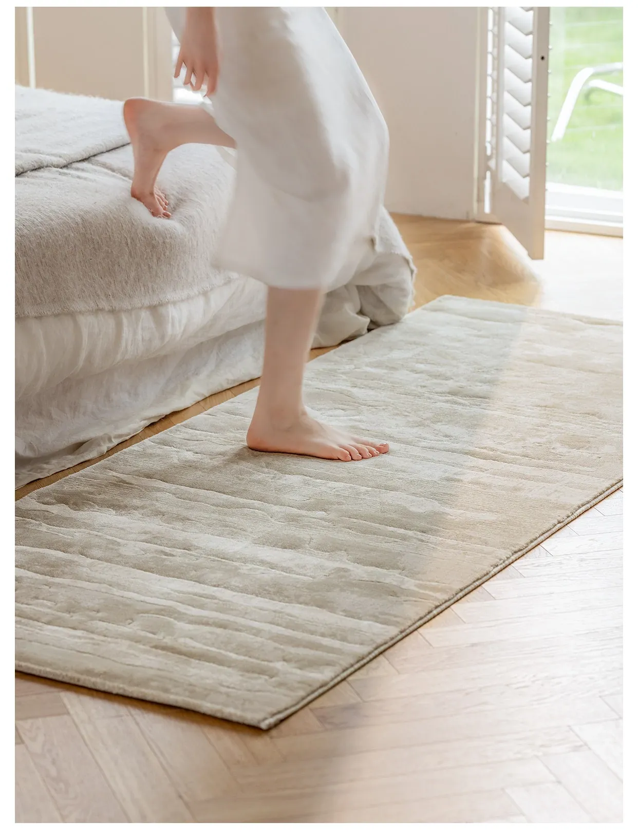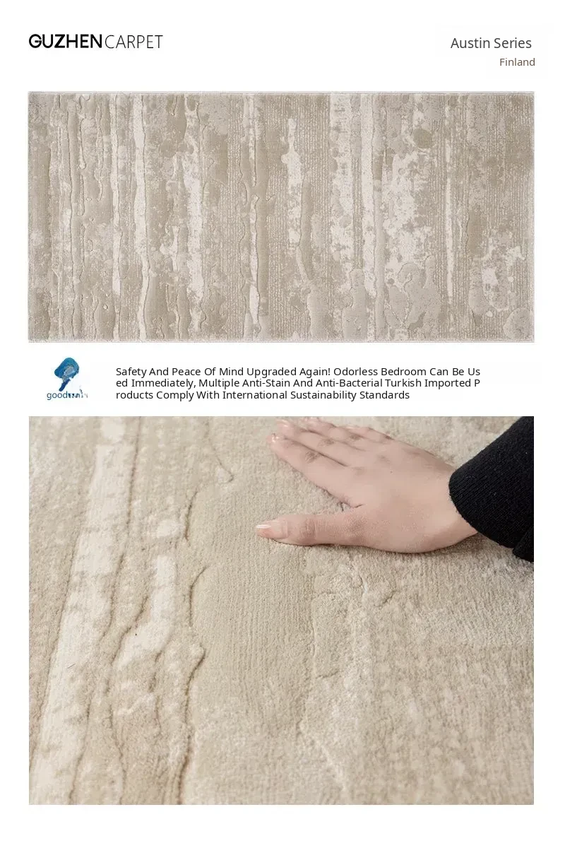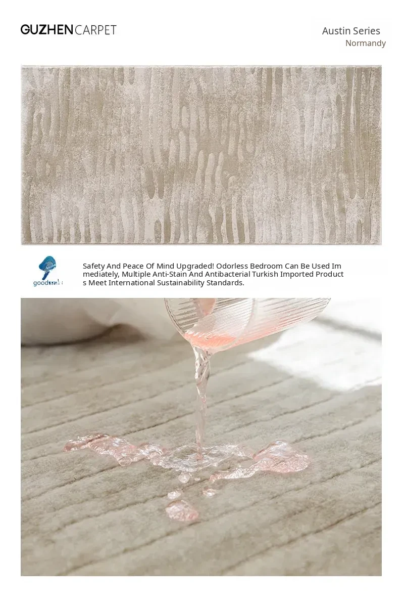 Guzhen Imported Waterproof Bedside Carpet - Modern Minimalist, Easy-Clean, Stain-Resistant, Warm-Toned Rug for Master and Kids' Bedrooms, Perfect for Bedside or Foot of the Bed.