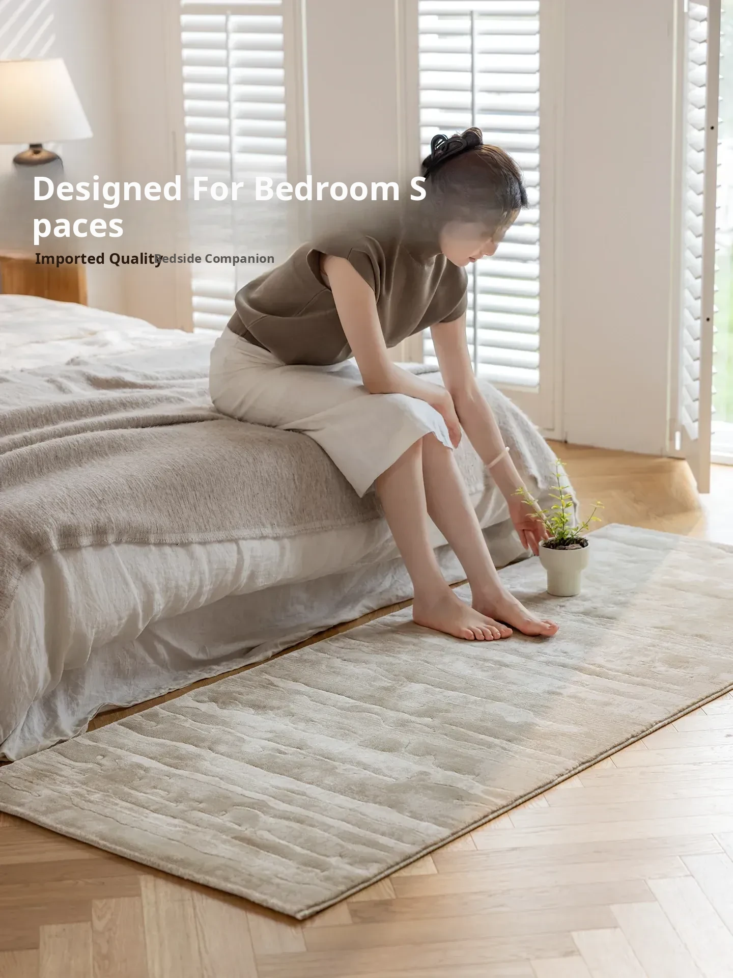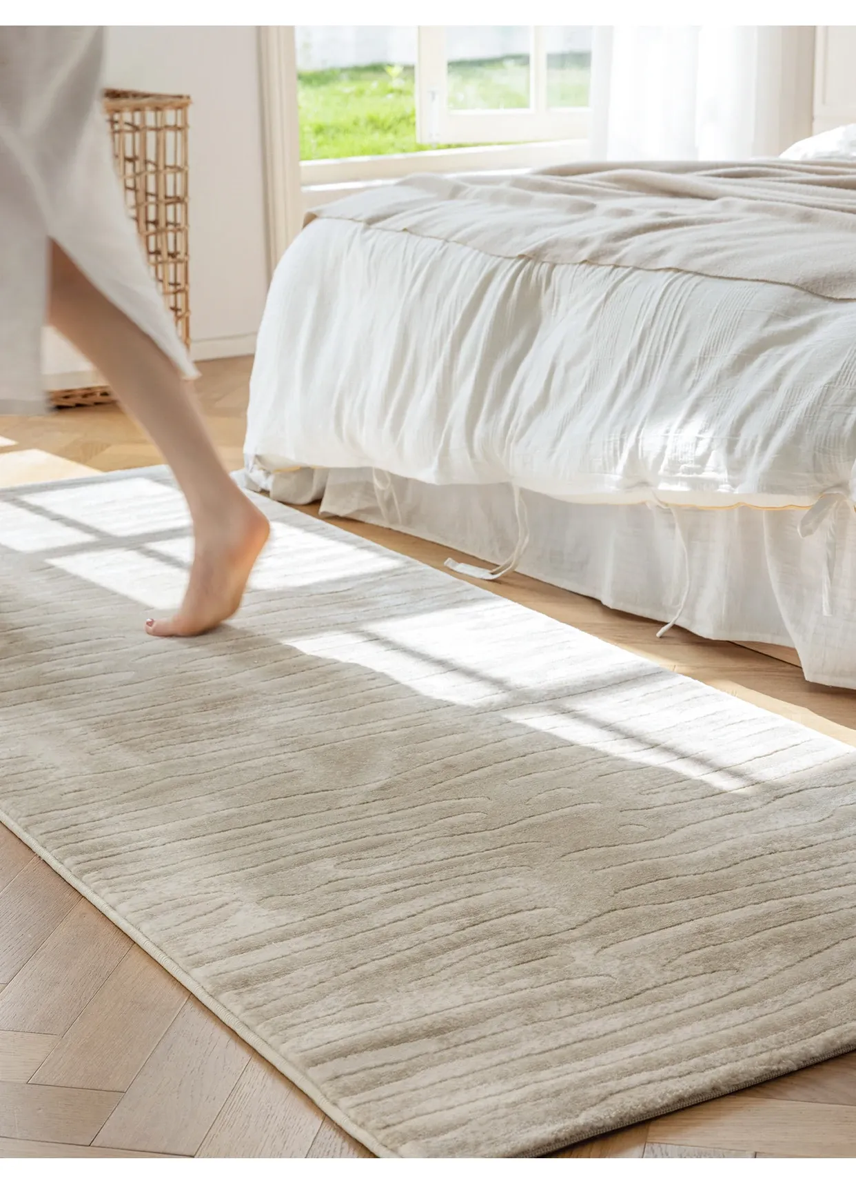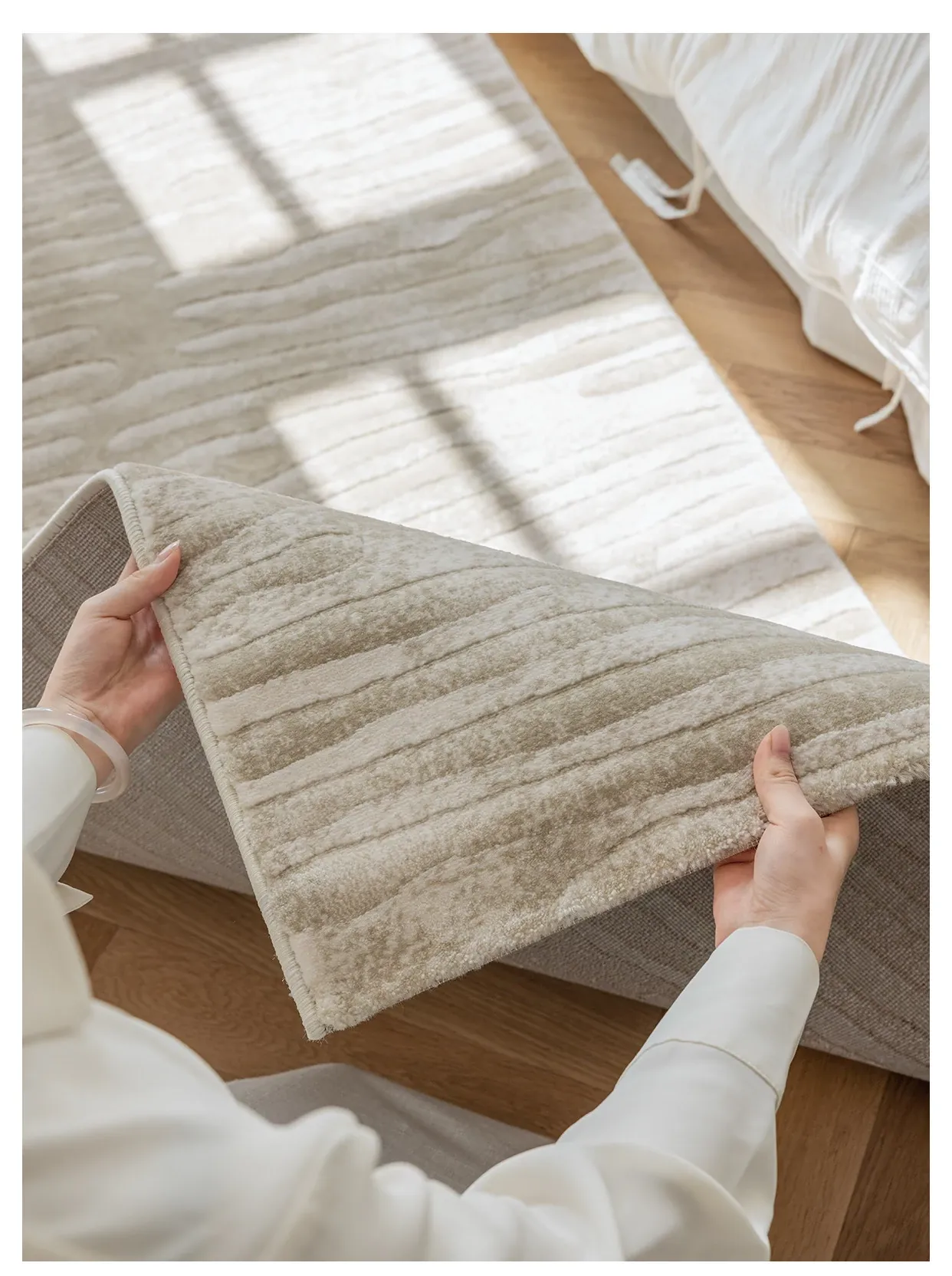 Guzhen Imported Waterproof Bedside Carpet - Modern Minimalist, Easy-Clean, Stain-Resistant, Warm-Toned Rug for Master and Kids' Bedrooms, Perfect for Bedside or Foot of the Bed.