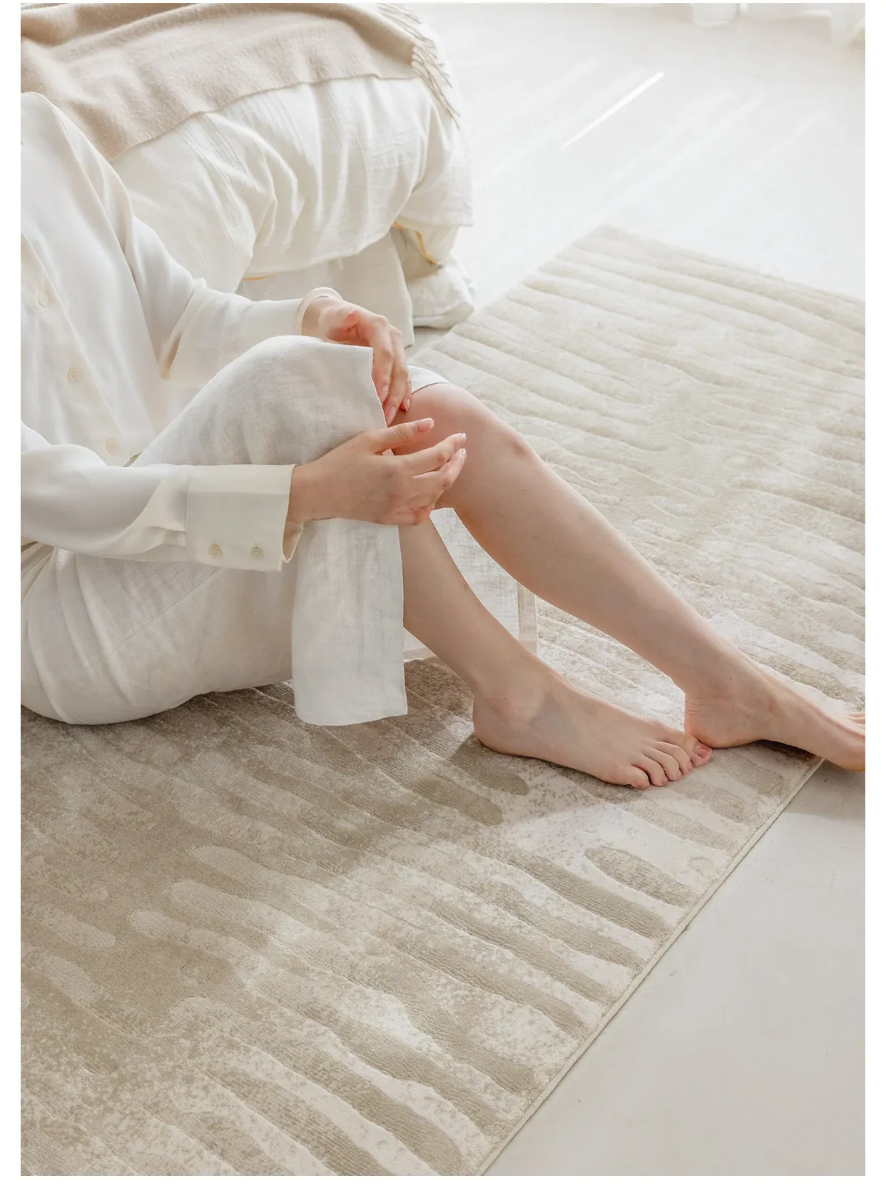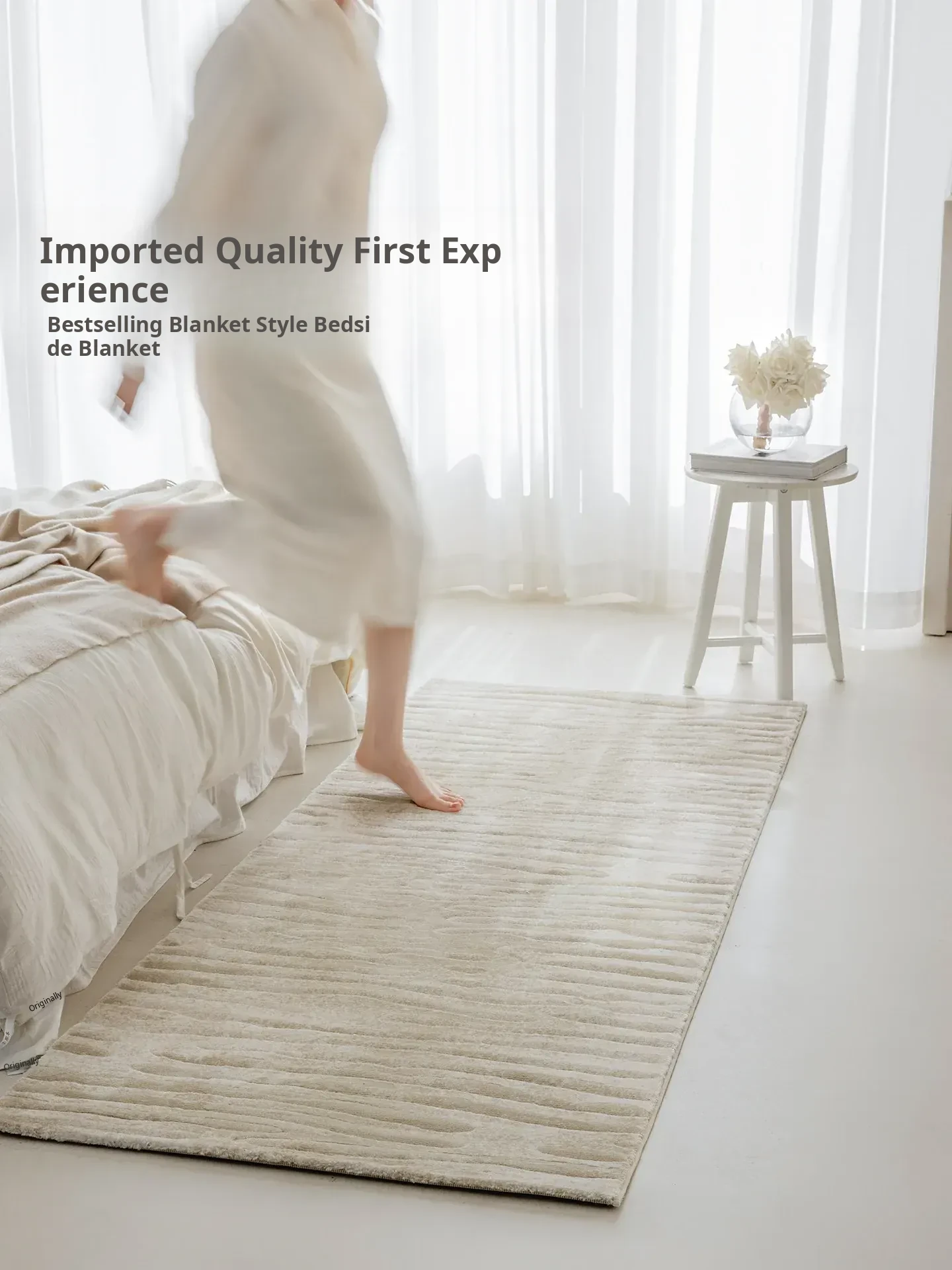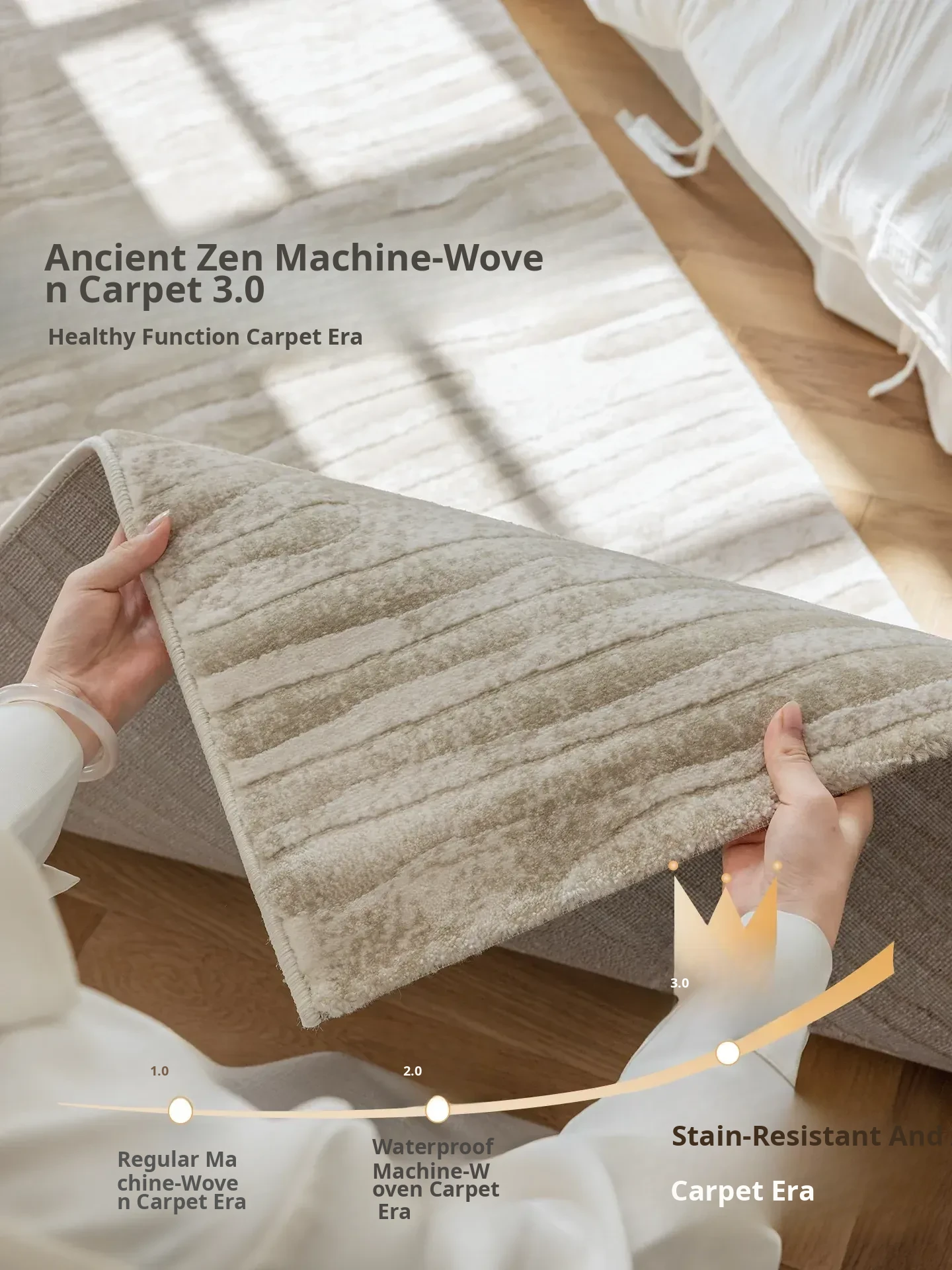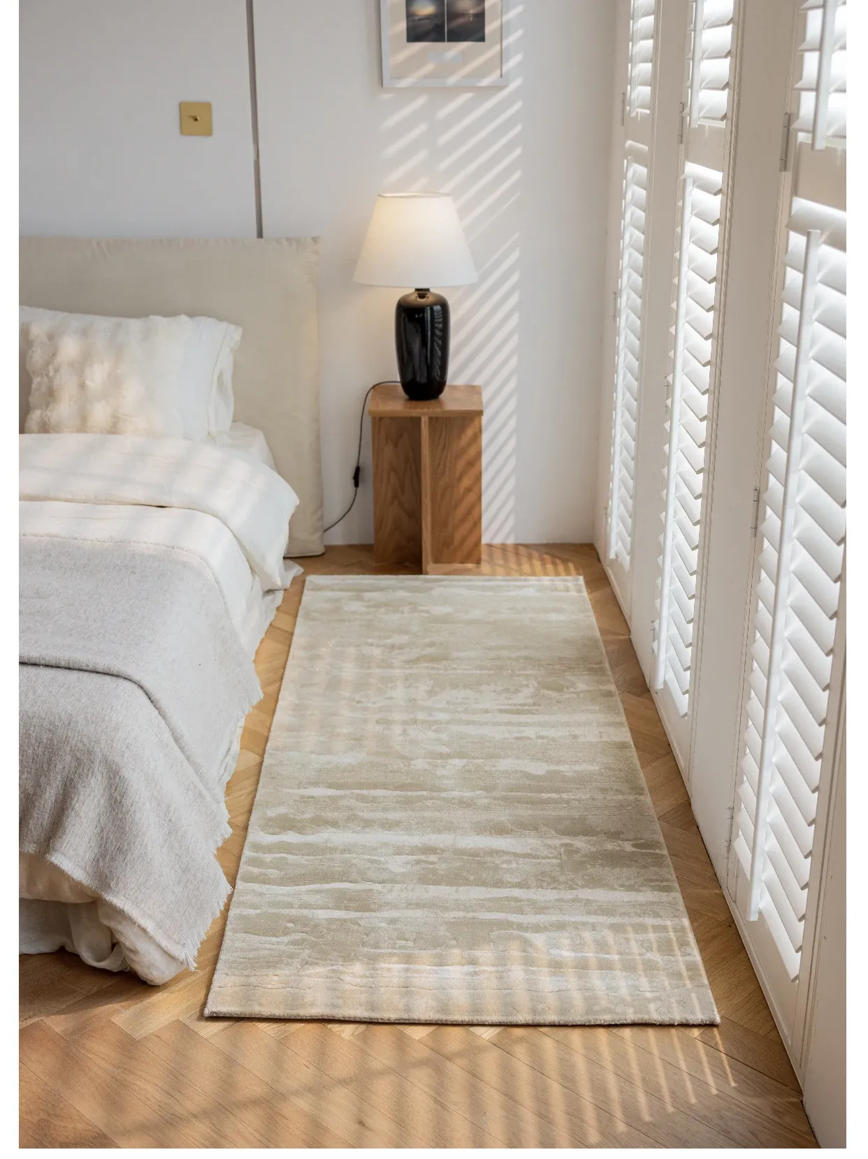 Guzhen Imported Waterproof Bedside Carpet - Modern Minimalist, Easy-Clean, Stain-Resistant, Warm-Toned Rug for Master and Kids' Bedrooms, Perfect for Bedside or Foot of the Bed.