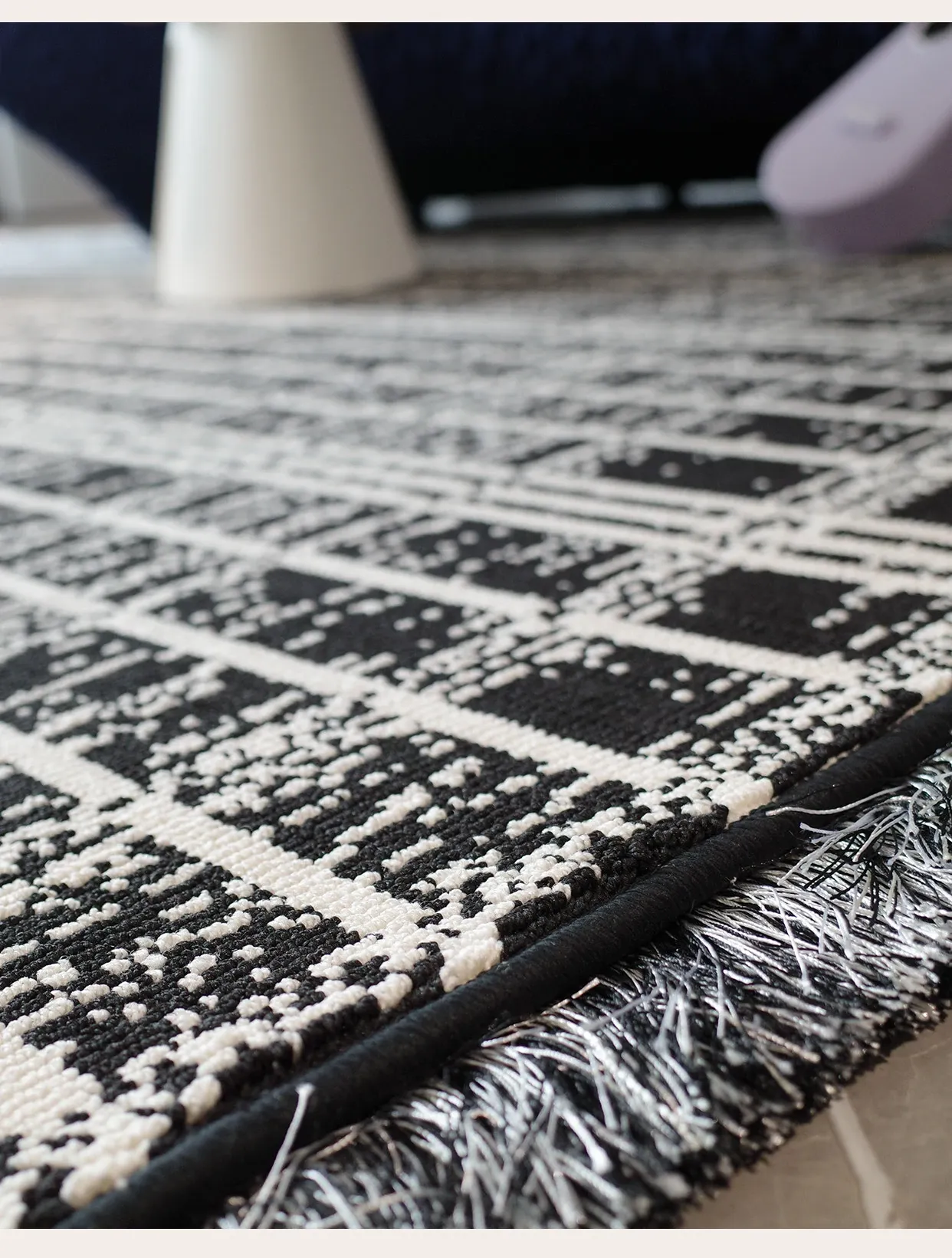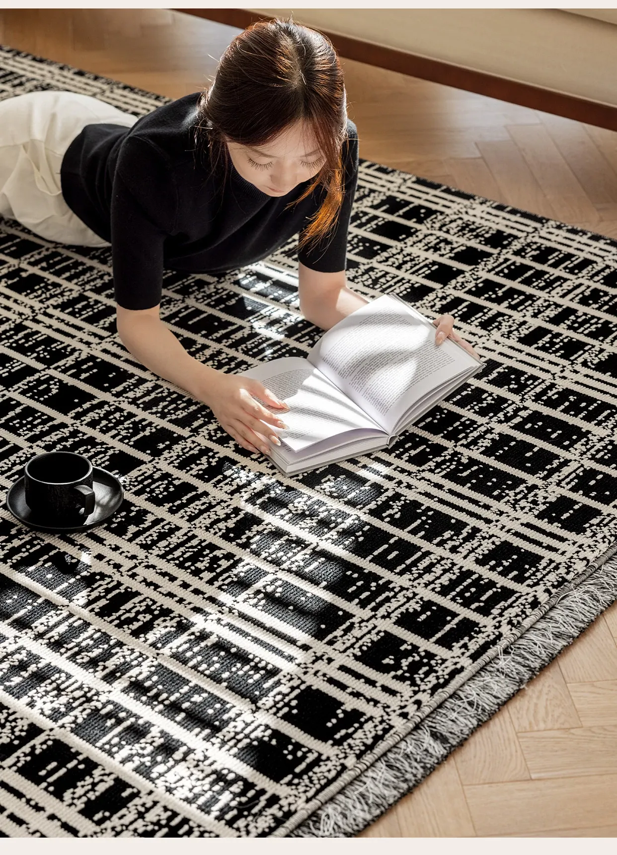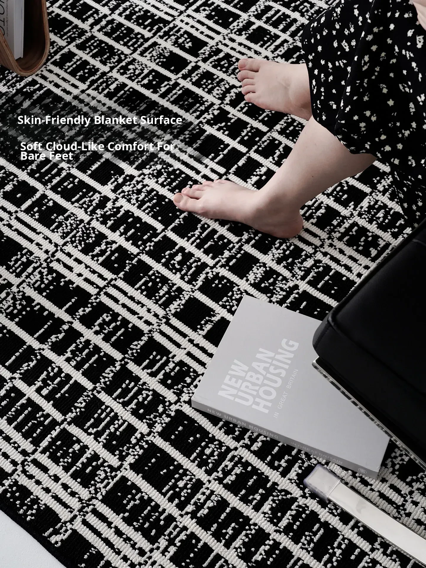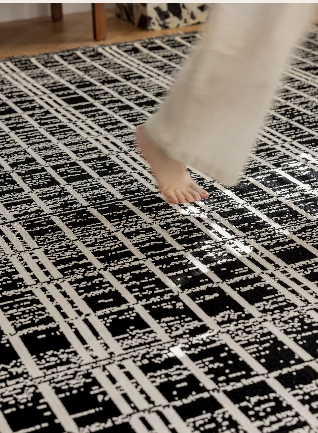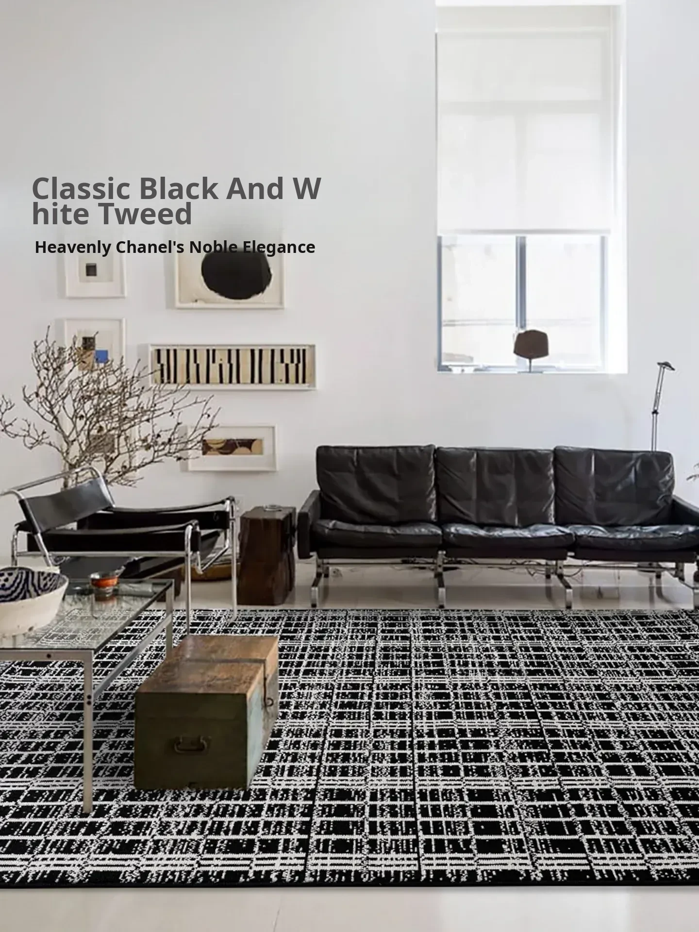 Luxurious French-Style Black and White Area Rug – Perfect for Living Room and Bedroom, Chic and Easy to Clean, Ideal for Under Coffee Table and Bedside. Elevate Your Space with Sophisticated Elegance!