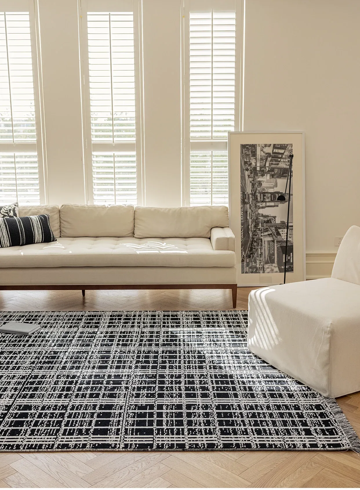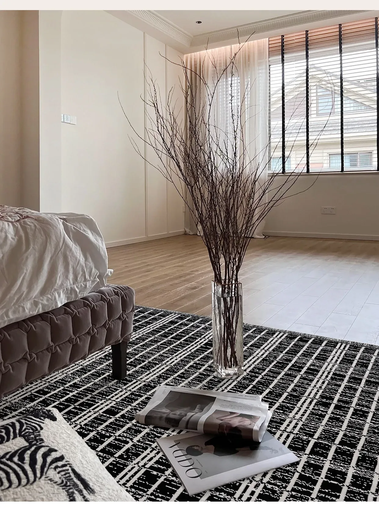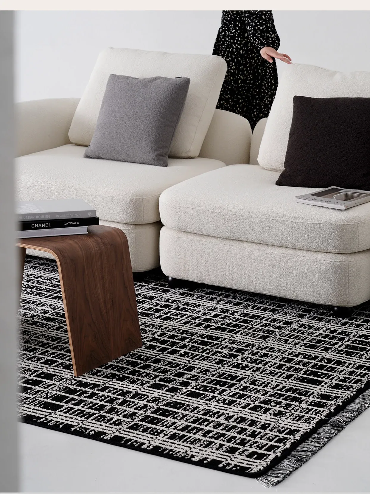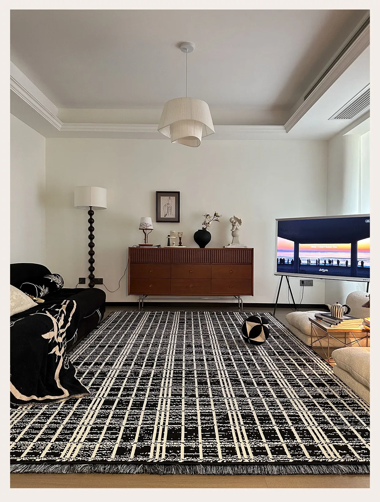Luxurious French-Style Black and White Area Rug – Perfect for Living Room and Bedroom, Chic and Easy to Clean, Ideal for Under Coffee Table and Bedside. Elevate Your Space with Sophisticated Elegance!