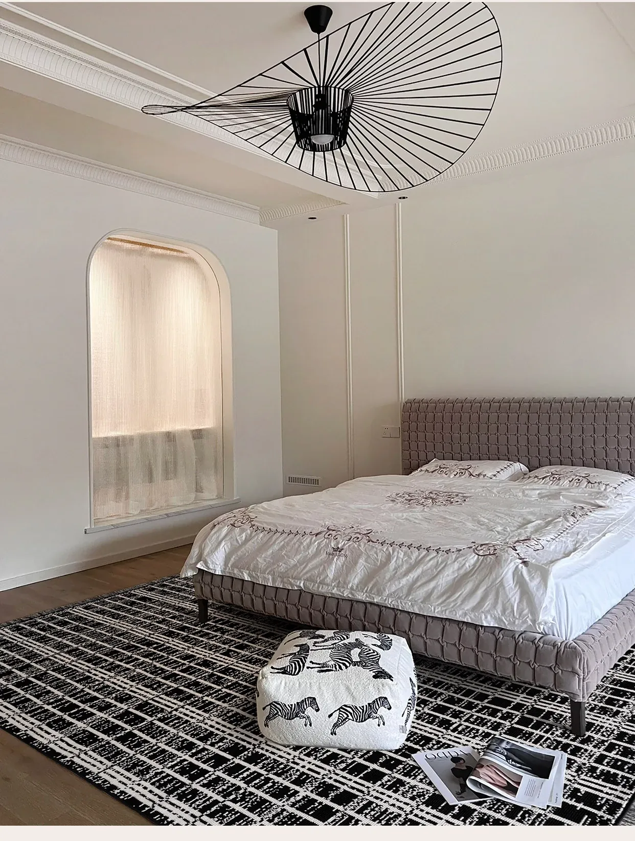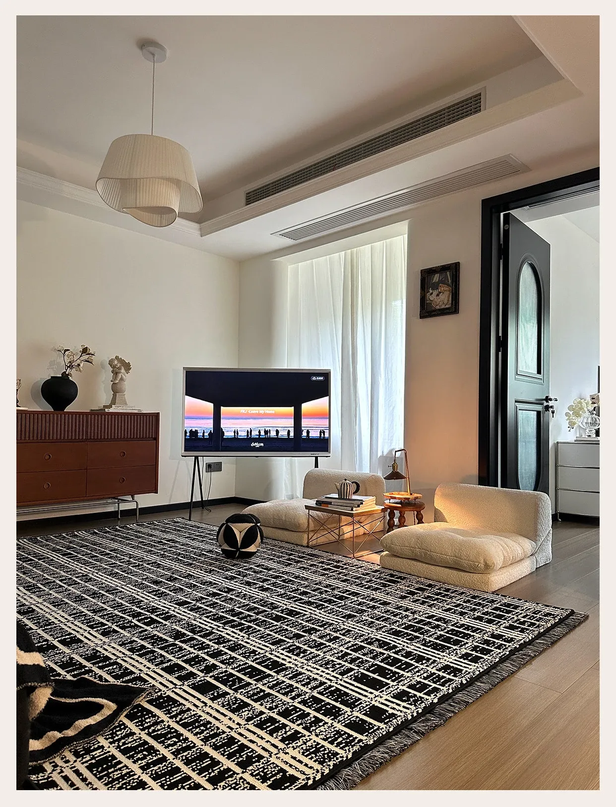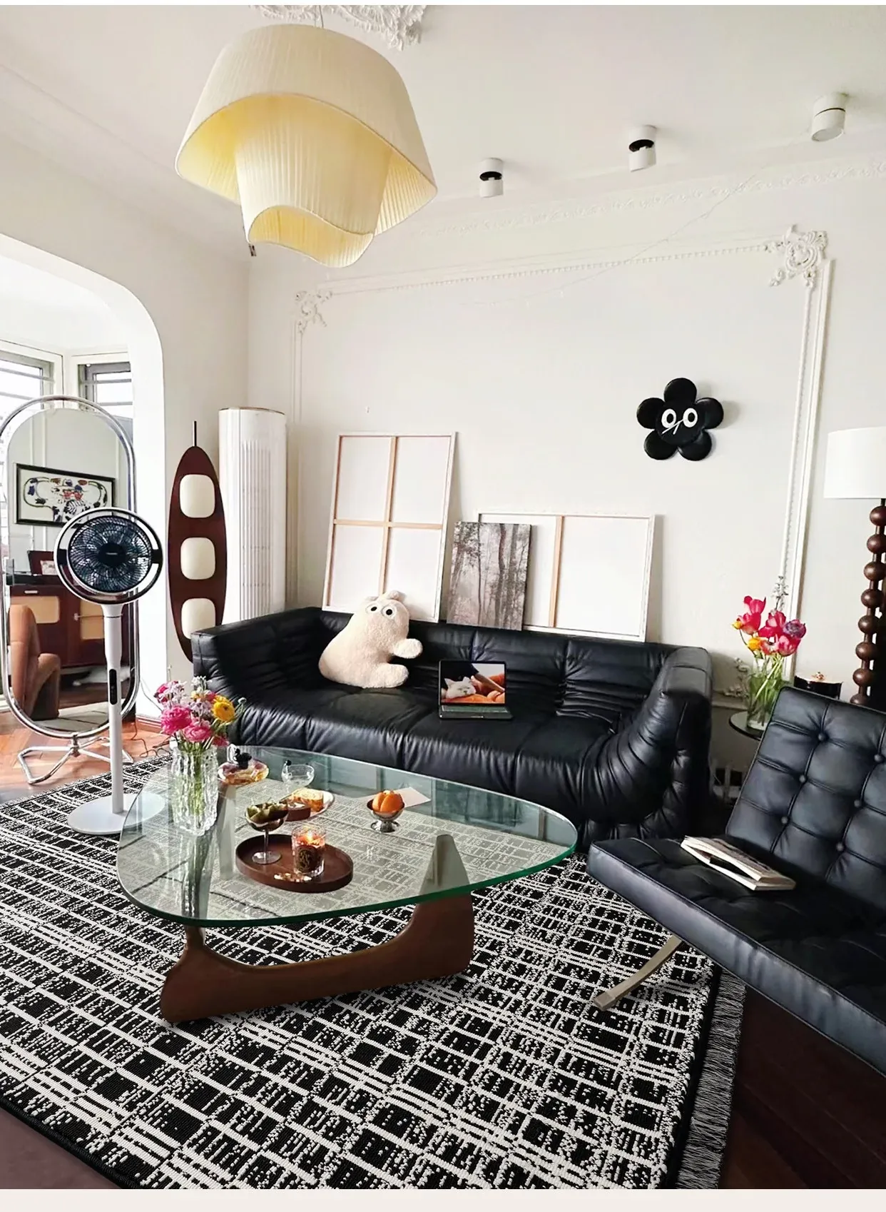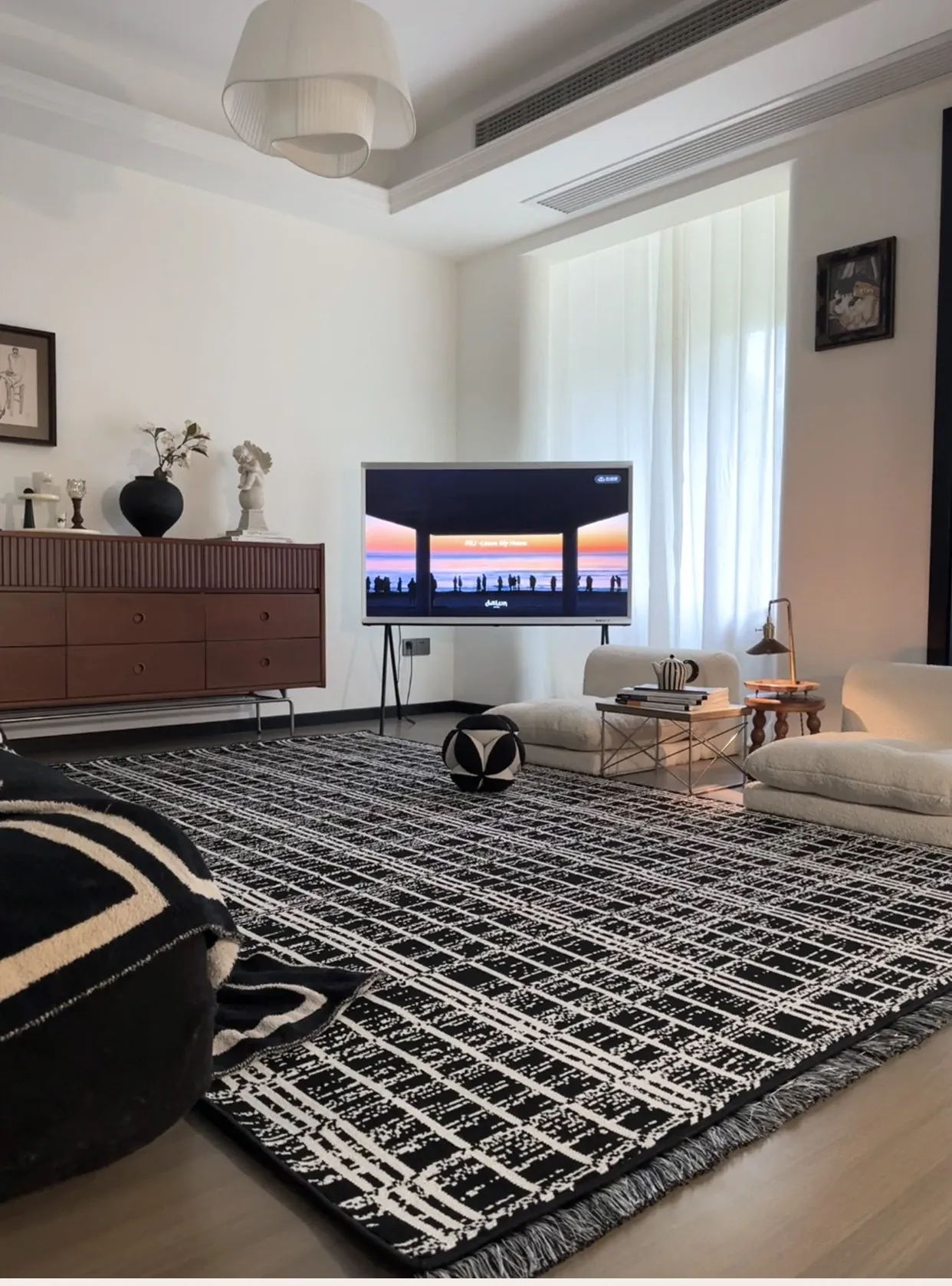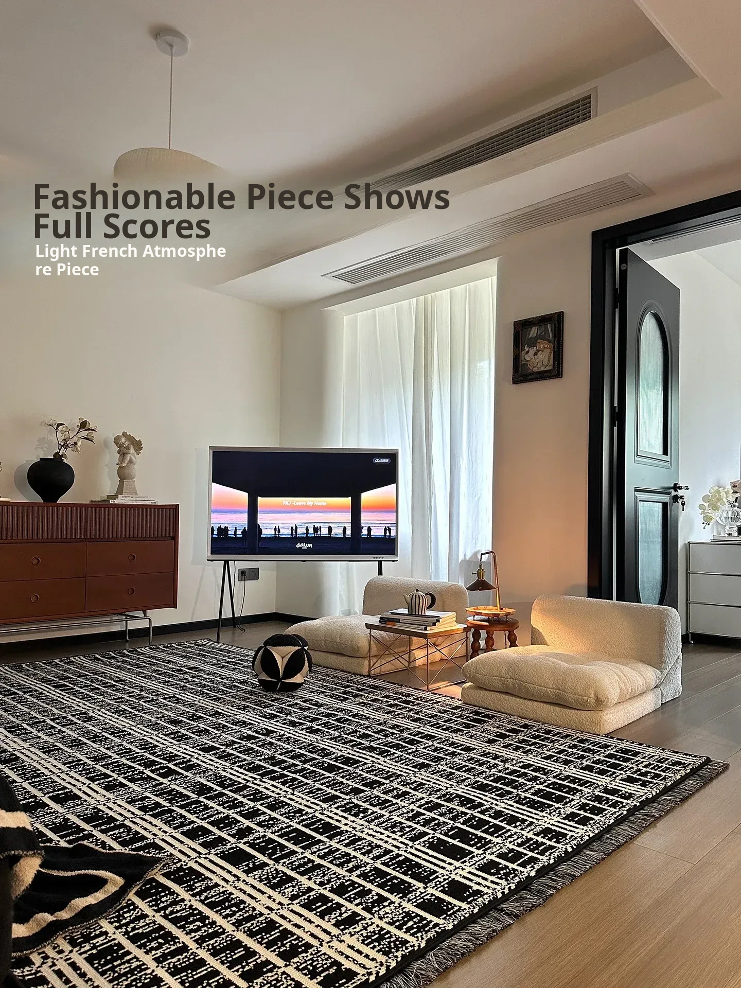 Luxurious French-Style Black and White Area Rug – Perfect for Living Room and Bedroom, Chic and Easy to Clean, Ideal for Under Coffee Table and Bedside. Elevate Your Space with Sophisticated Elegance!