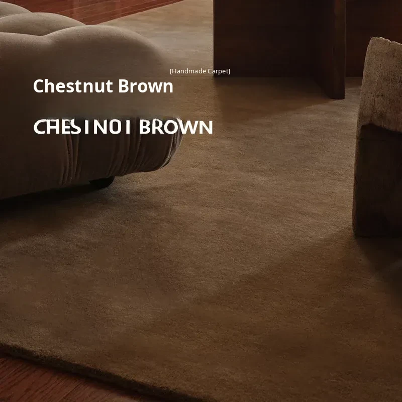 Handmade 2026 New Brown Rug for Living Room and Bedroom - Minimalist Solid Color French-Style Luxury for Cozy Homes