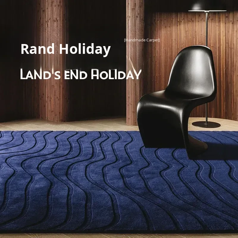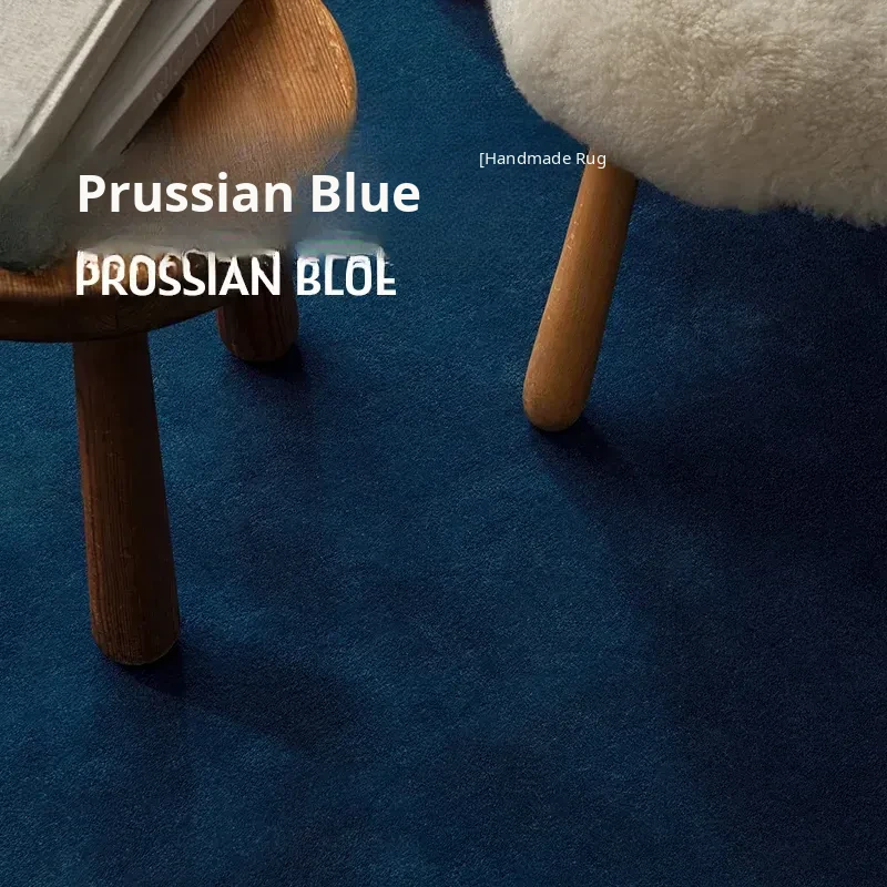 PaaDee Retro Solid Blue Carpet - Luxurious Minimalist Design for Living Rooms and Bedrooms, Perfect Blend of American and European Styles for Chic Decor.