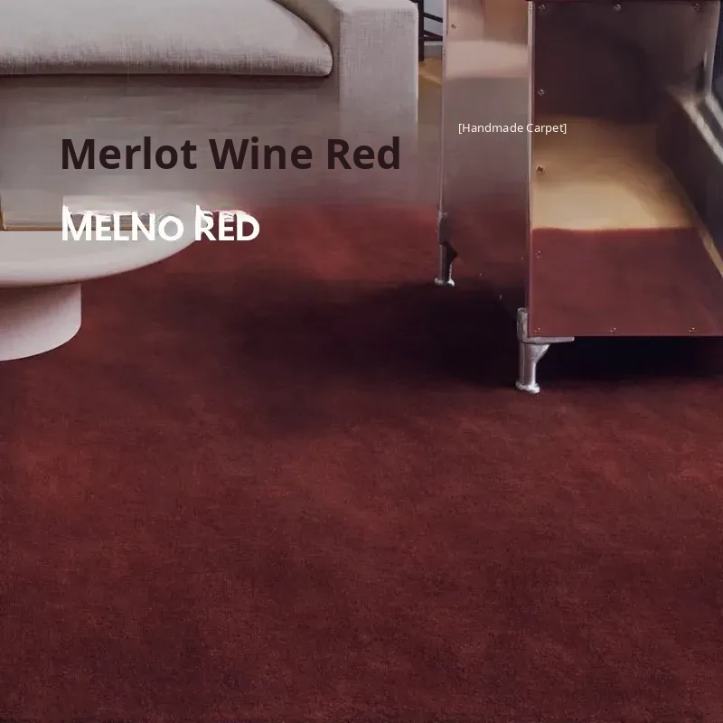 Vintage Red Carpet for Living Room - Handcrafted Minimalist French Style, Full Coverage for Bedroom and Guesthouse, Luxurious Texture with Simple Elegance