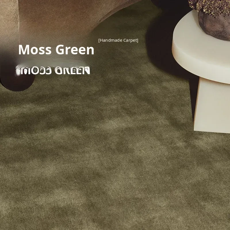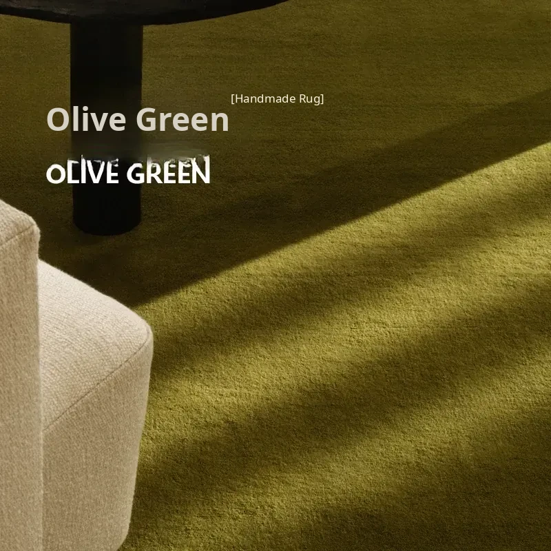 Vintage Green Carpet for Living Room - Minimalist Solid Color French Wool Texture, Perfect for Cozy Bedrooms and Stylish Guesthouses, Luxurious Yet Affordable