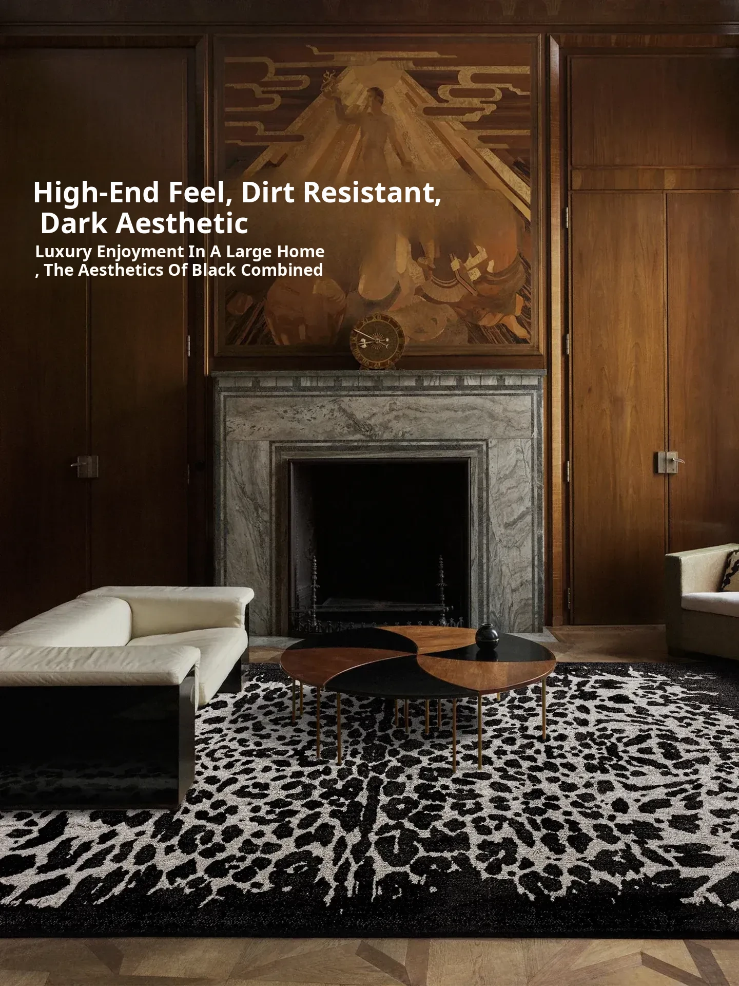 GuZhen Black Beast Pattern Milk Silk Carpet - Luxurious American Style Area Rug for Living Room and Bedroom, Faux Animal Skin Design, Perfect for Chic Home Décor