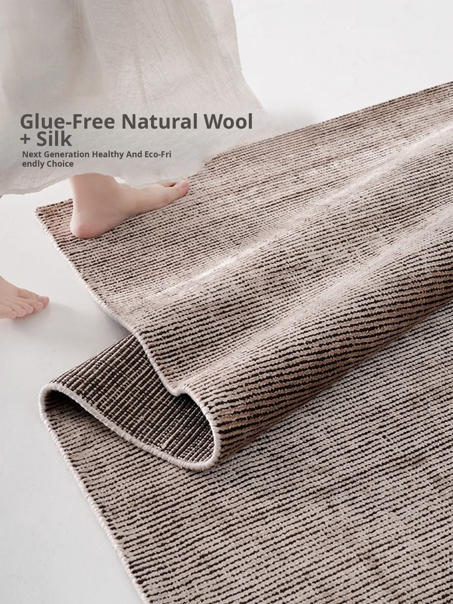 Rowan LW/Gu Zhen Imported Wool and Silk Blend Handmade Glue-Free Carpet for Living Room and Bedroom - High-End Villa Luxe Solid Color Rug