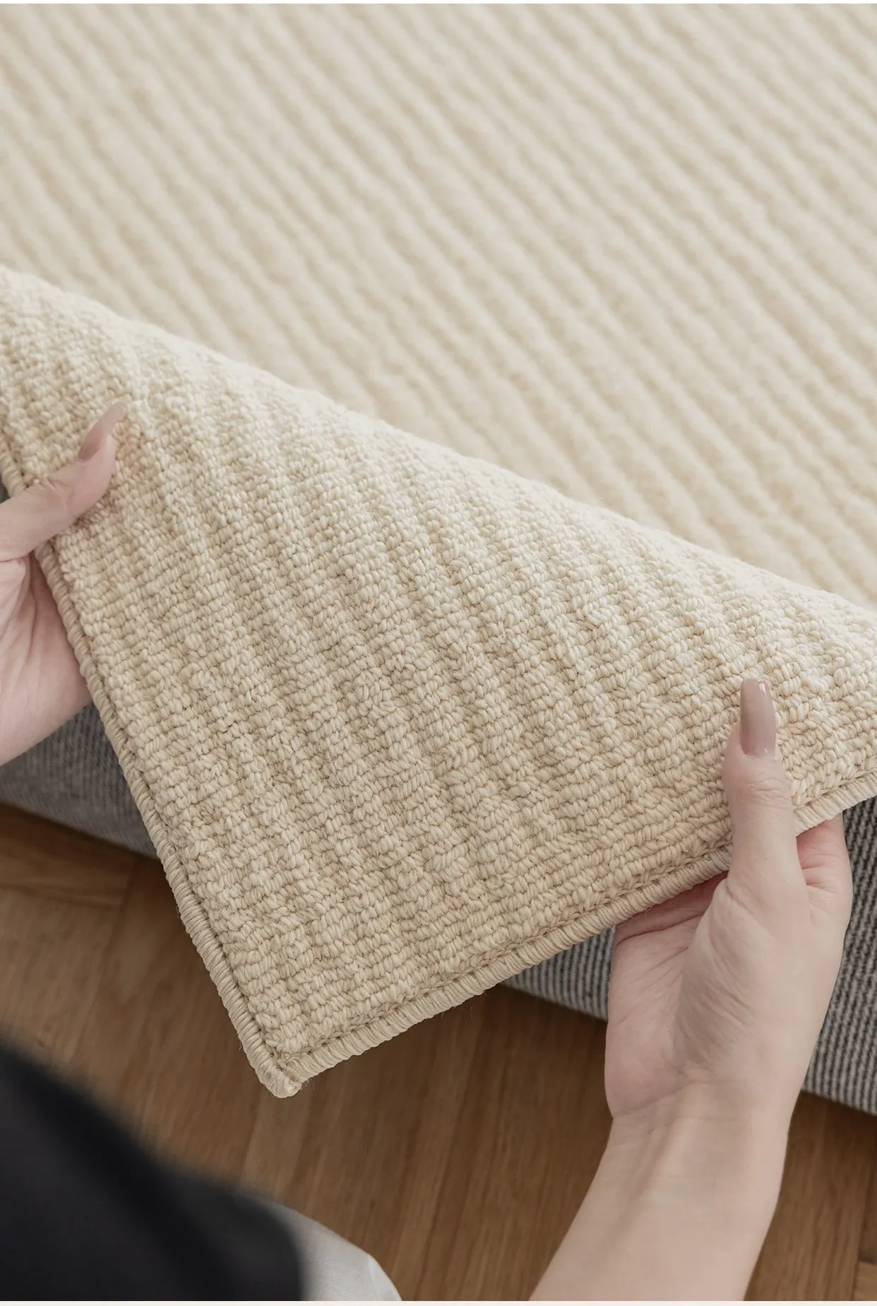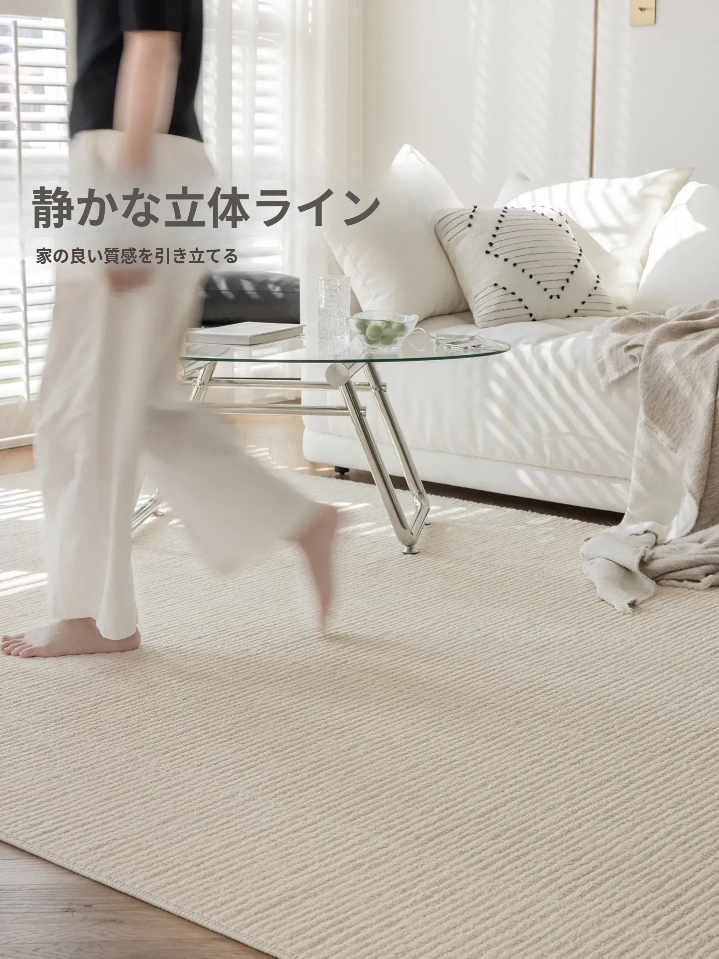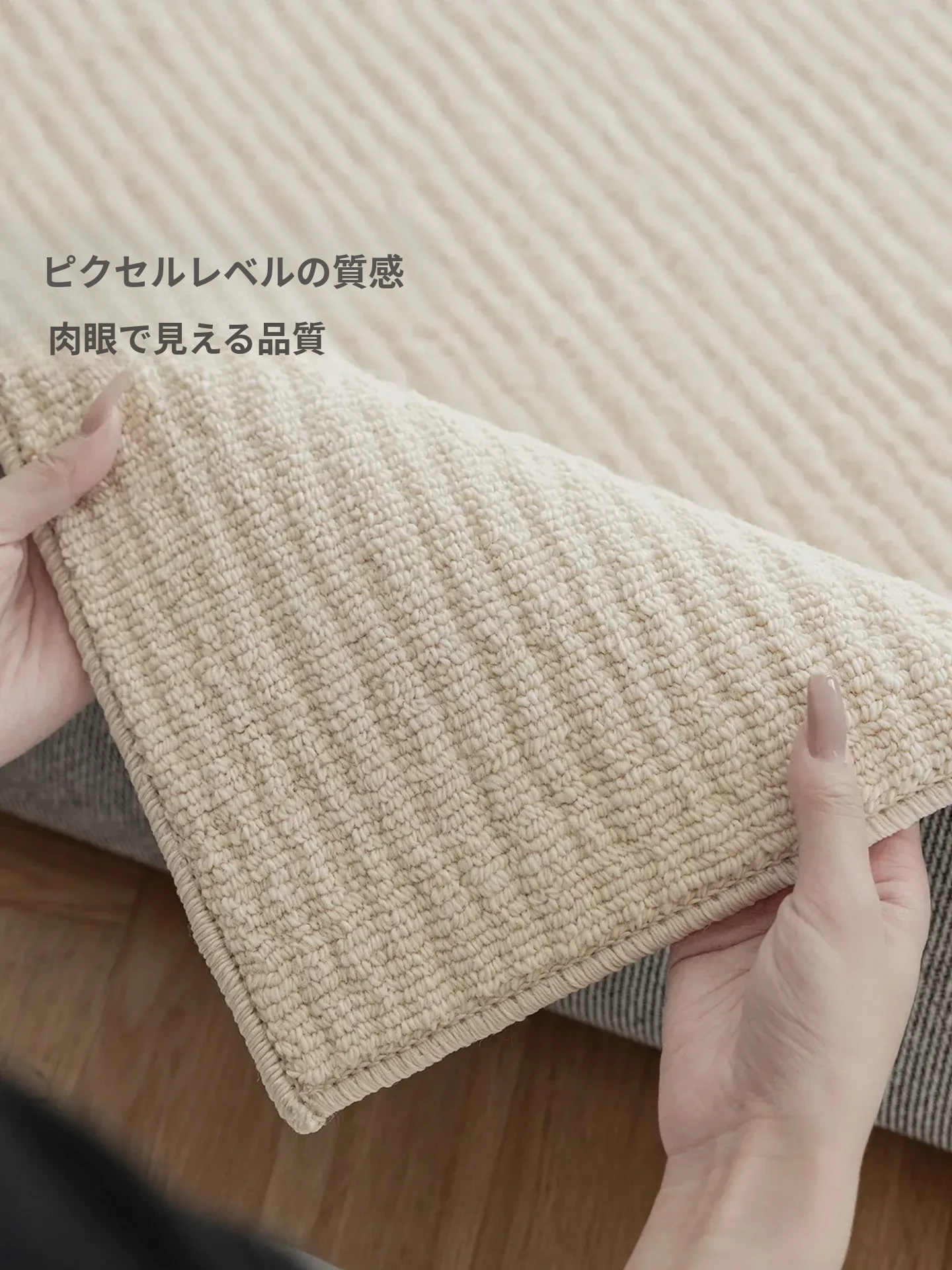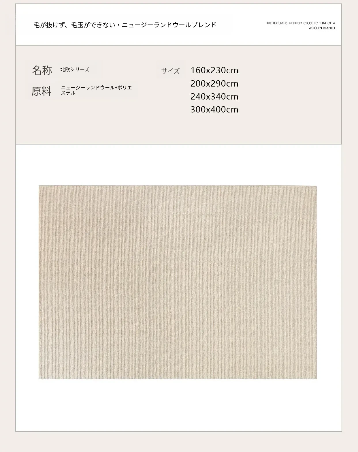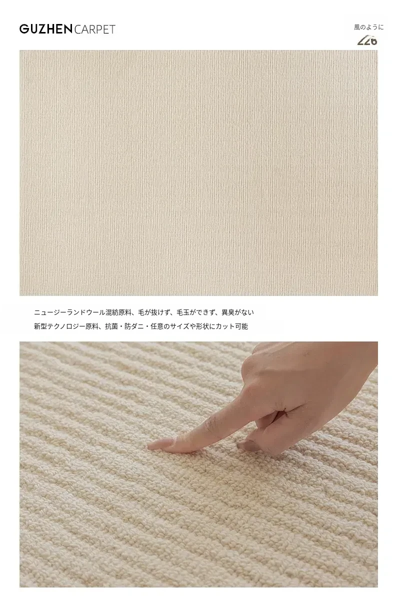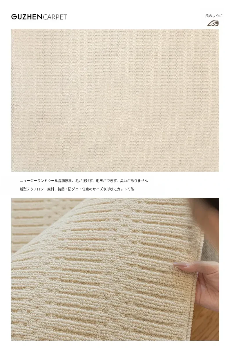 古臻原木風羊毛ラグマット - 高級感あふれる和モダンな侘び寂びデザイン、シンプルな無地でリビングやベッドサイドにぴったり!心地よい触感と洗練された雰囲気をお楽しみください。