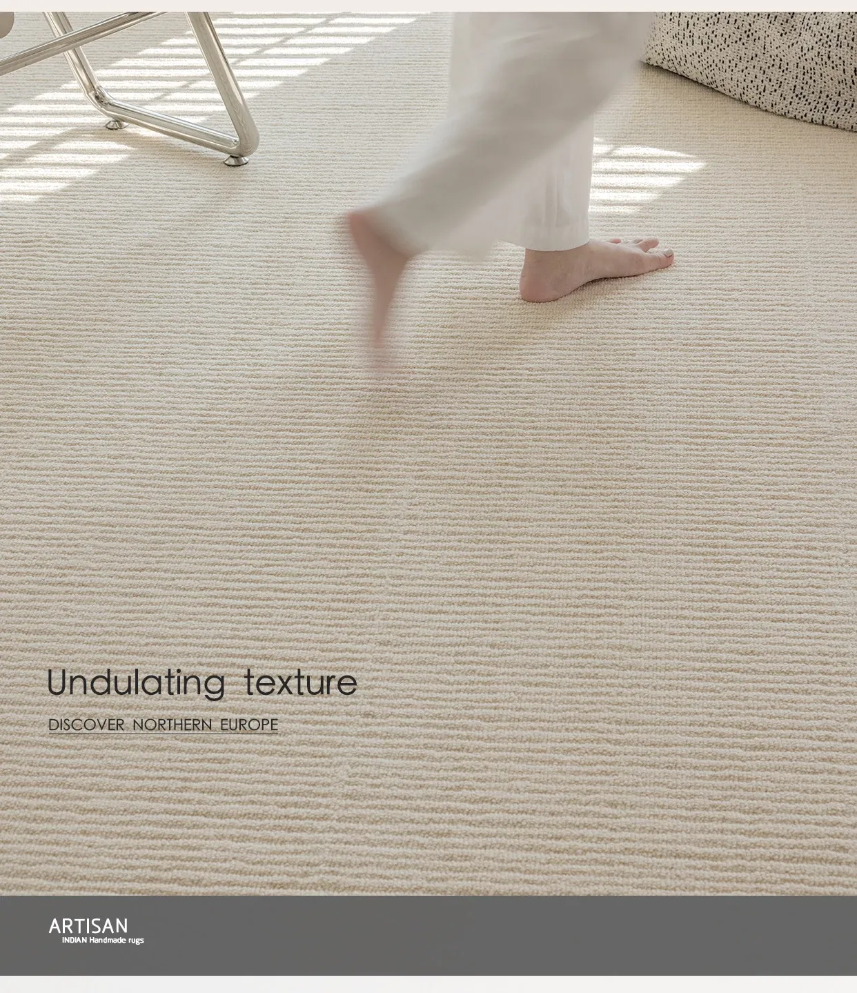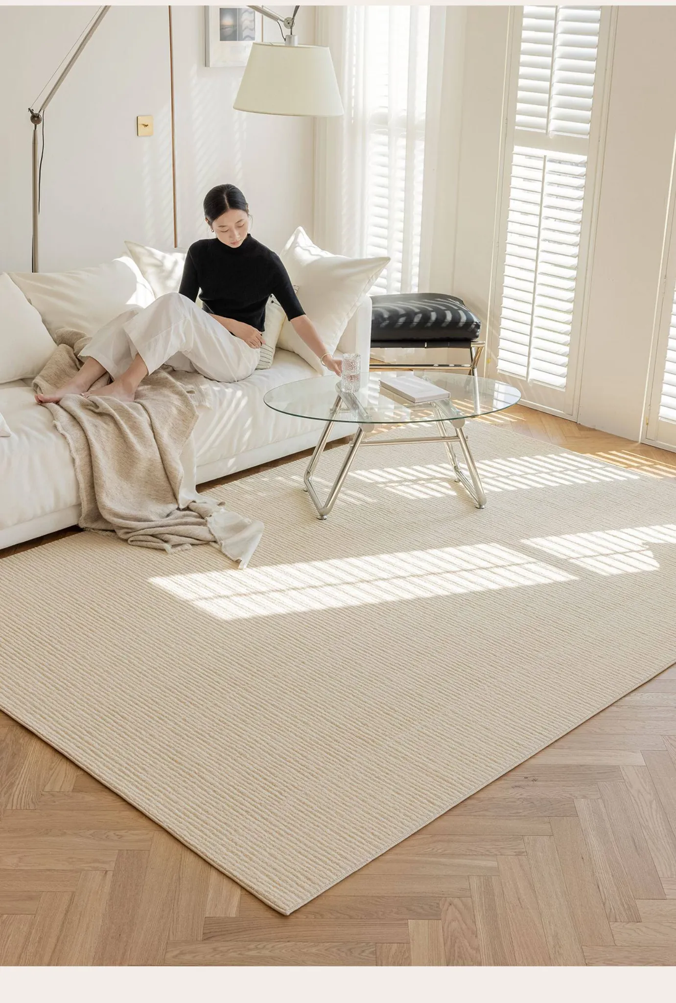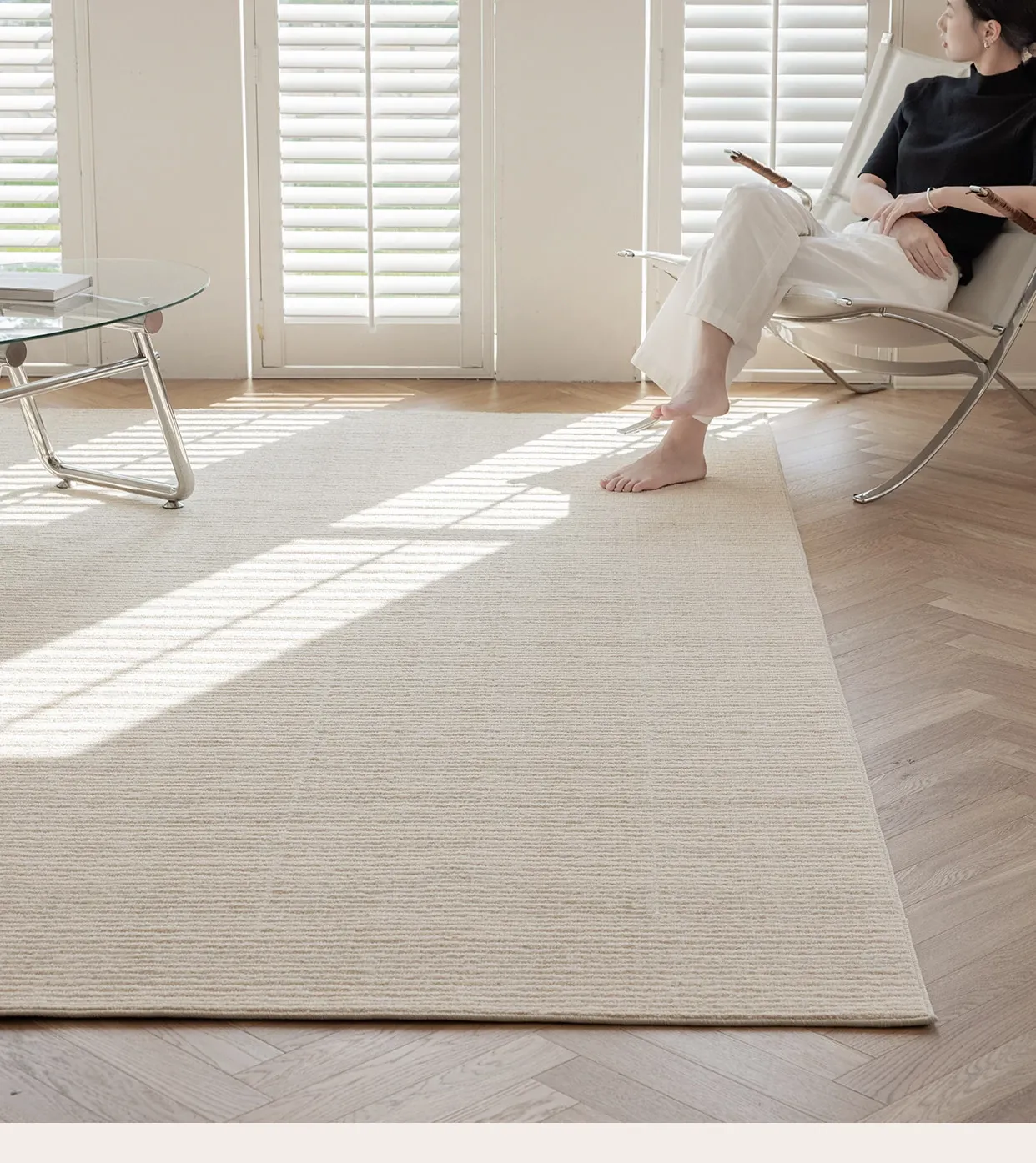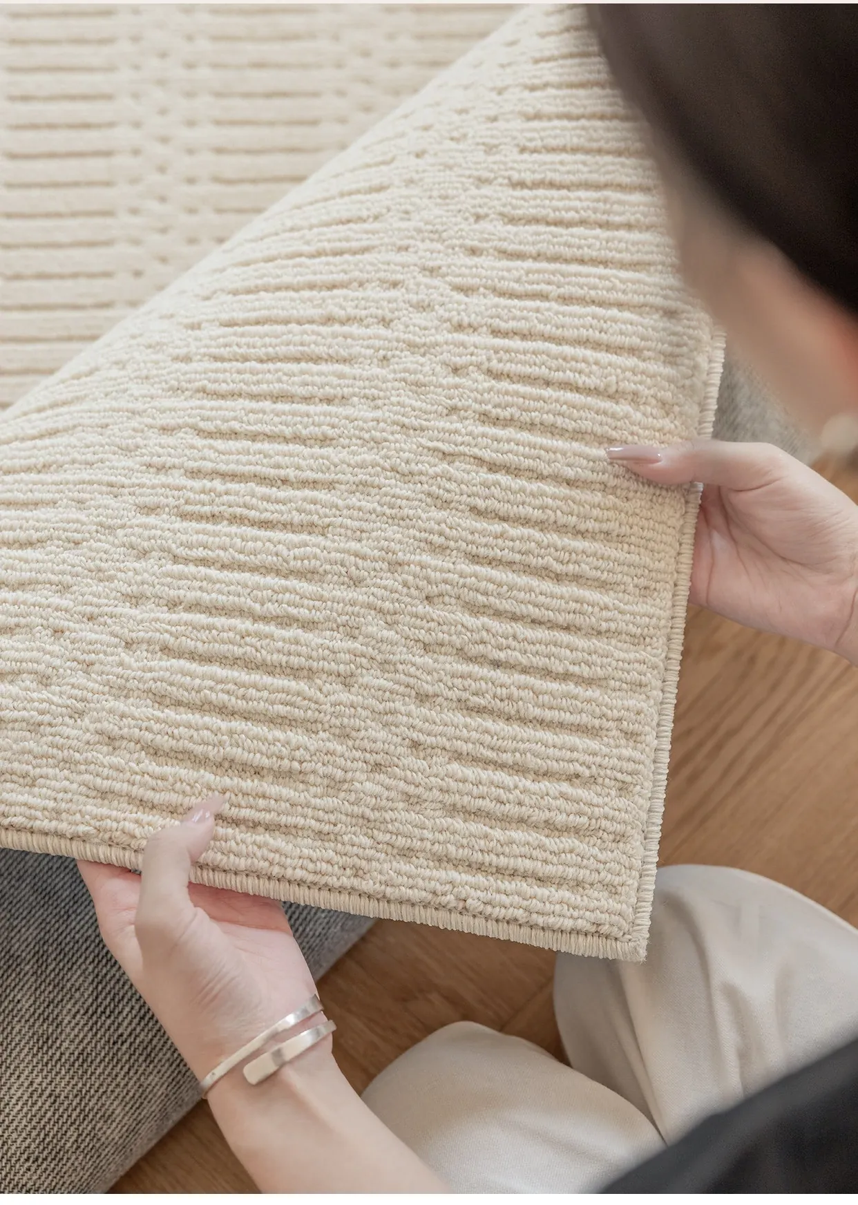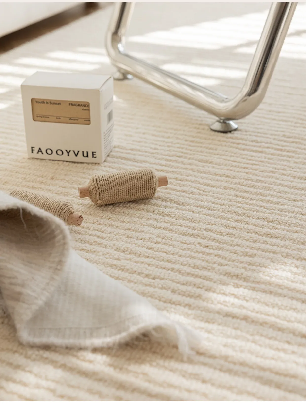 古臻原木風羊毛ラグマット - 高級感あふれる和モダンな侘び寂びデザイン、シンプルな無地でリビングやベッドサイドにぴったり!心地よい触感と洗練された雰囲気をお楽しみください。
