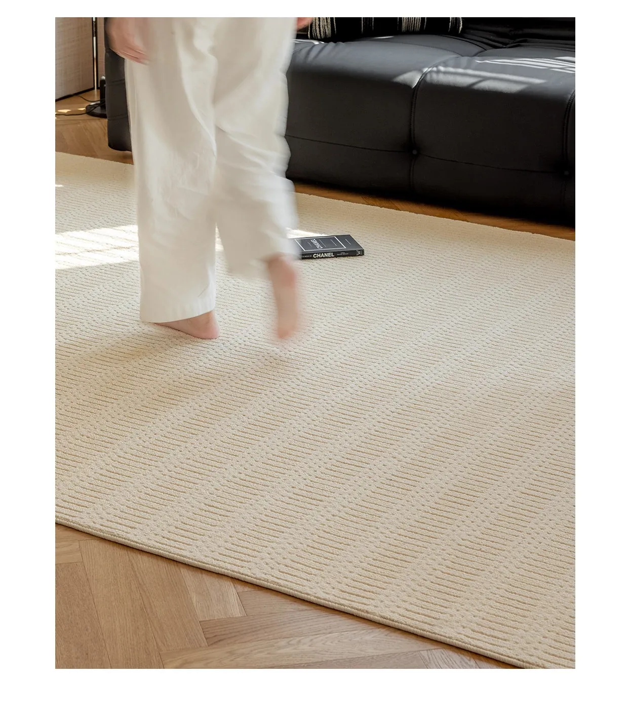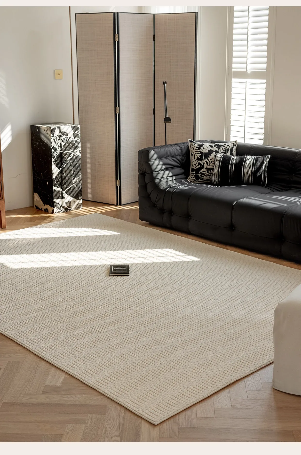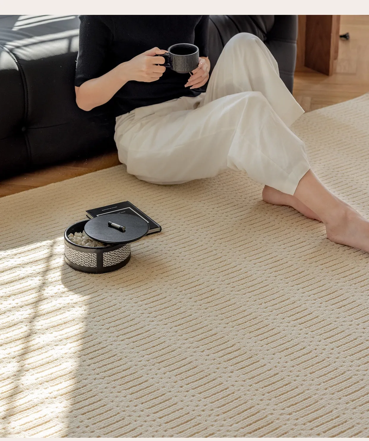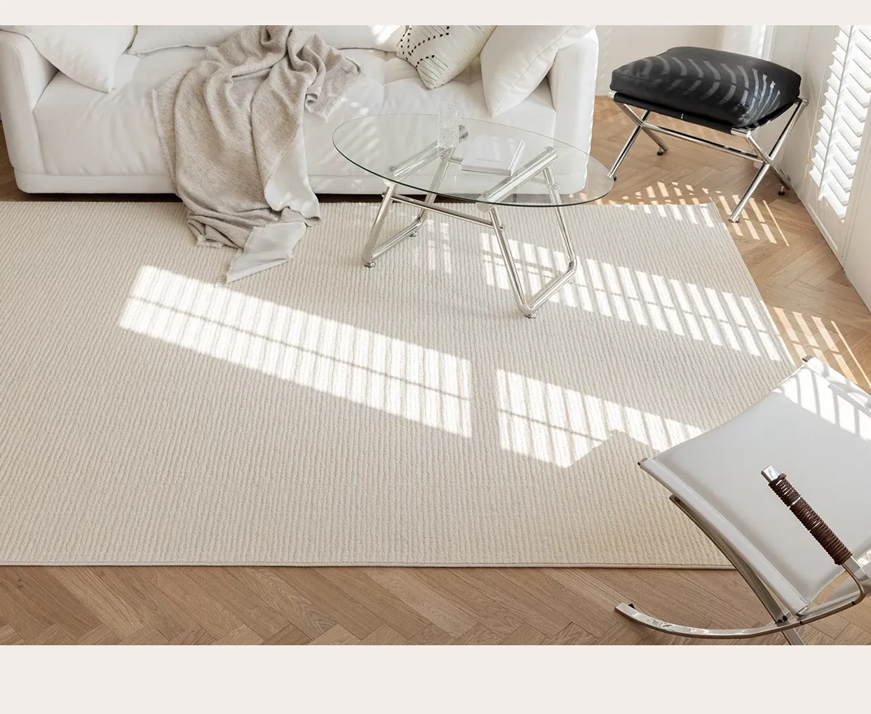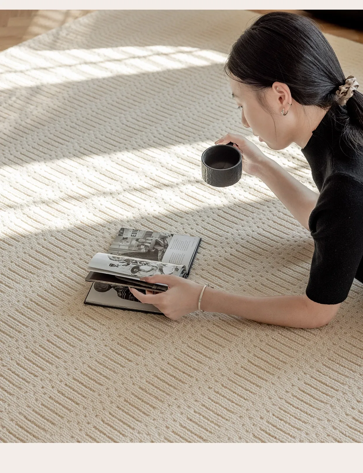 古臻原木風羊毛ラグマット - 高級感あふれる和モダンな侘び寂びデザイン、シンプルな無地でリビングやベッドサイドにぴったり!心地よい触感と洗練された雰囲気をお楽しみください。