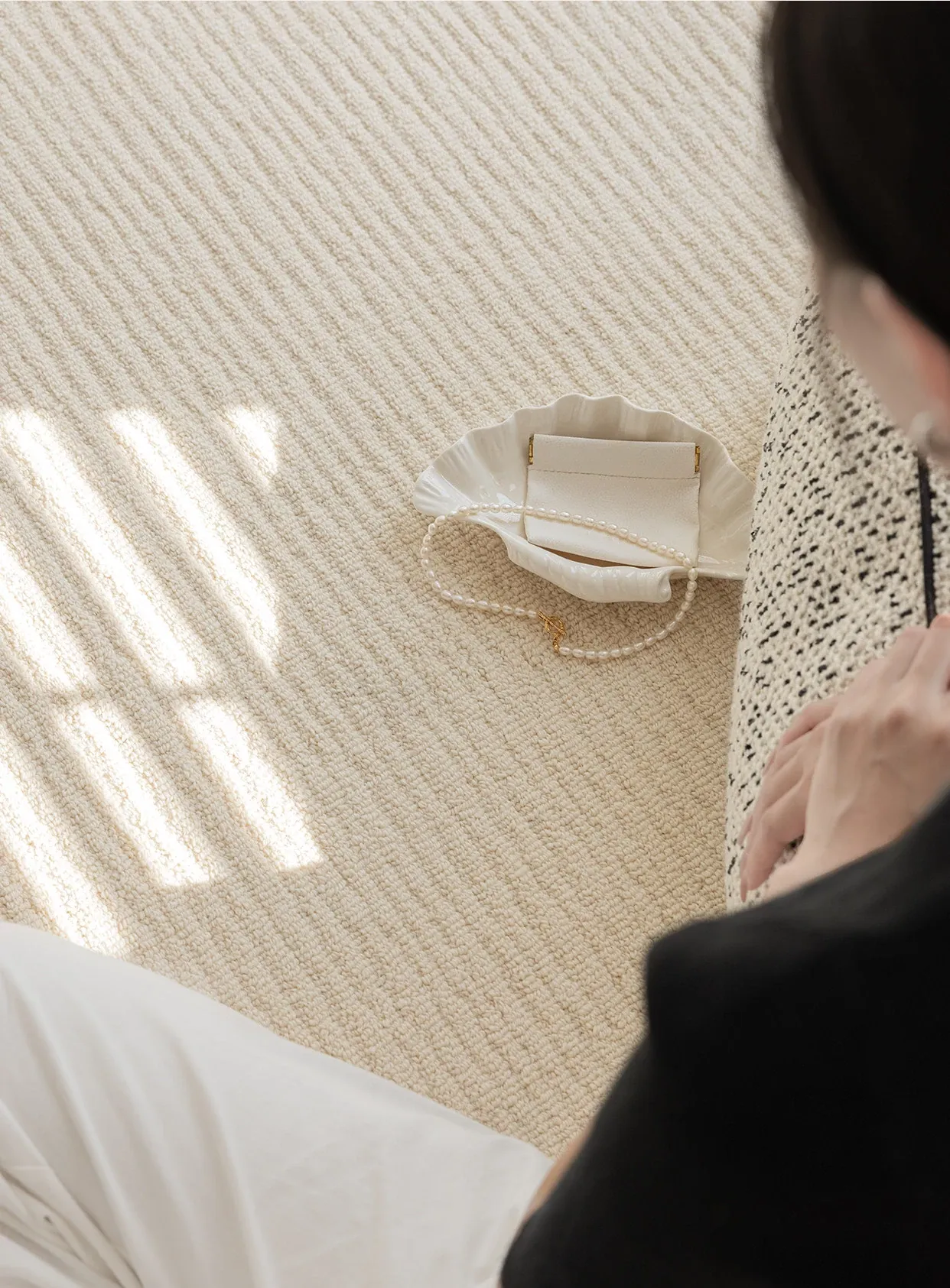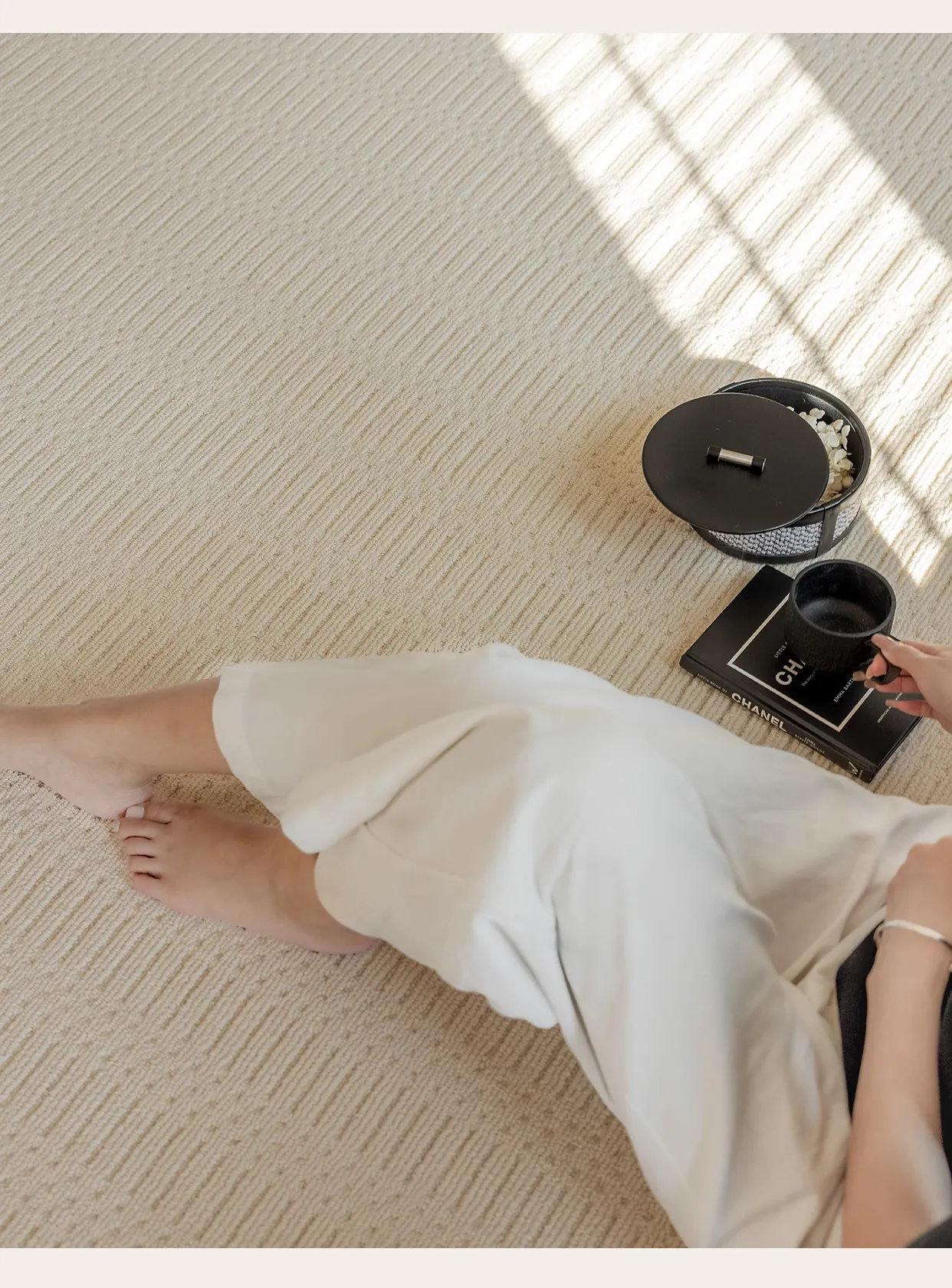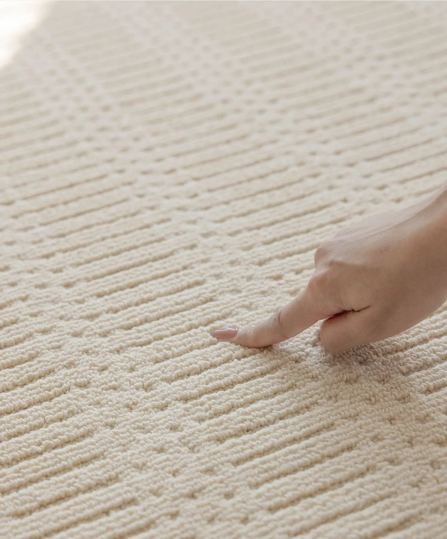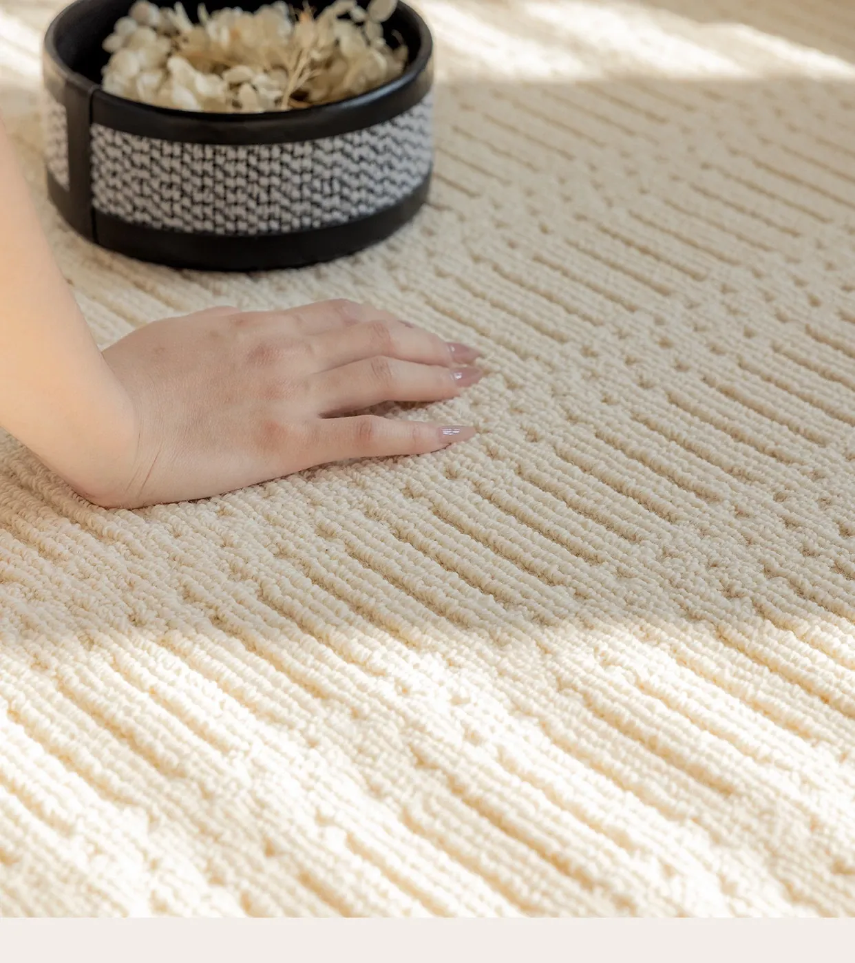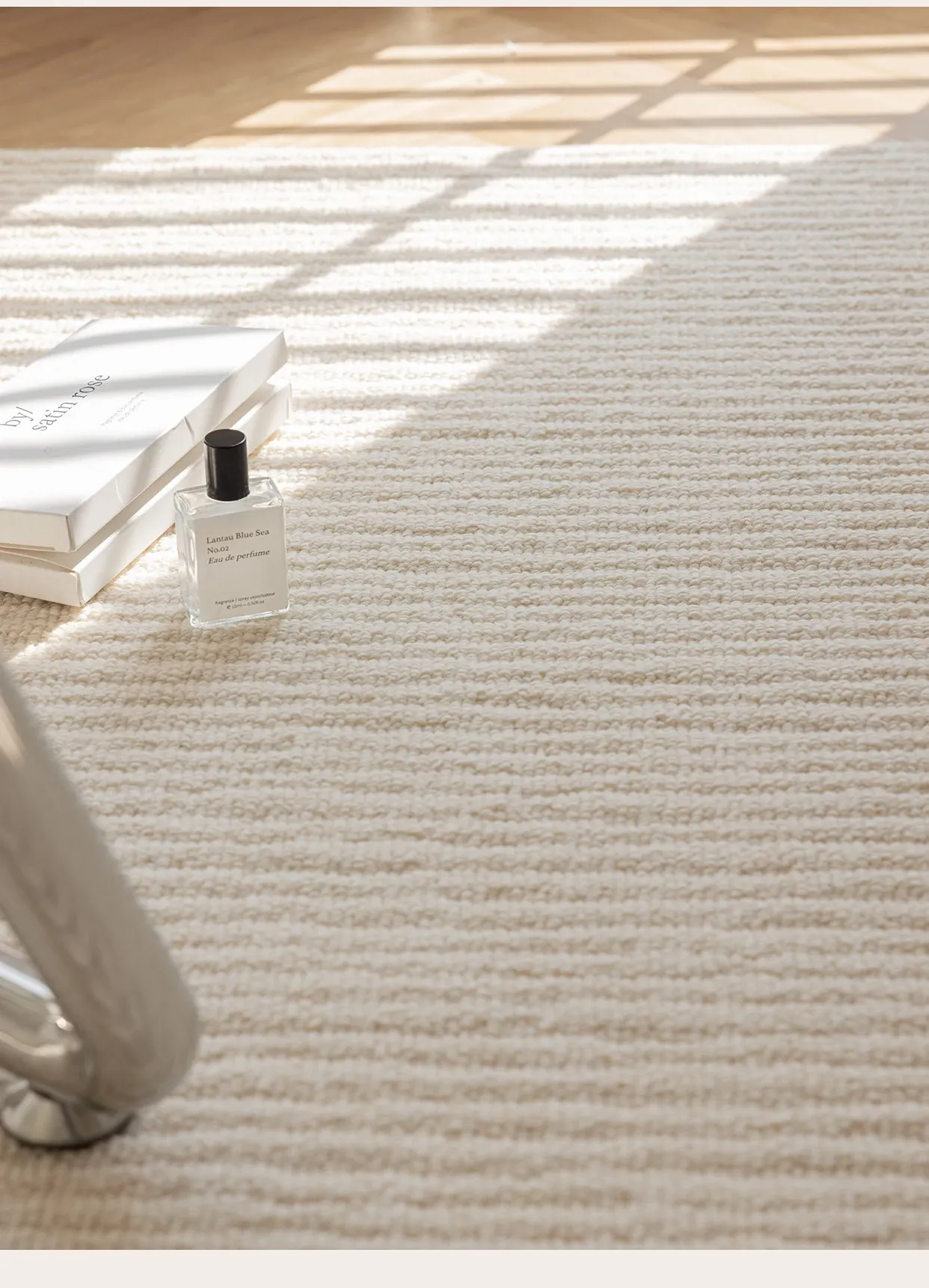 古臻原木風羊毛ラグマット - 高級感あふれる和モダンな侘び寂びデザイン、シンプルな無地でリビングやベッドサイドにぴったり!心地よい触感と洗練された雰囲気をお楽しみください。