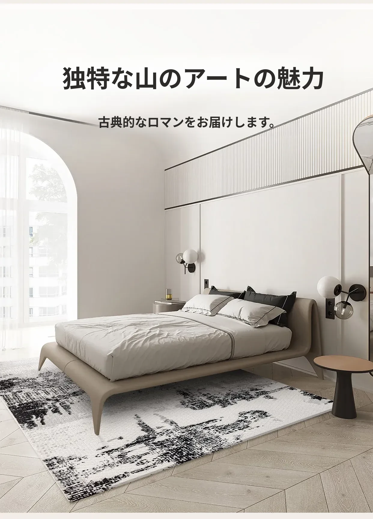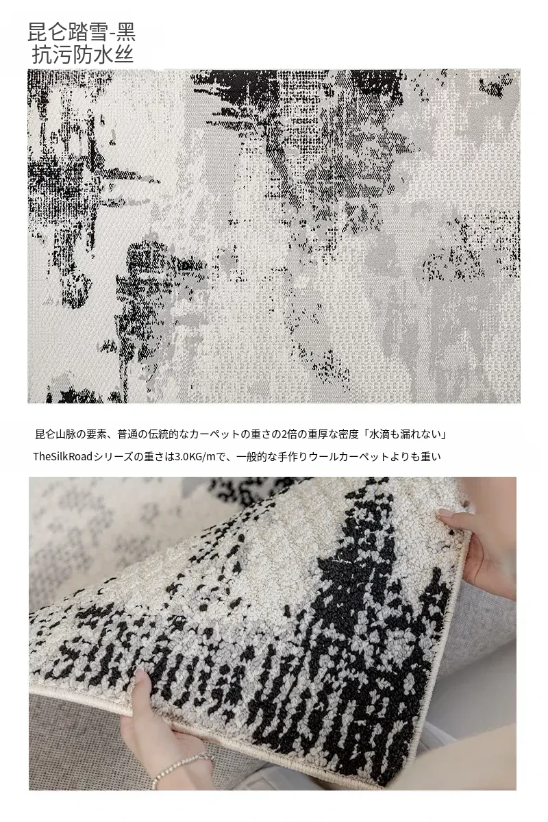 古臻 昆仑 雪の踏みしめ、モダンでシンプルなデザインのベッドルームラグ。高級感あふれるリビングや別荘にぴったりなティーテーブルマット。上質な空間を演出し、心地よいひとときを提供します。
