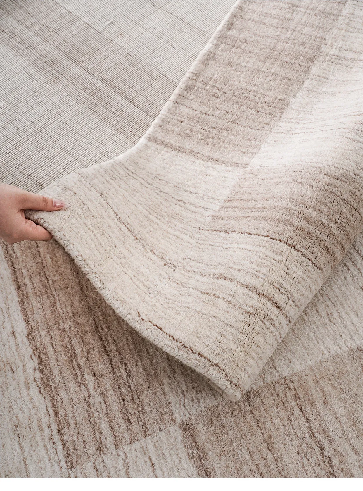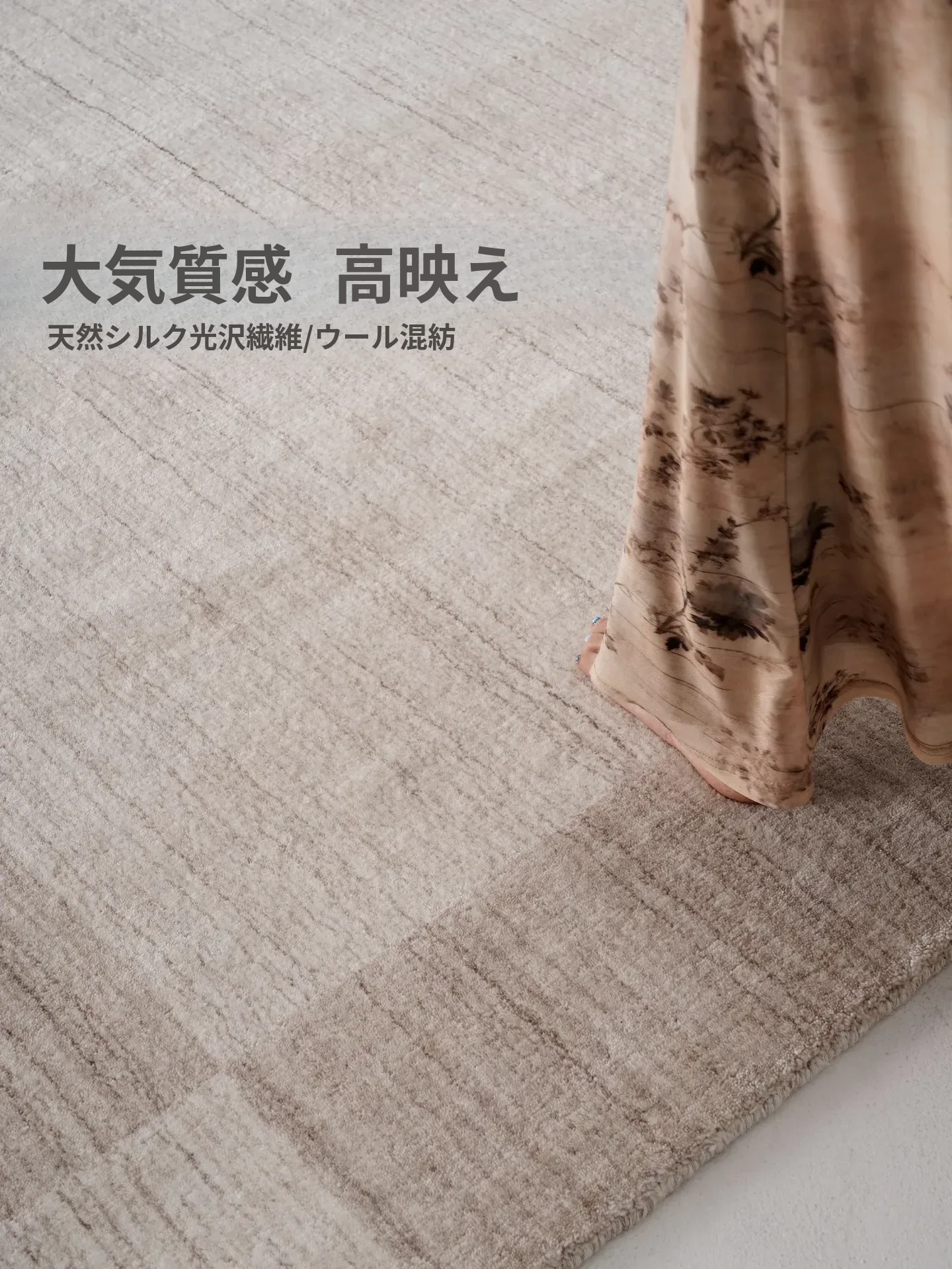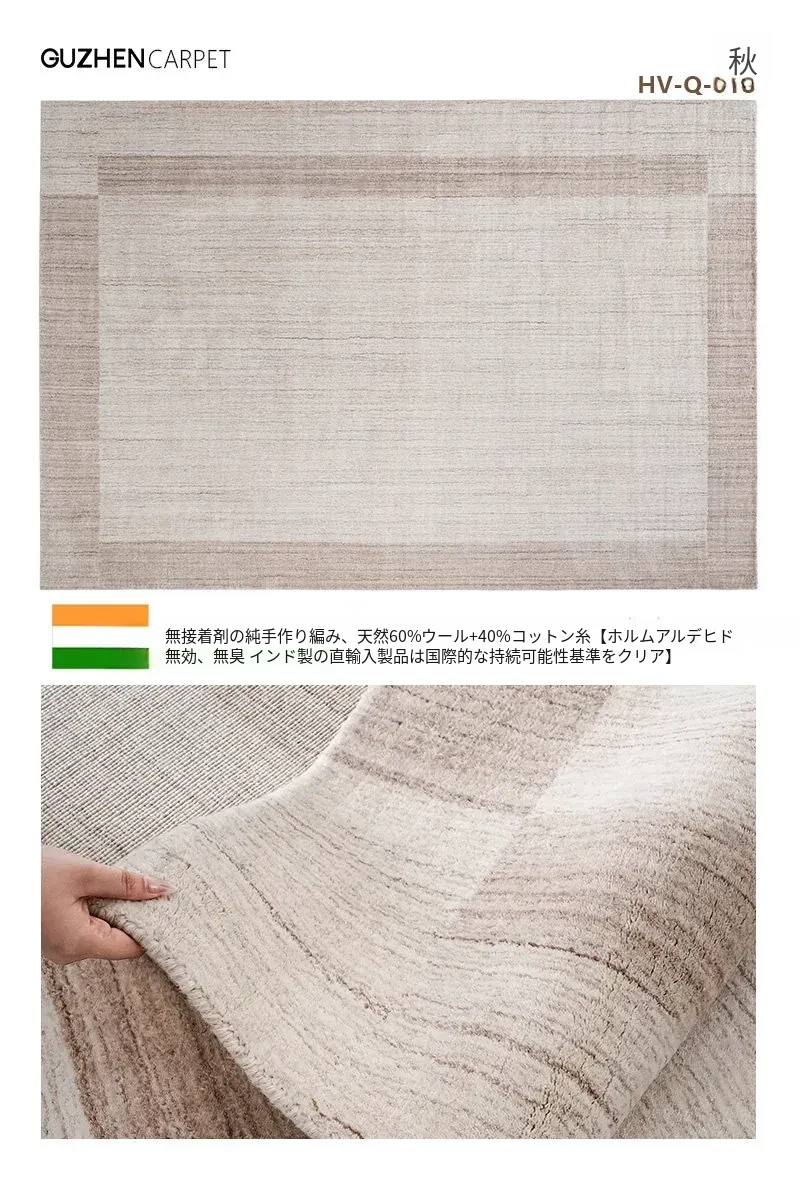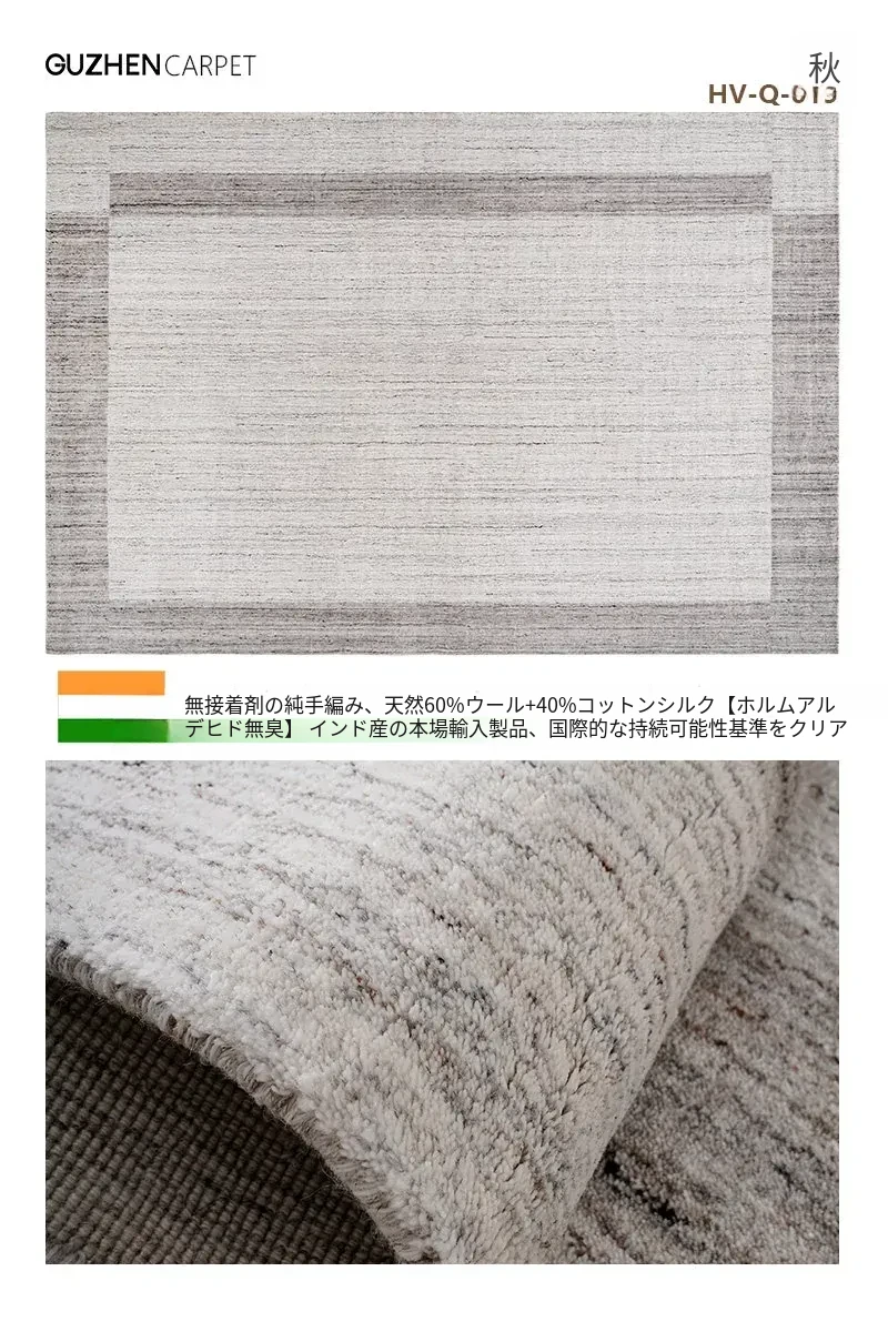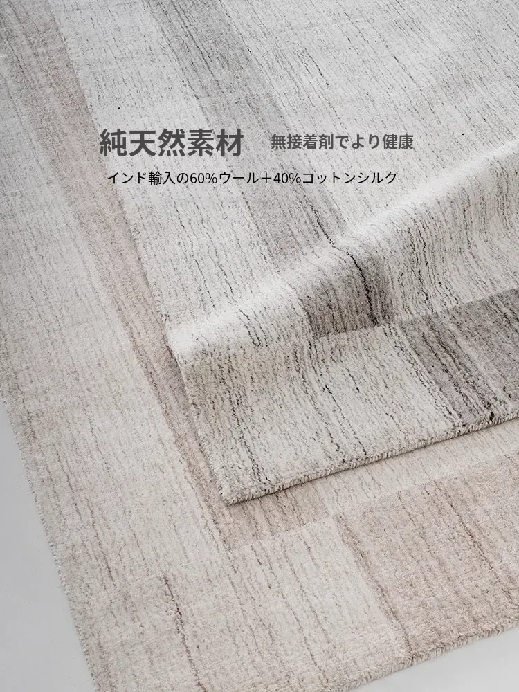 古臻輸入羊毛とシルク混合の手織りラグ|接着剤不使用の軽奢な高級無地・侘寂スタイル|リビング&ベッドルームに最適なラグで、心地よい空間を演出します。