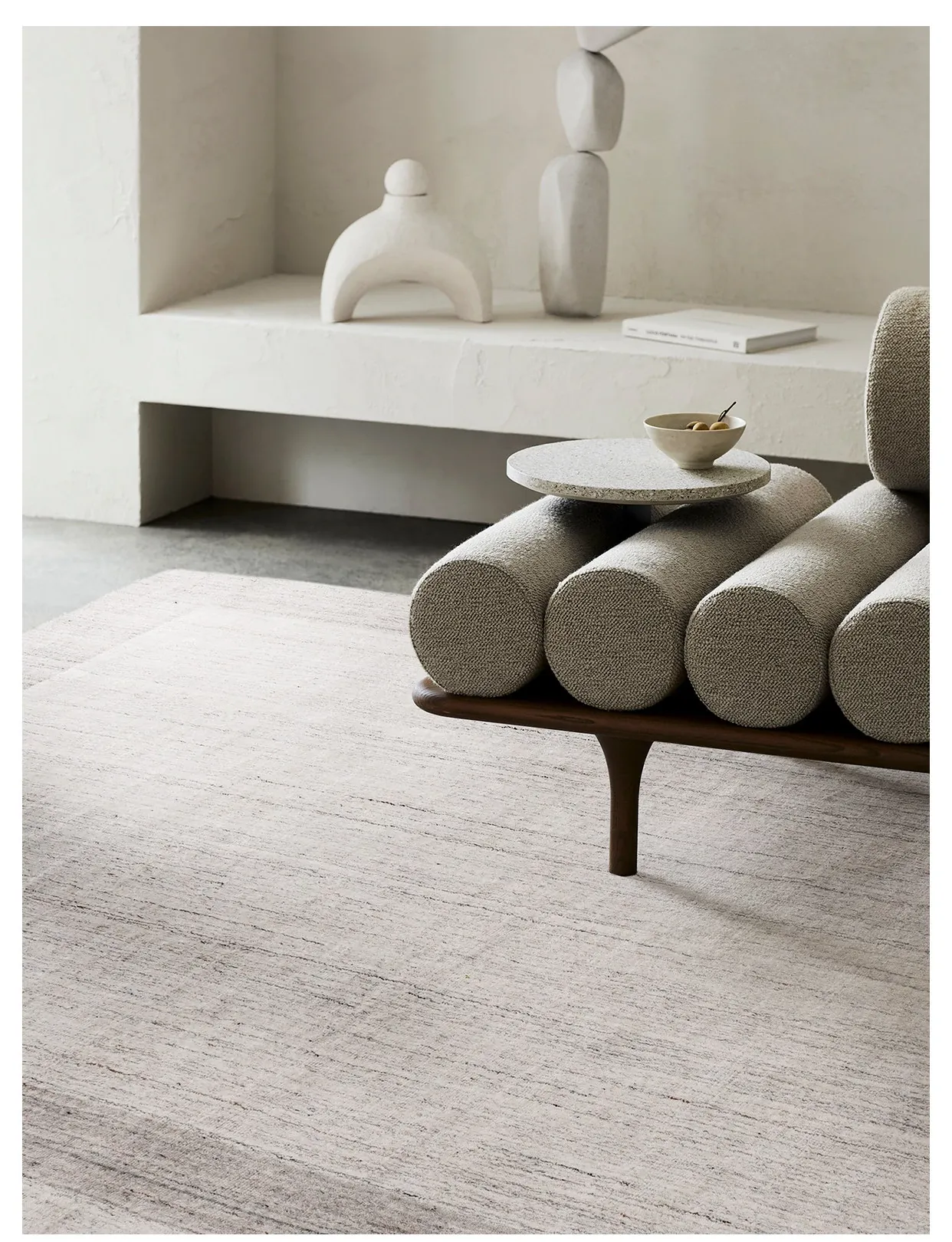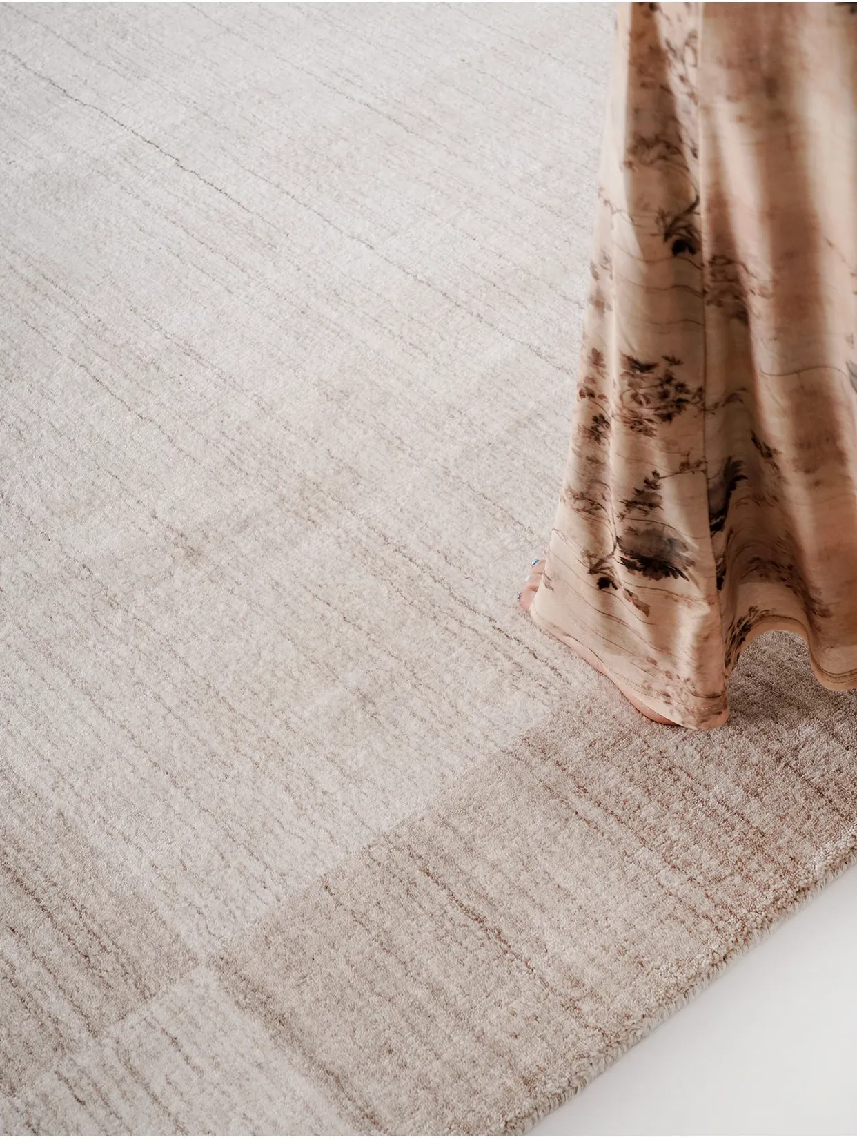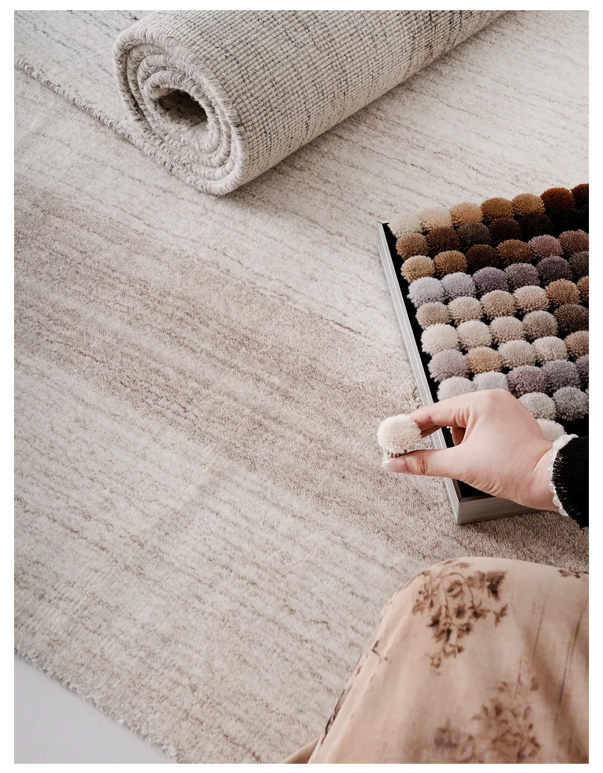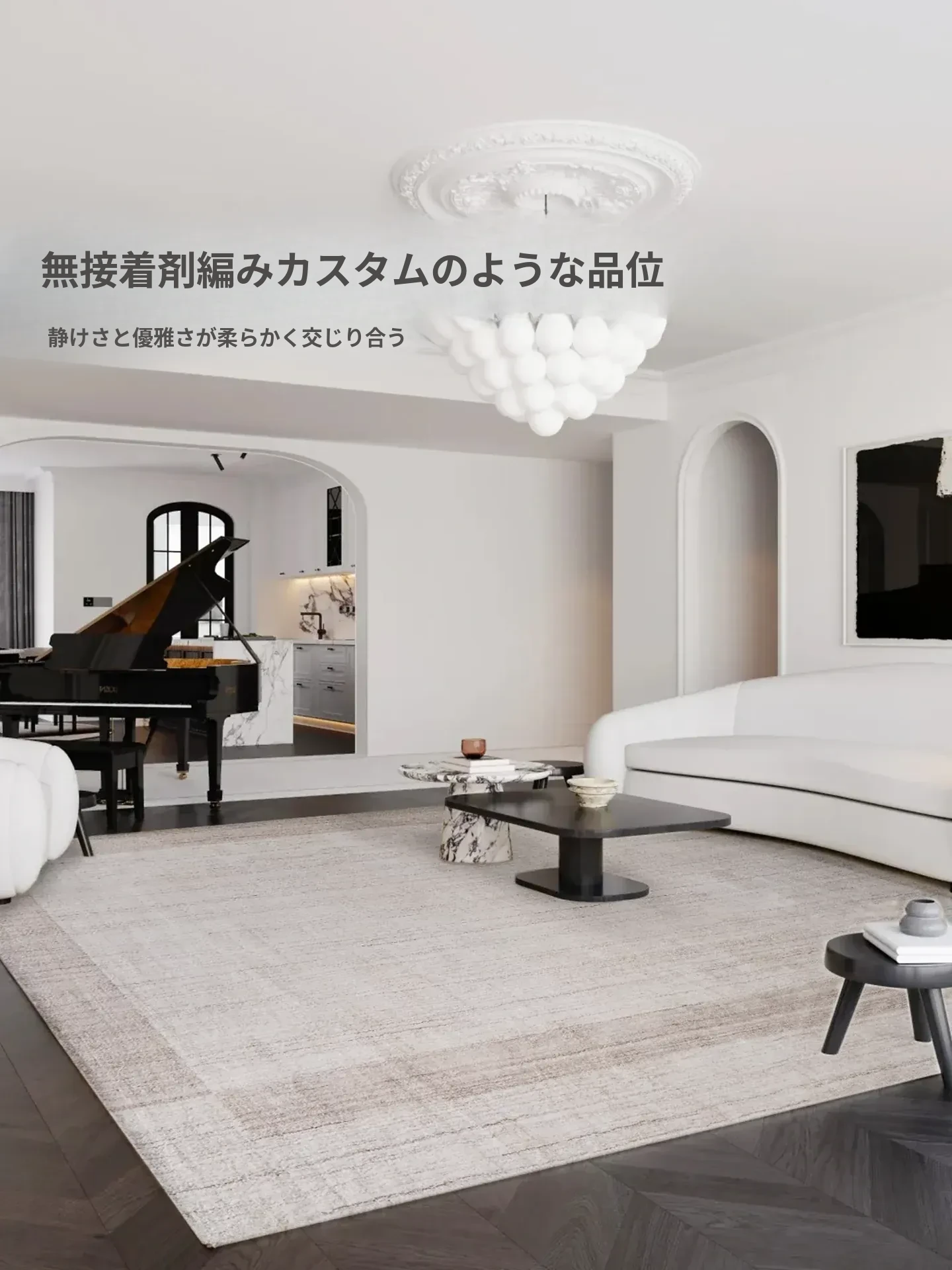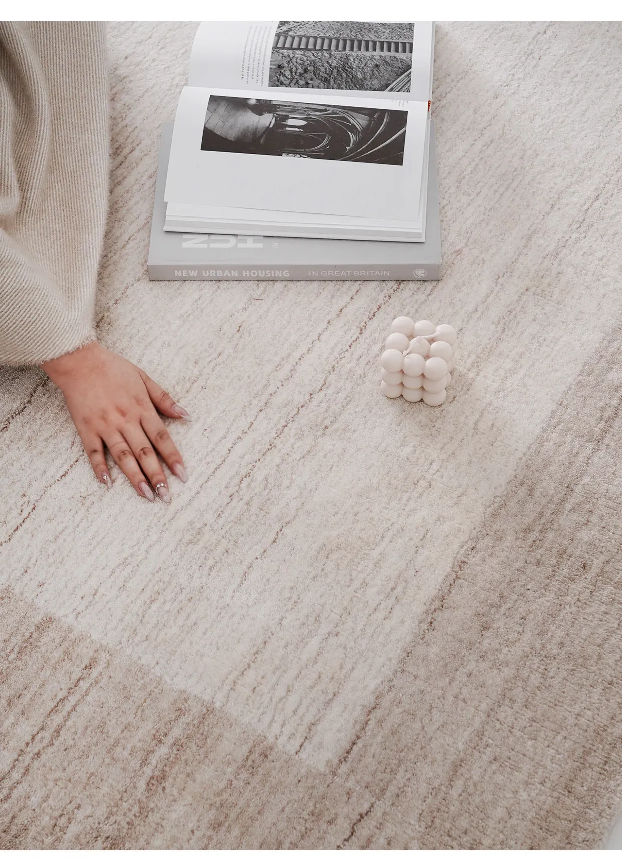 古臻輸入羊毛とシルク混合の手織りラグ|接着剤不使用の軽奢な高級無地・侘寂スタイル|リビング&ベッドルームに最適なラグで、心地よい空間を演出します。