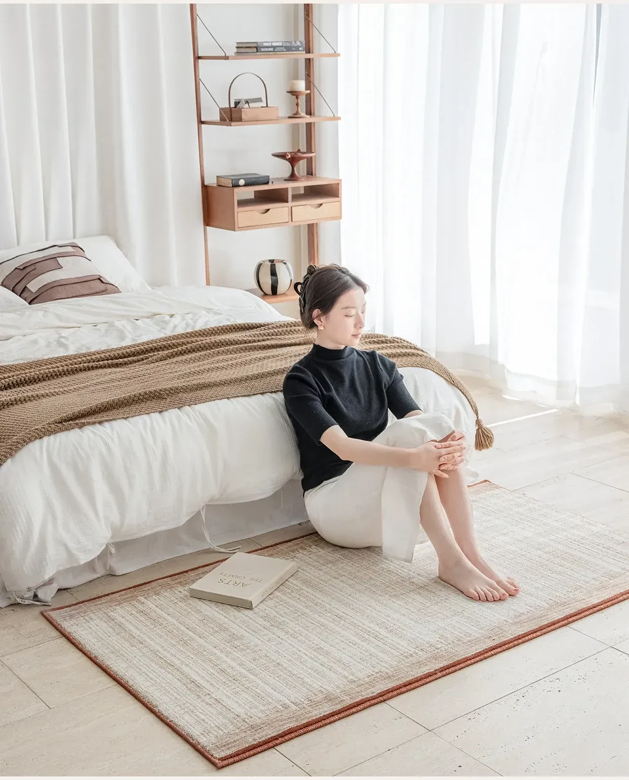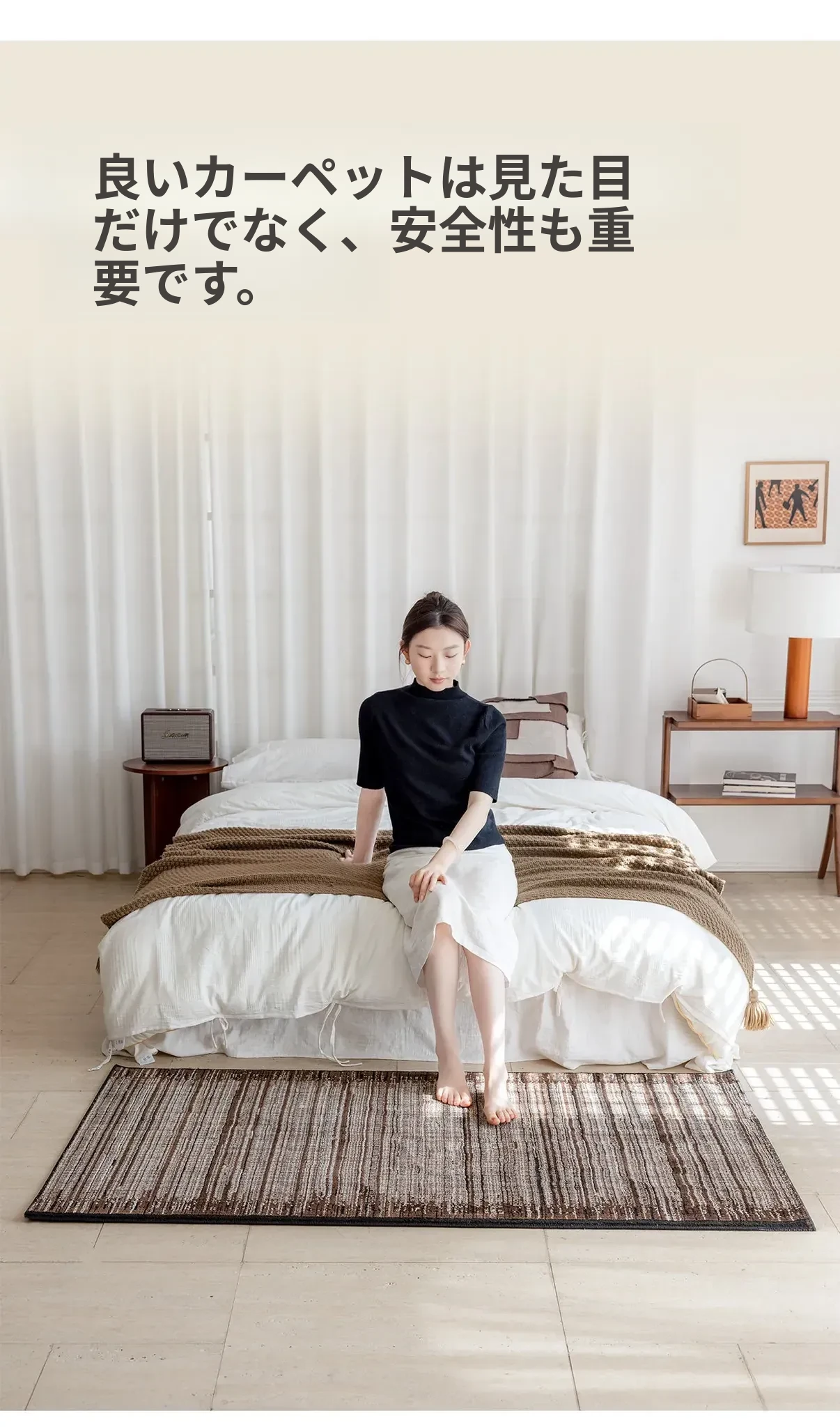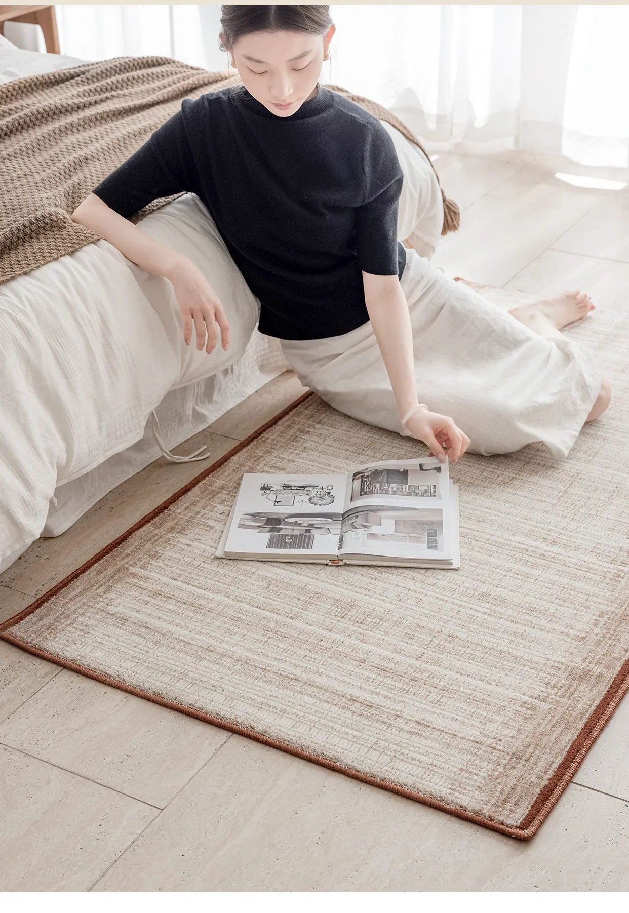 高級感漂うフレンチスタイル!古臻無膠ベッドサイドマット - 輸入ウール混紡、フォルムを引き立てる無フォルムの主寝室用ロングカーペット。健康を守るホルムアルデヒドフリーで安心!