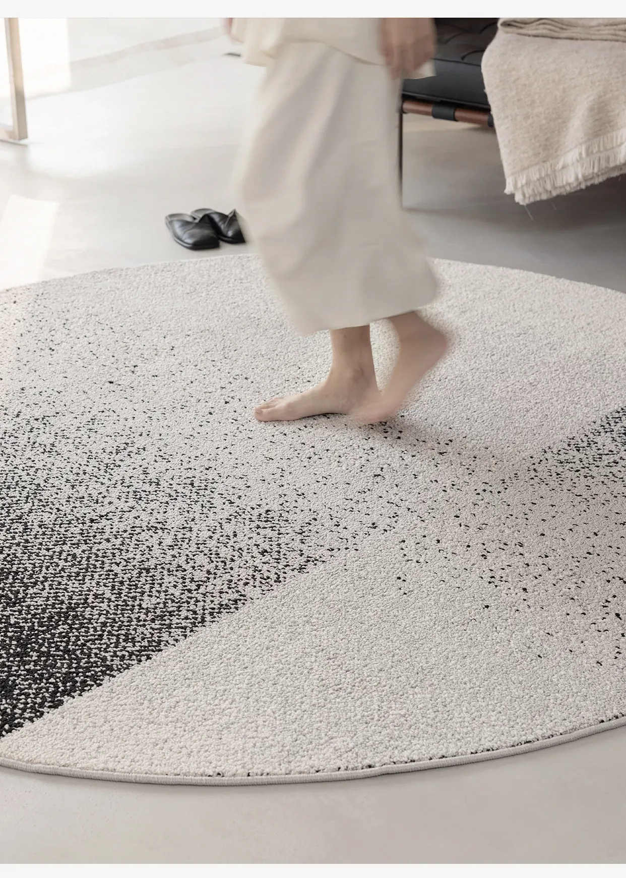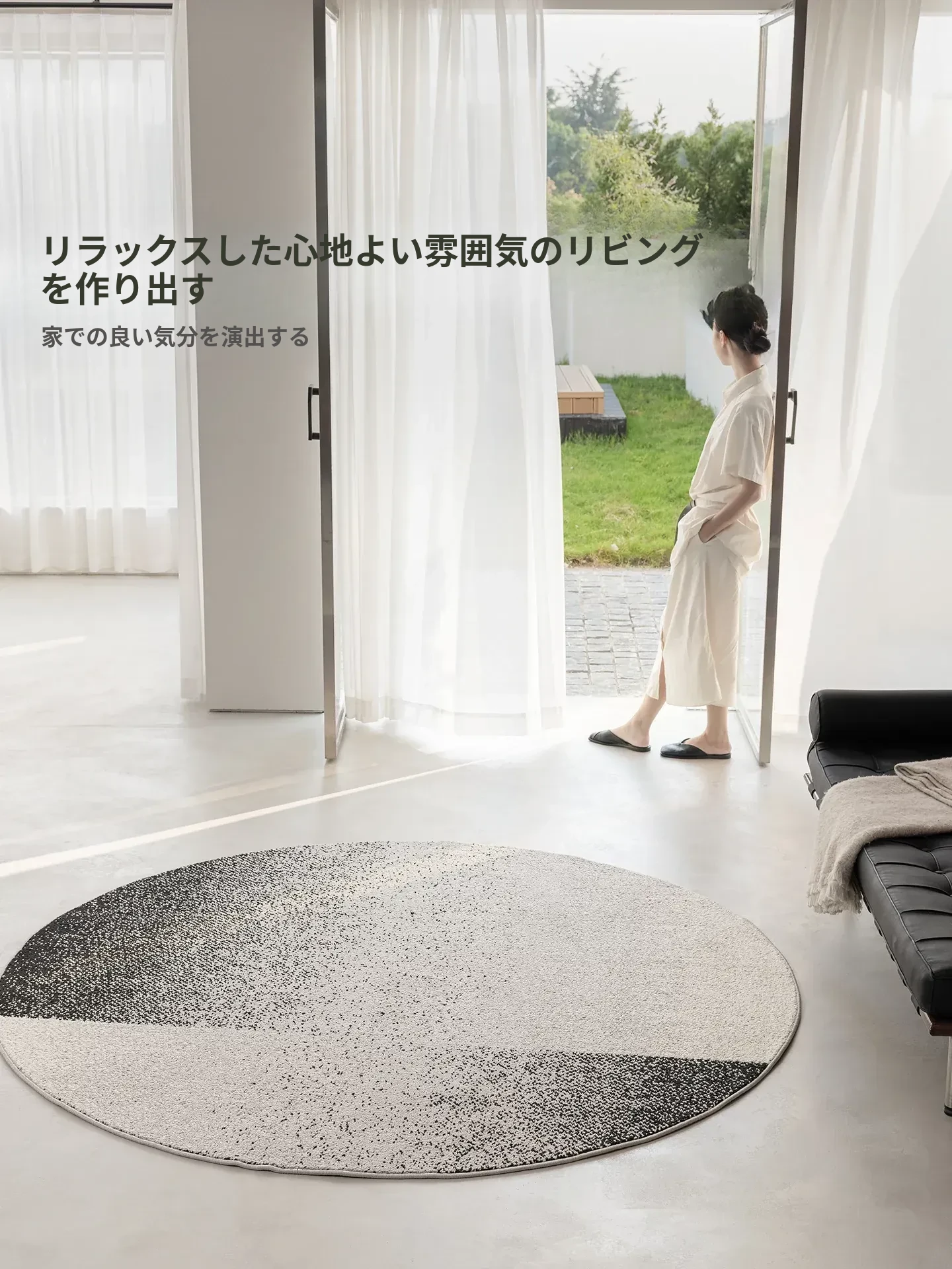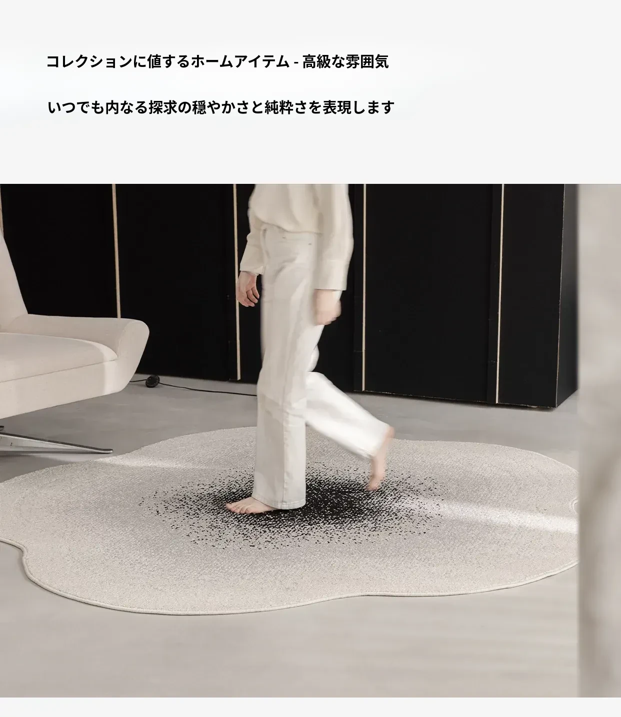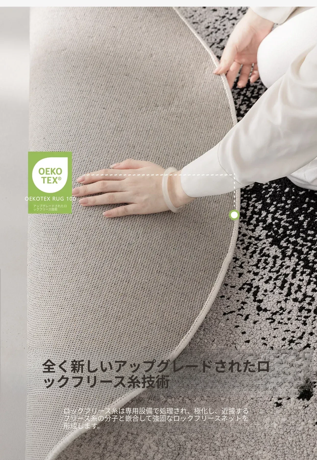 古臻オリジナル防水抗汚れラウンドカーペット - 抽象アートで軽やかな高級感を演出するリビングや寝室にぴったりのベッドサイドマット