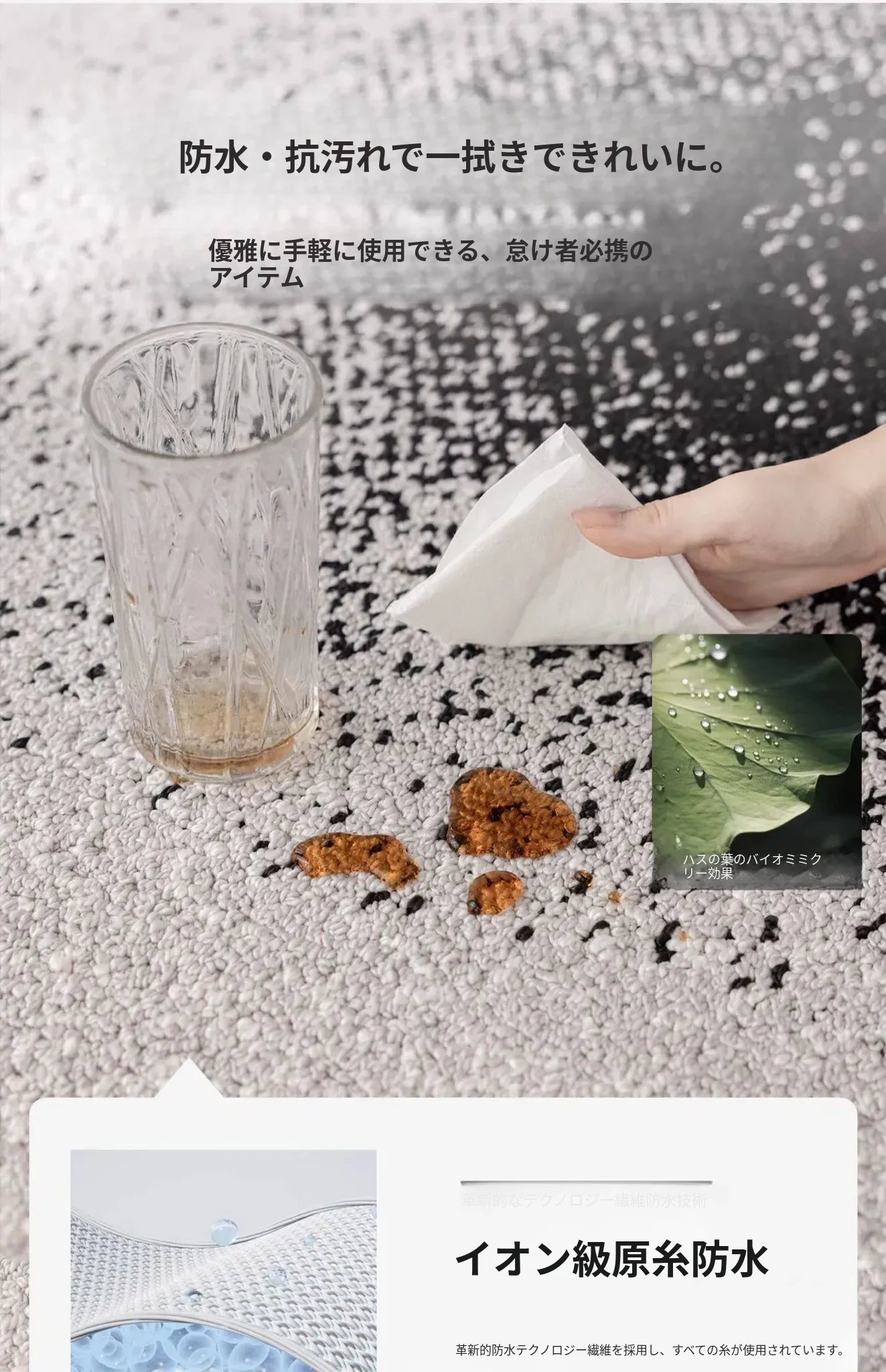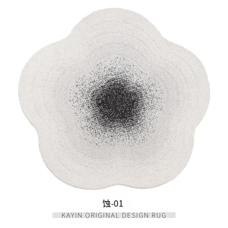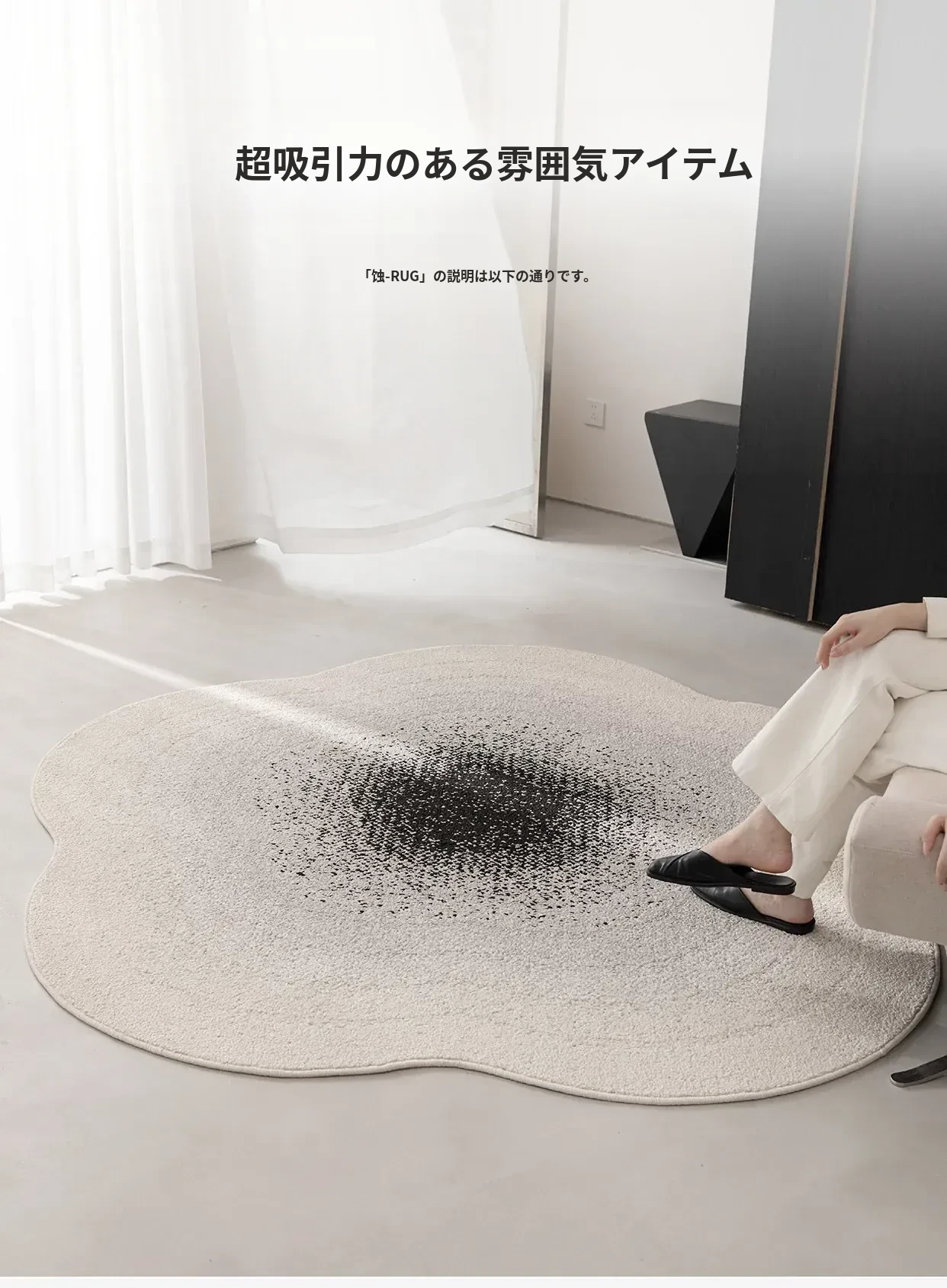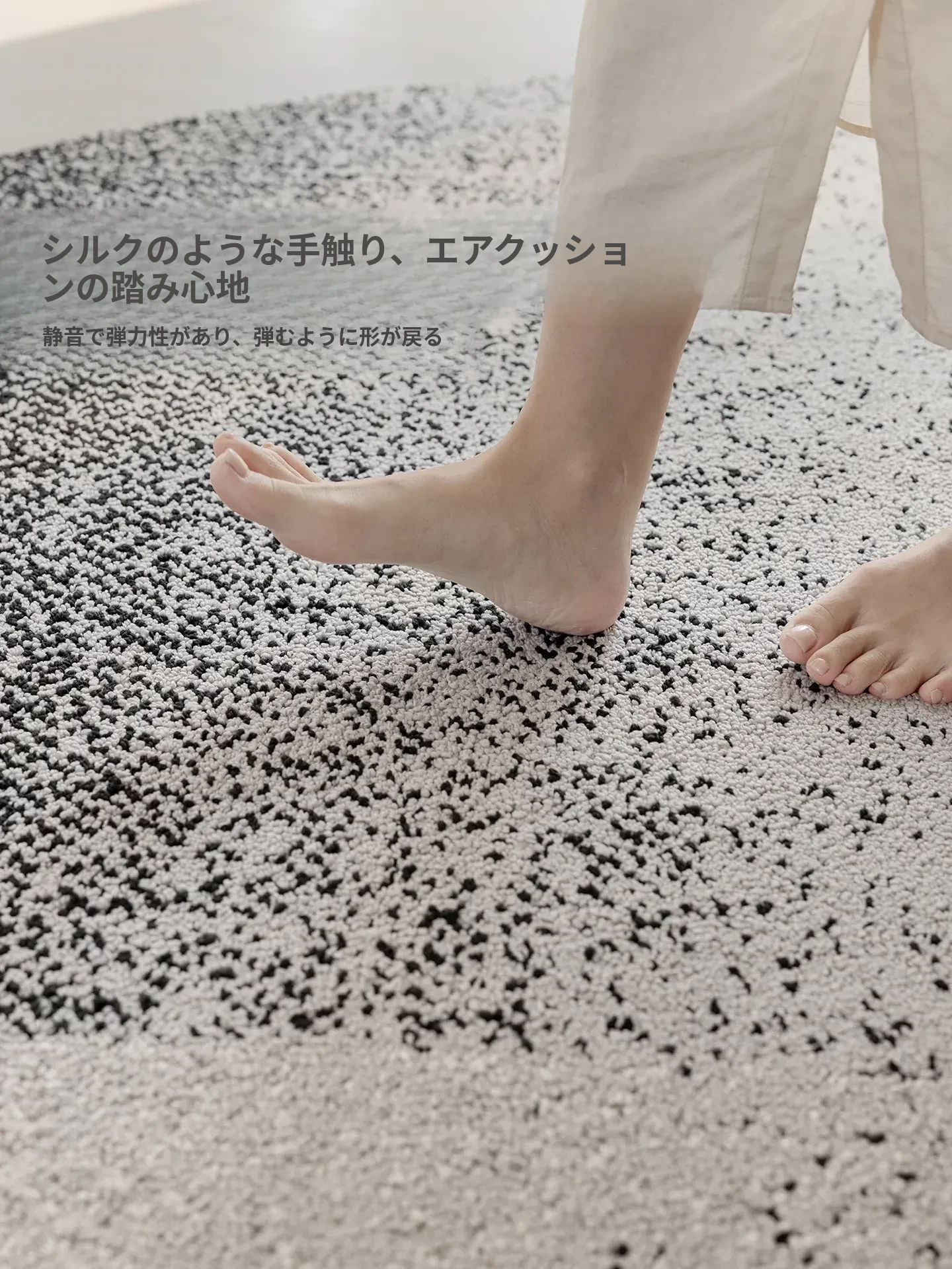 古臻オリジナル防水抗汚れラウンドカーペット - 抽象アートで軽やかな高級感を演出するリビングや寝室にぴったりのベッドサイドマット