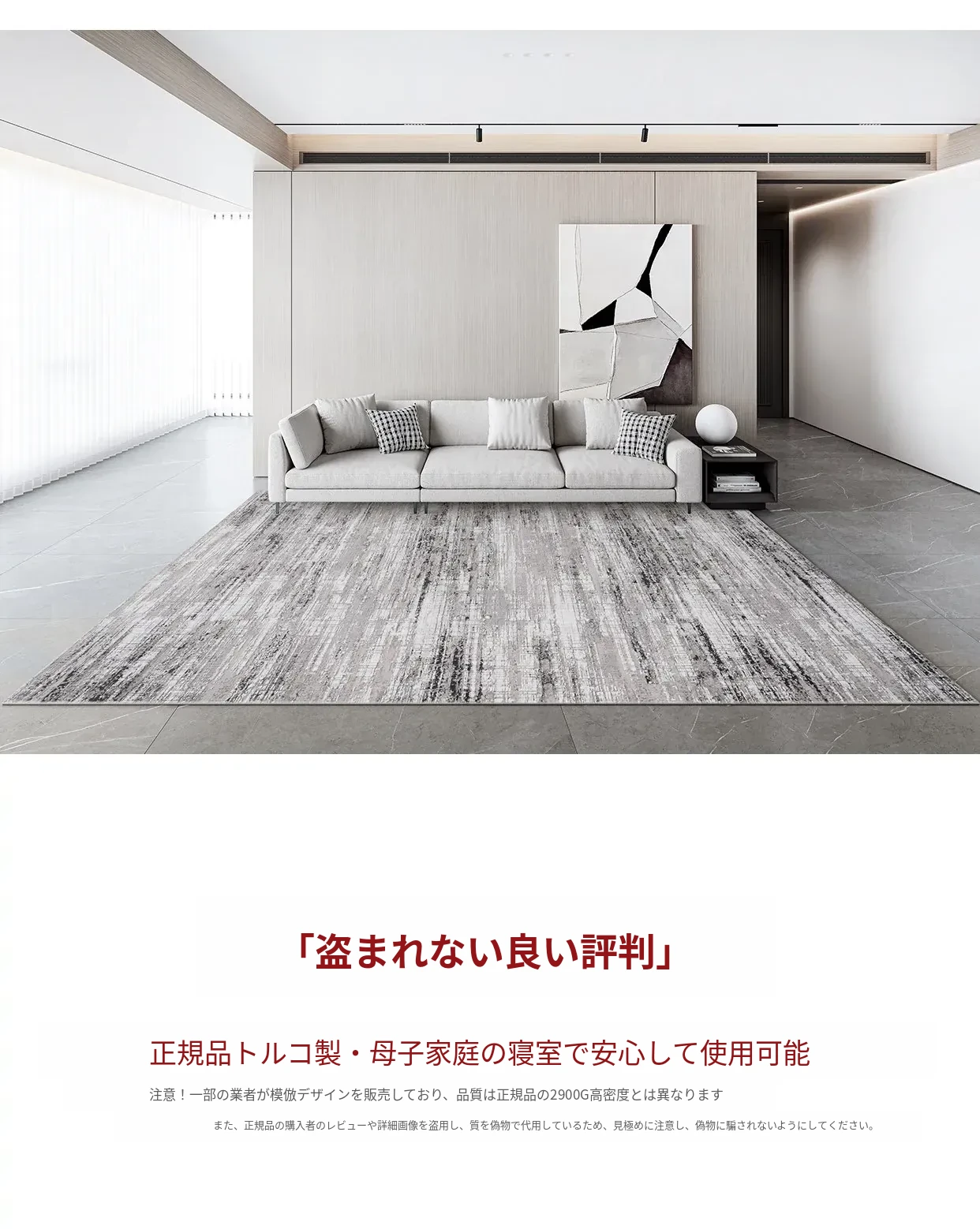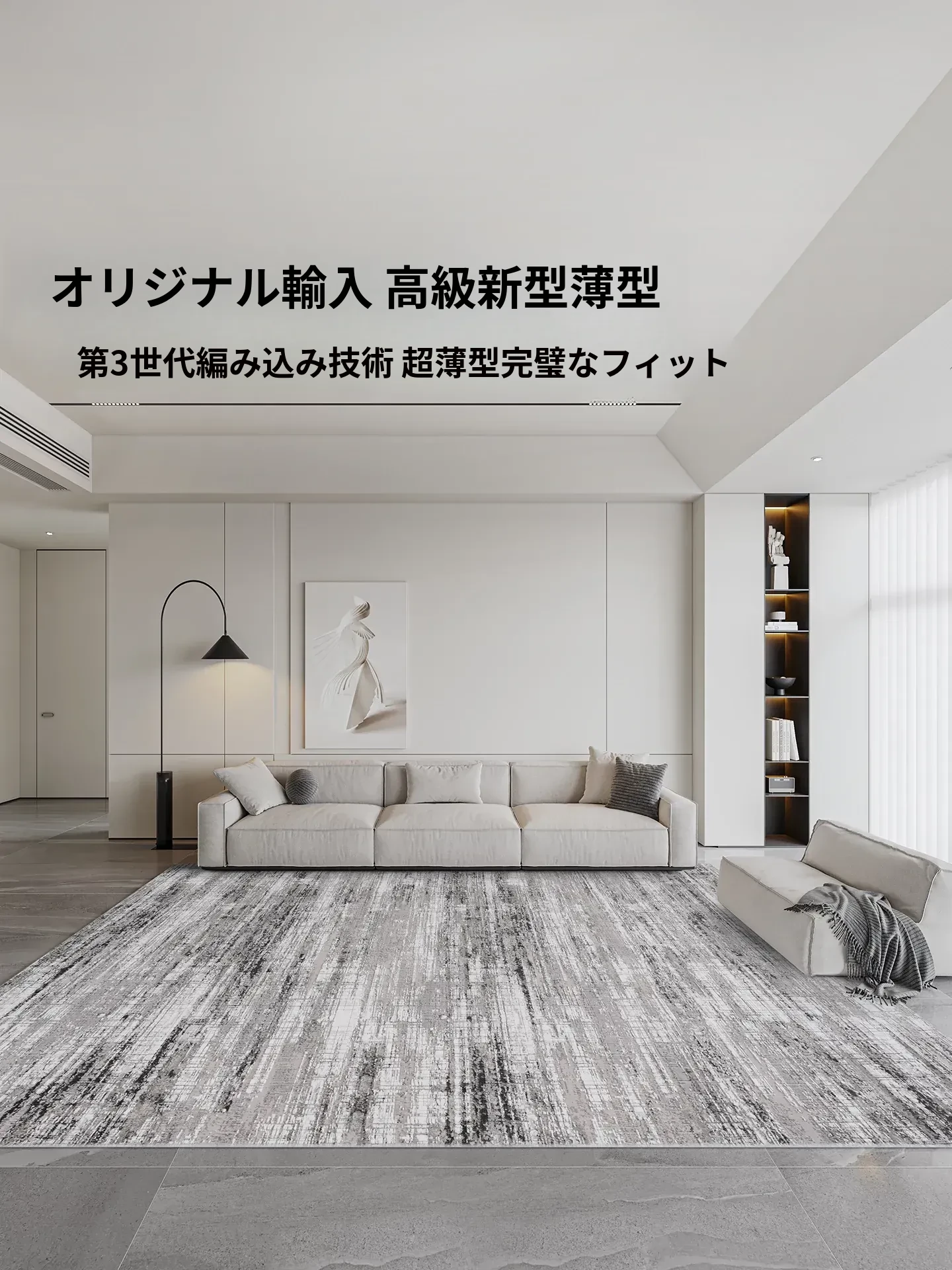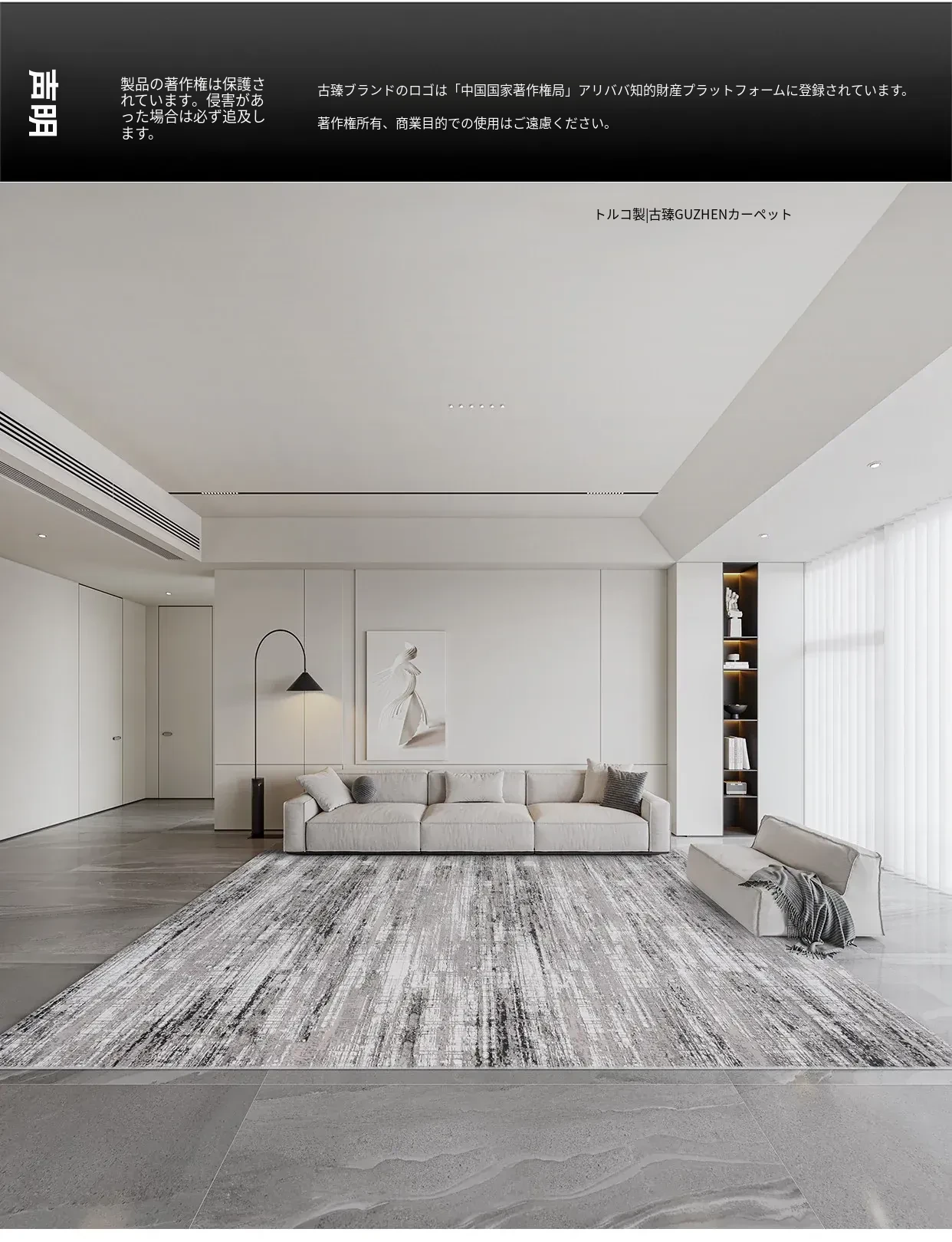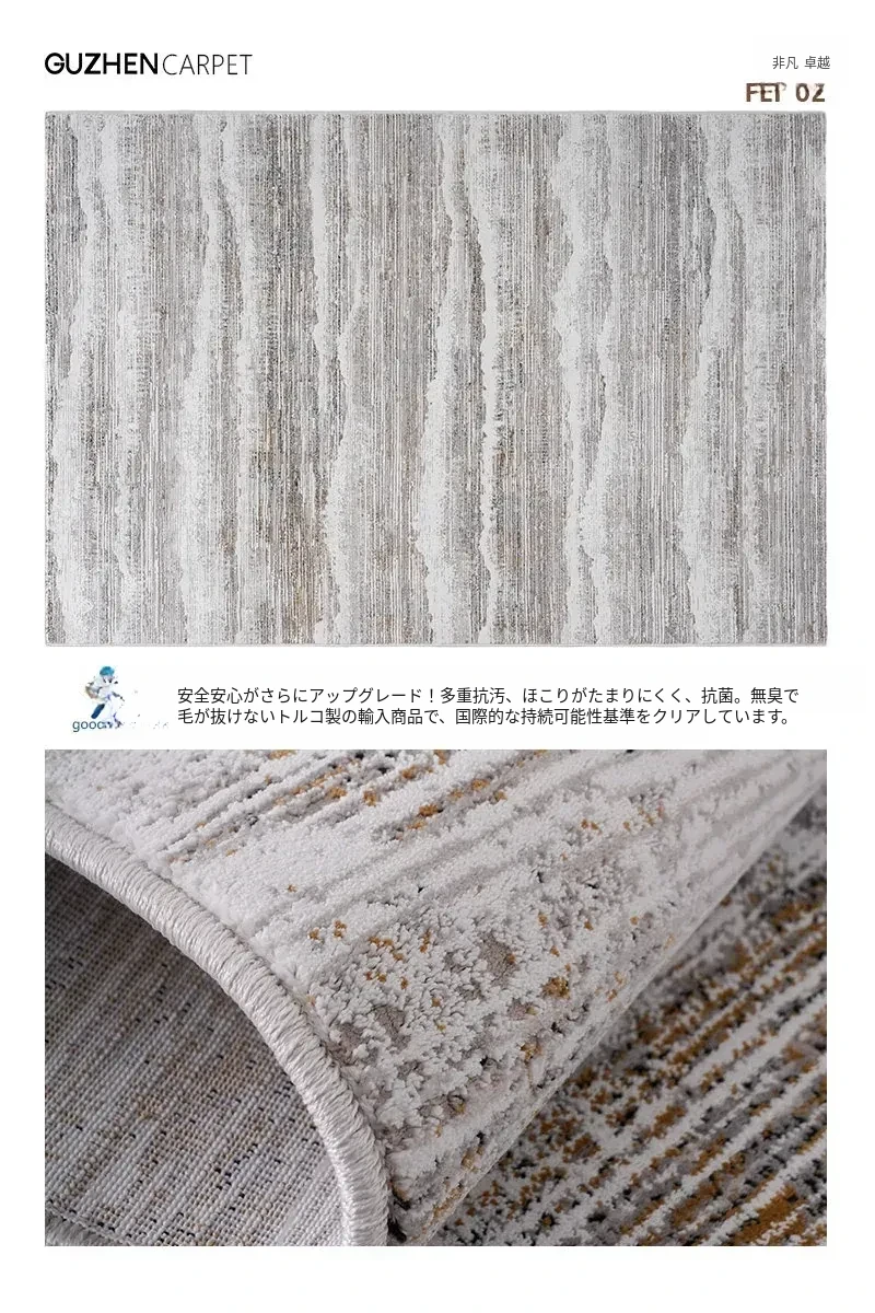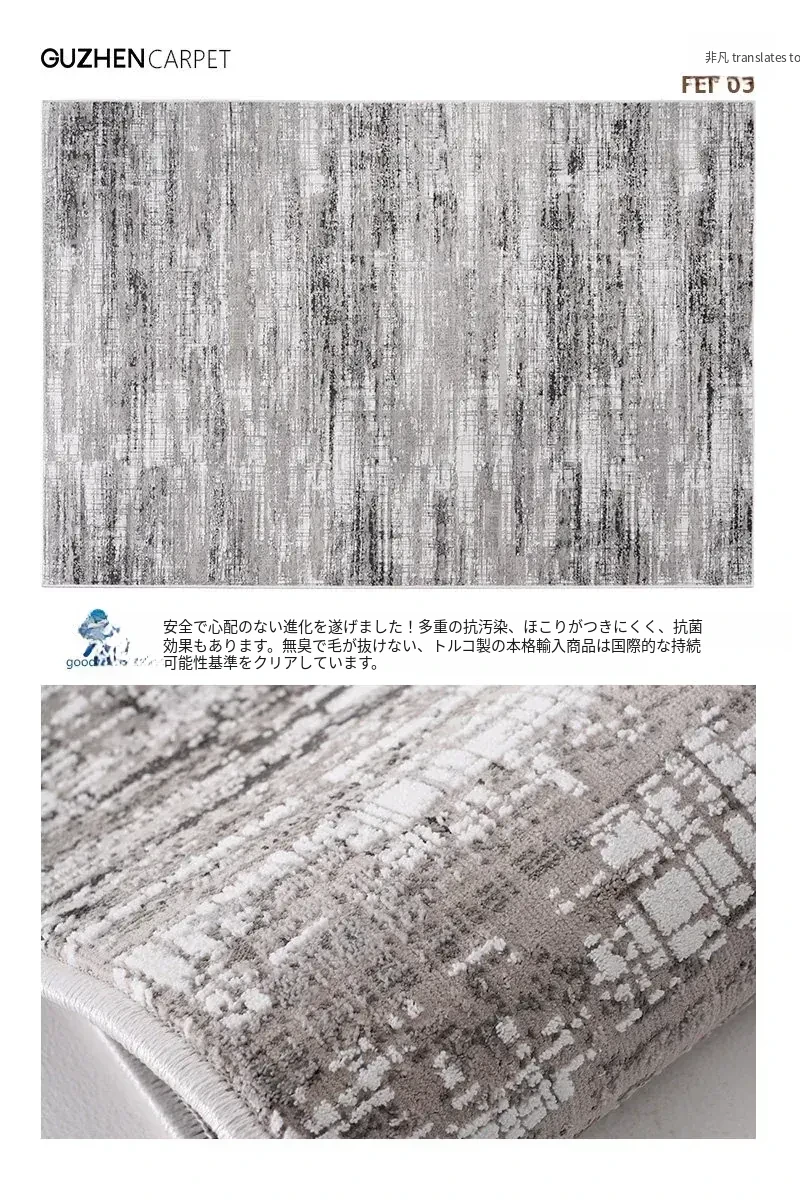 古臻トルコ製イタリアンミニマルデザインのラグ—高級感あふれるグレーのショートパイル薄手カーペット、リビングや寝室にぴったりのスタイリッシュなアイテム!