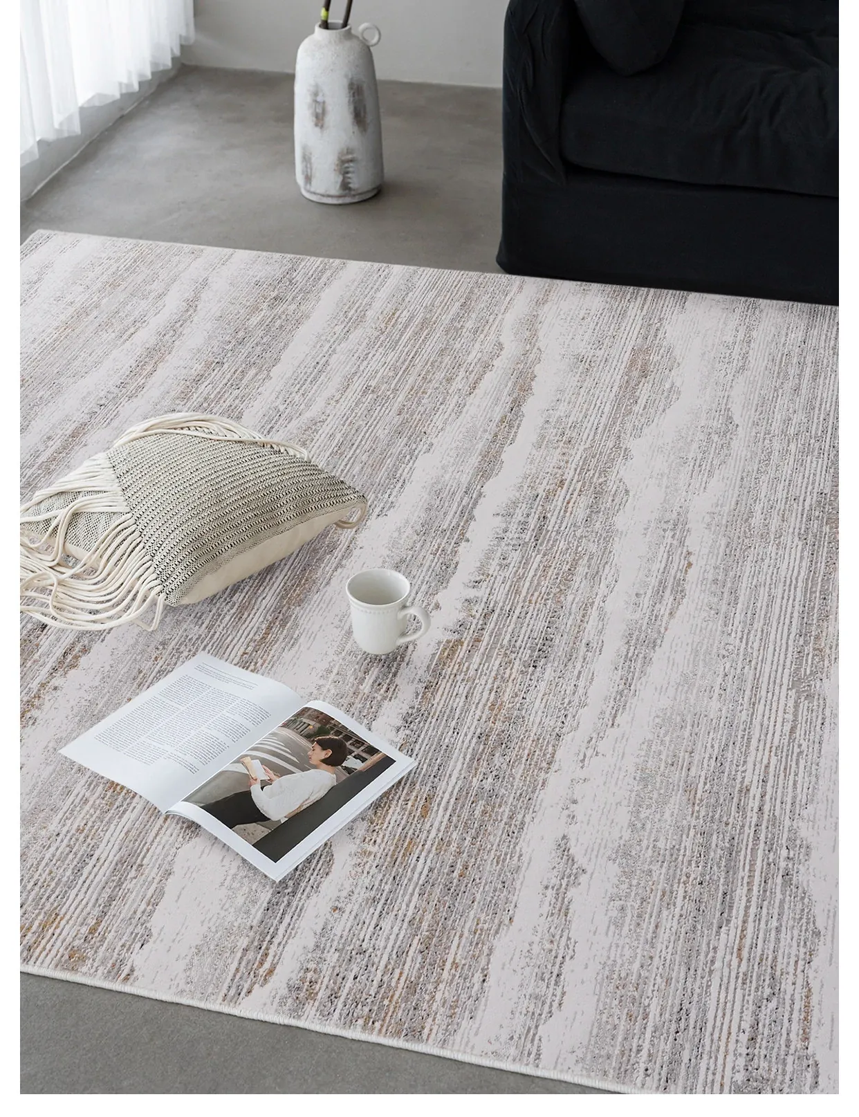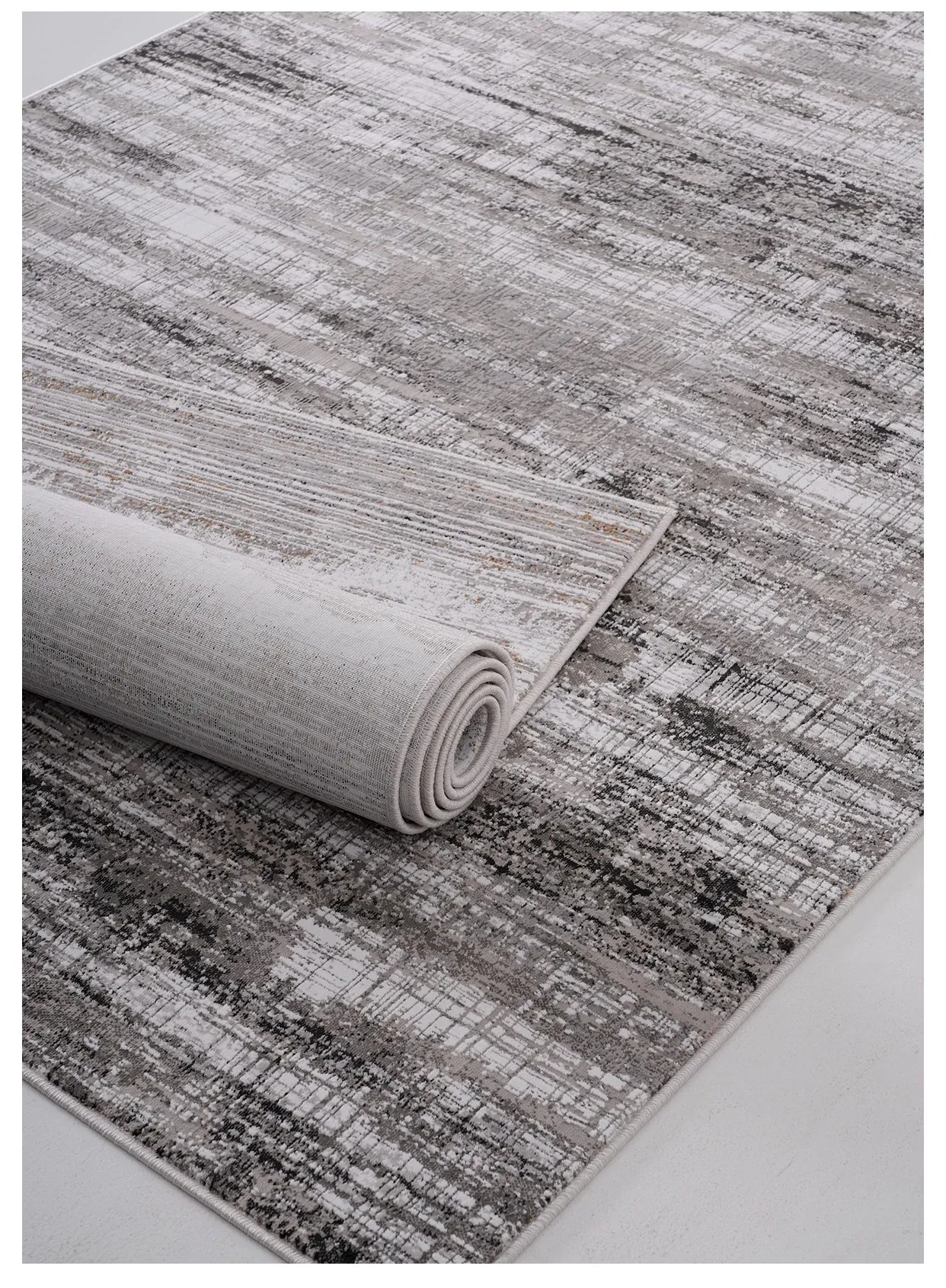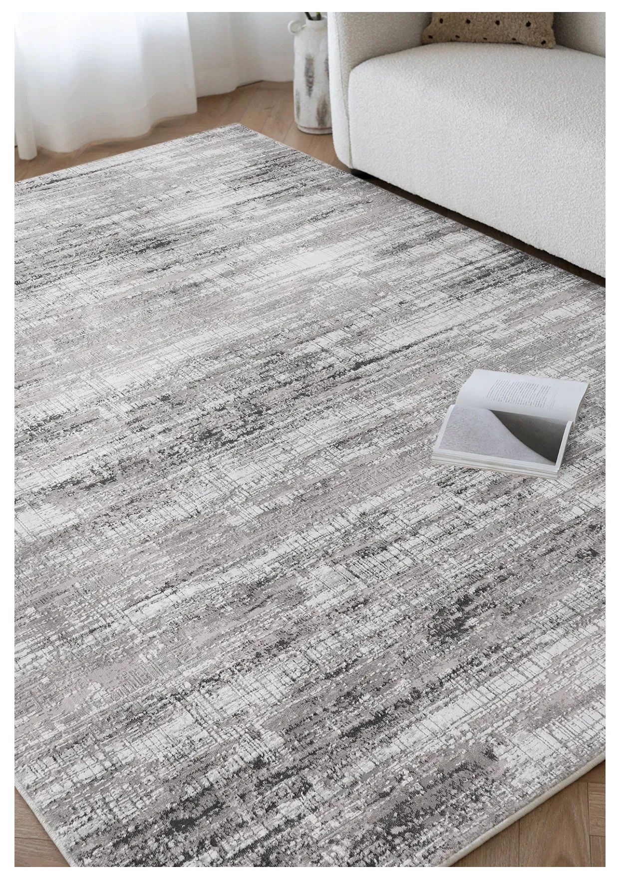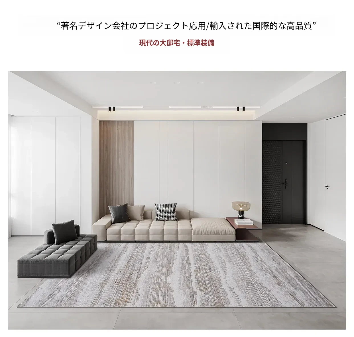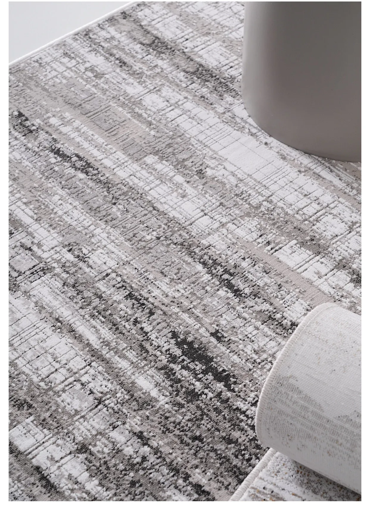 古臻トルコ製イタリアンミニマルデザインのラグ—高級感あふれるグレーのショートパイル薄手カーペット、リビングや寝室にぴったりのスタイリッシュなアイテム!