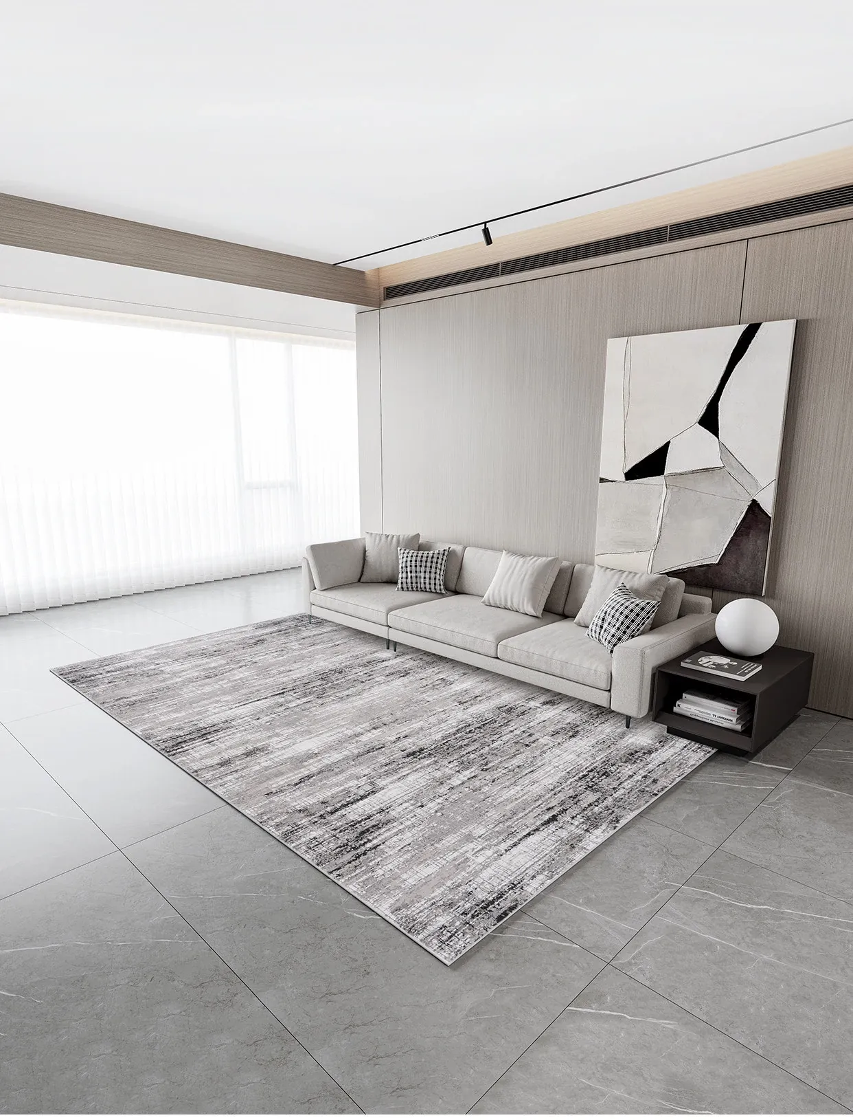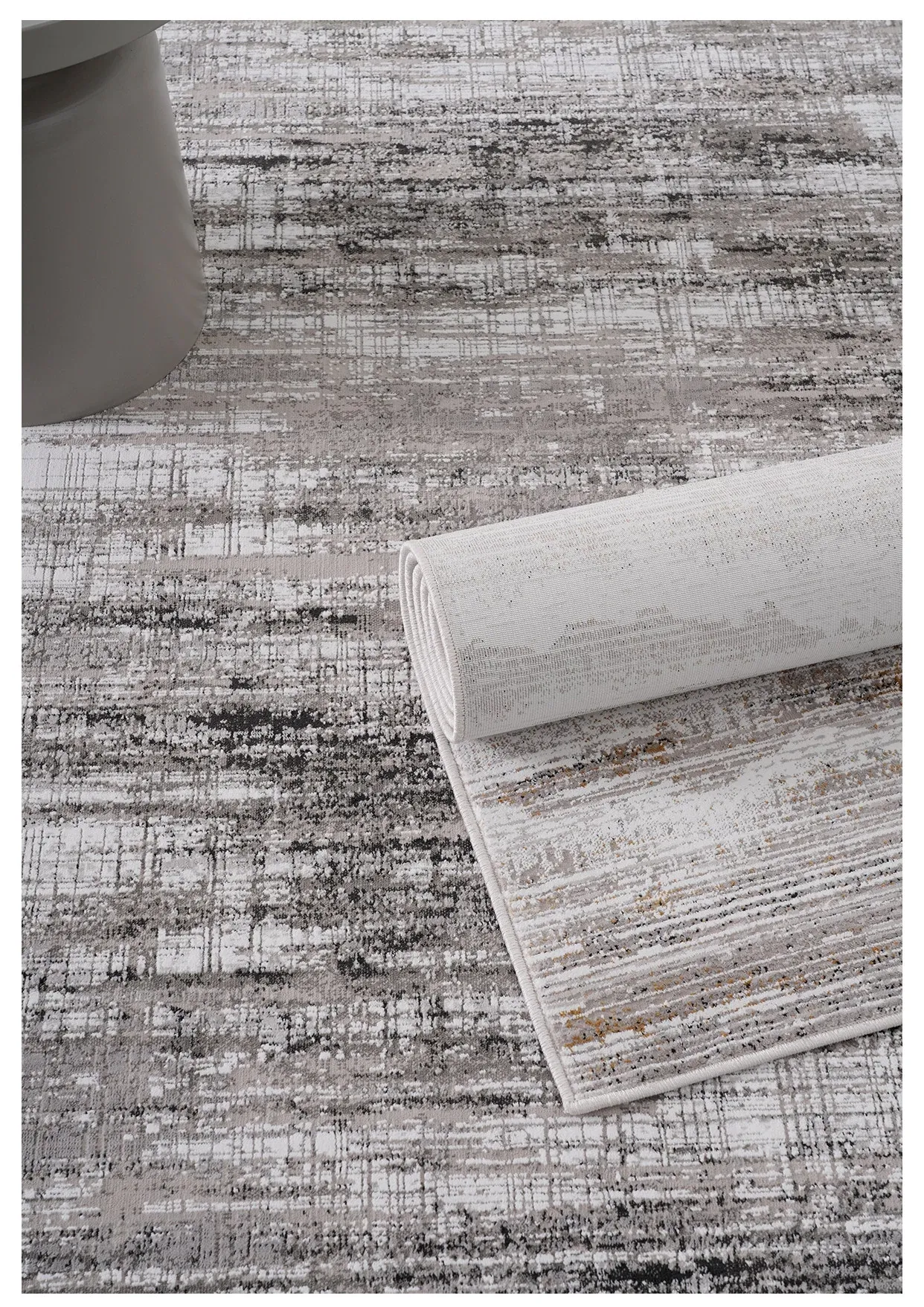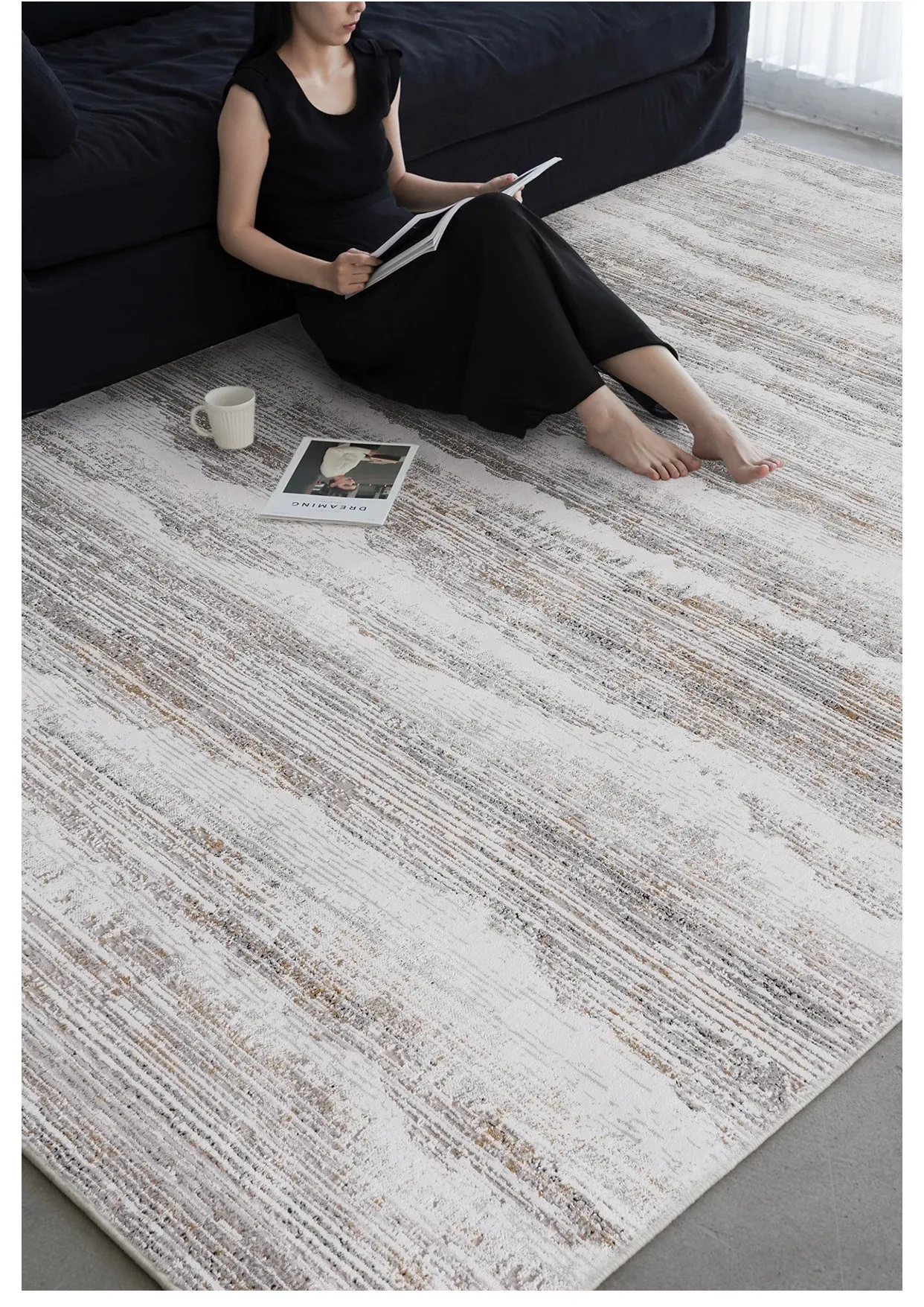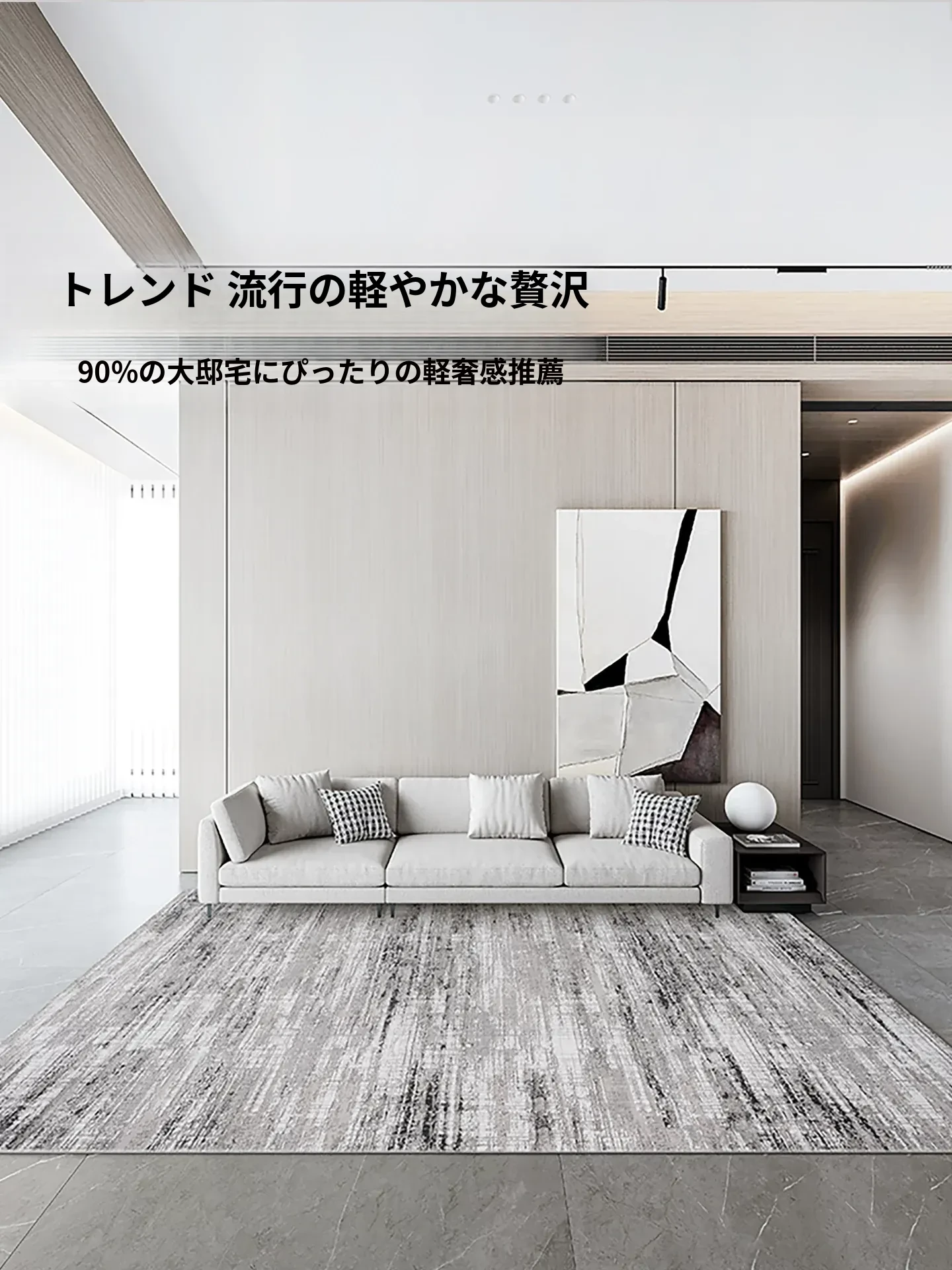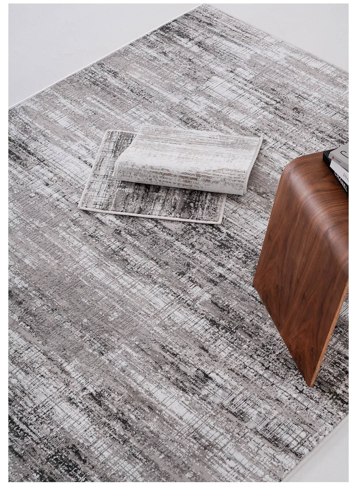 古臻トルコ製イタリアンミニマルデザインのラグ—高級感あふれるグレーのショートパイル薄手カーペット、リビングや寝室にぴったりのスタイリッシュなアイテム!