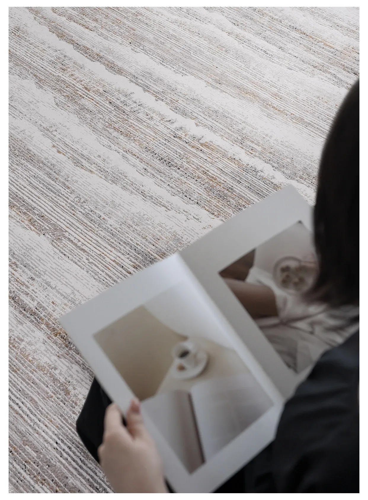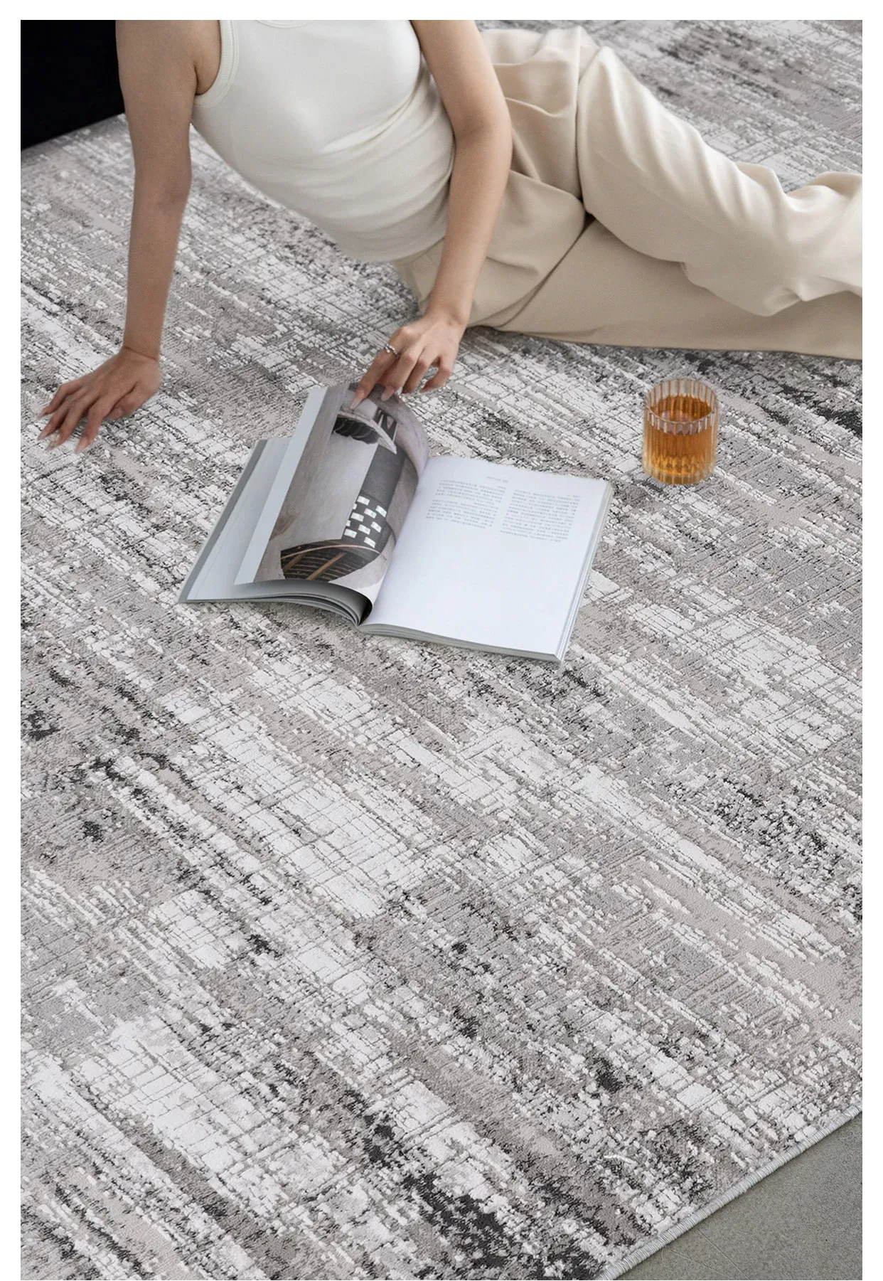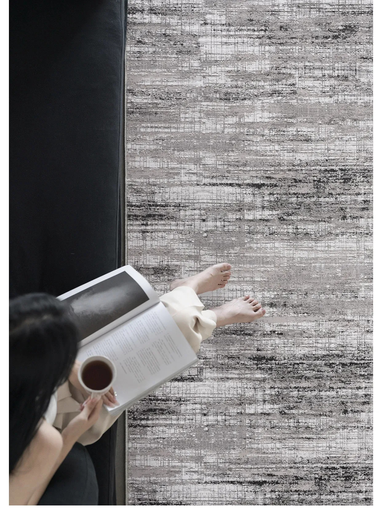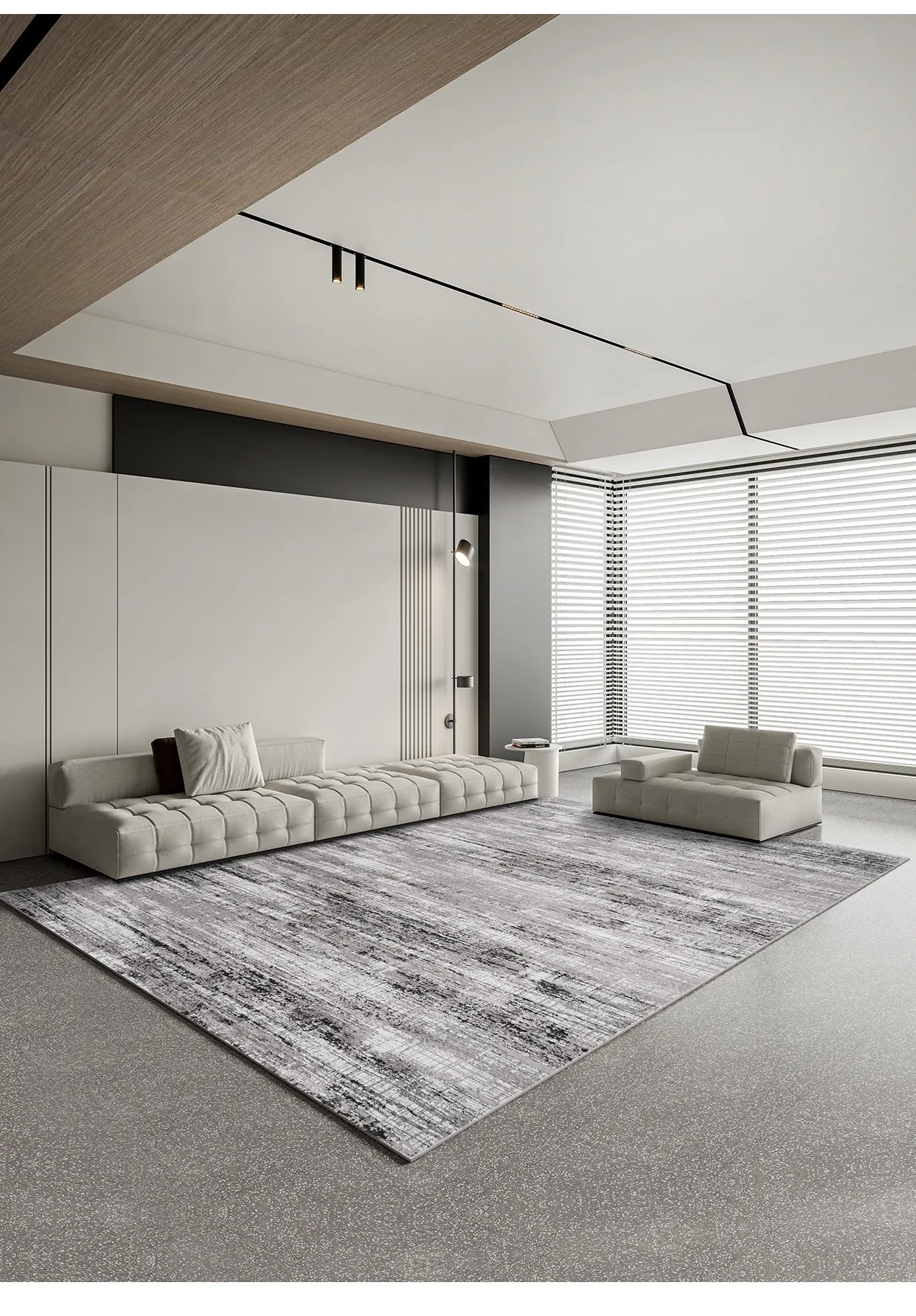 古臻トルコ製イタリアンミニマルデザインのラグ—高級感あふれるグレーのショートパイル薄手カーペット、リビングや寝室にぴったりのスタイリッシュなアイテム!