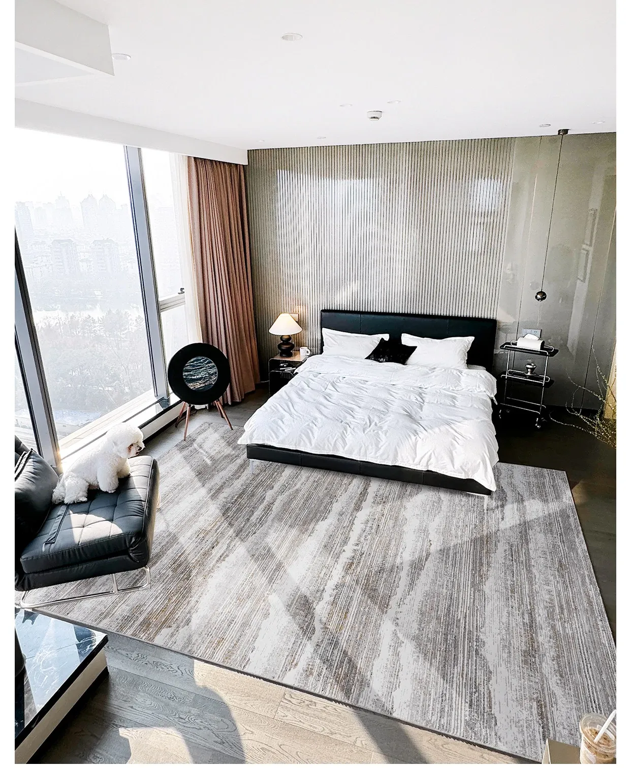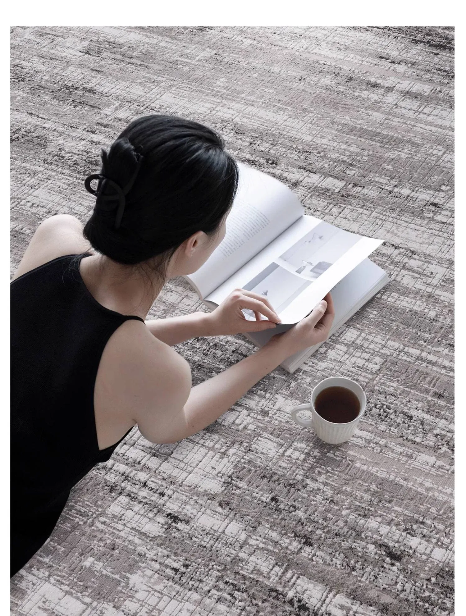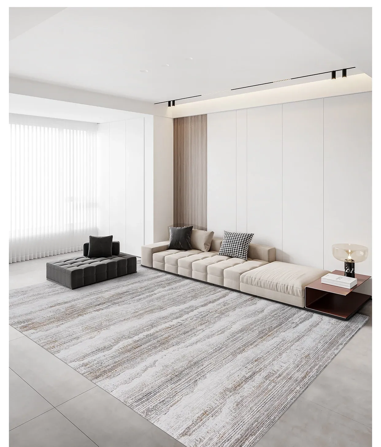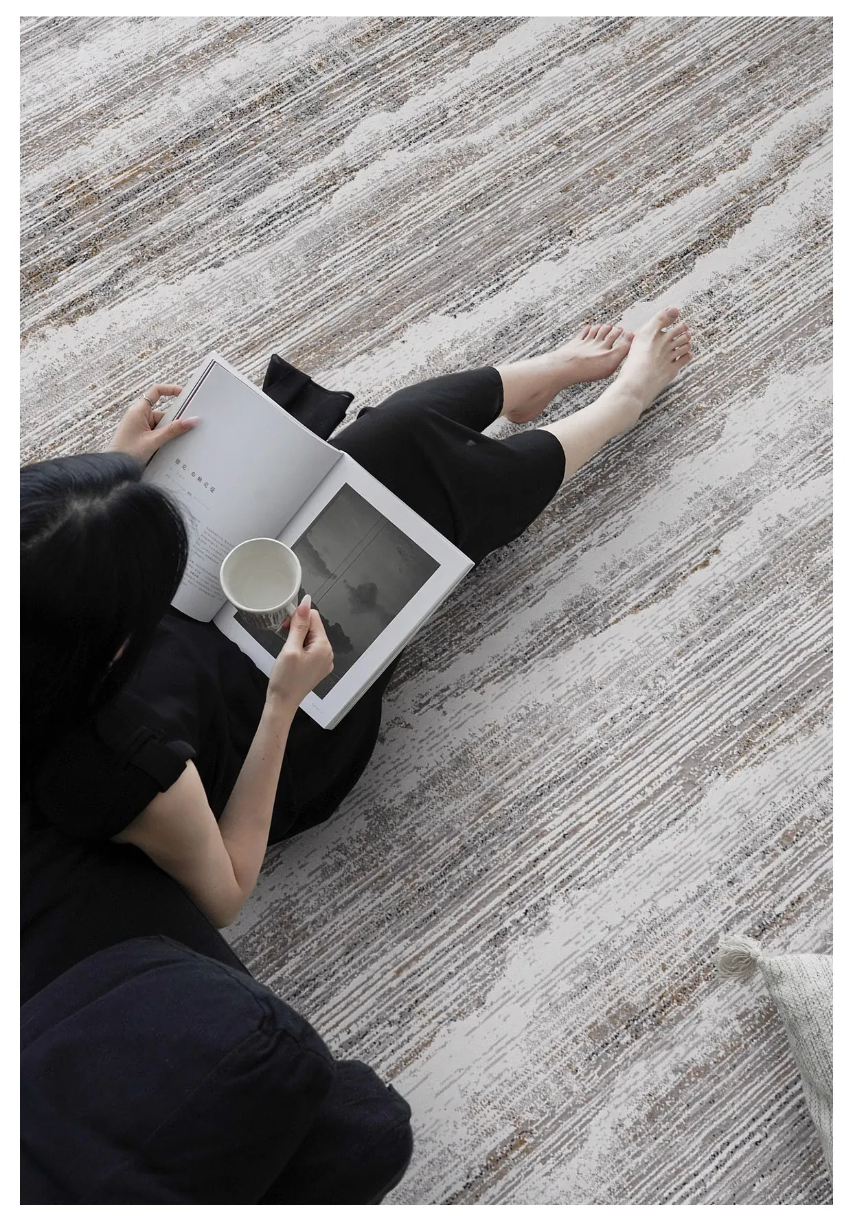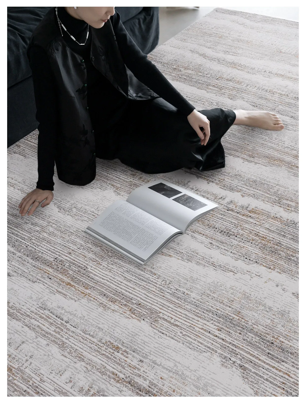 古臻トルコ製イタリアンミニマルデザインのラグ—高級感あふれるグレーのショートパイル薄手カーペット、リビングや寝室にぴったりのスタイリッシュなアイテム!