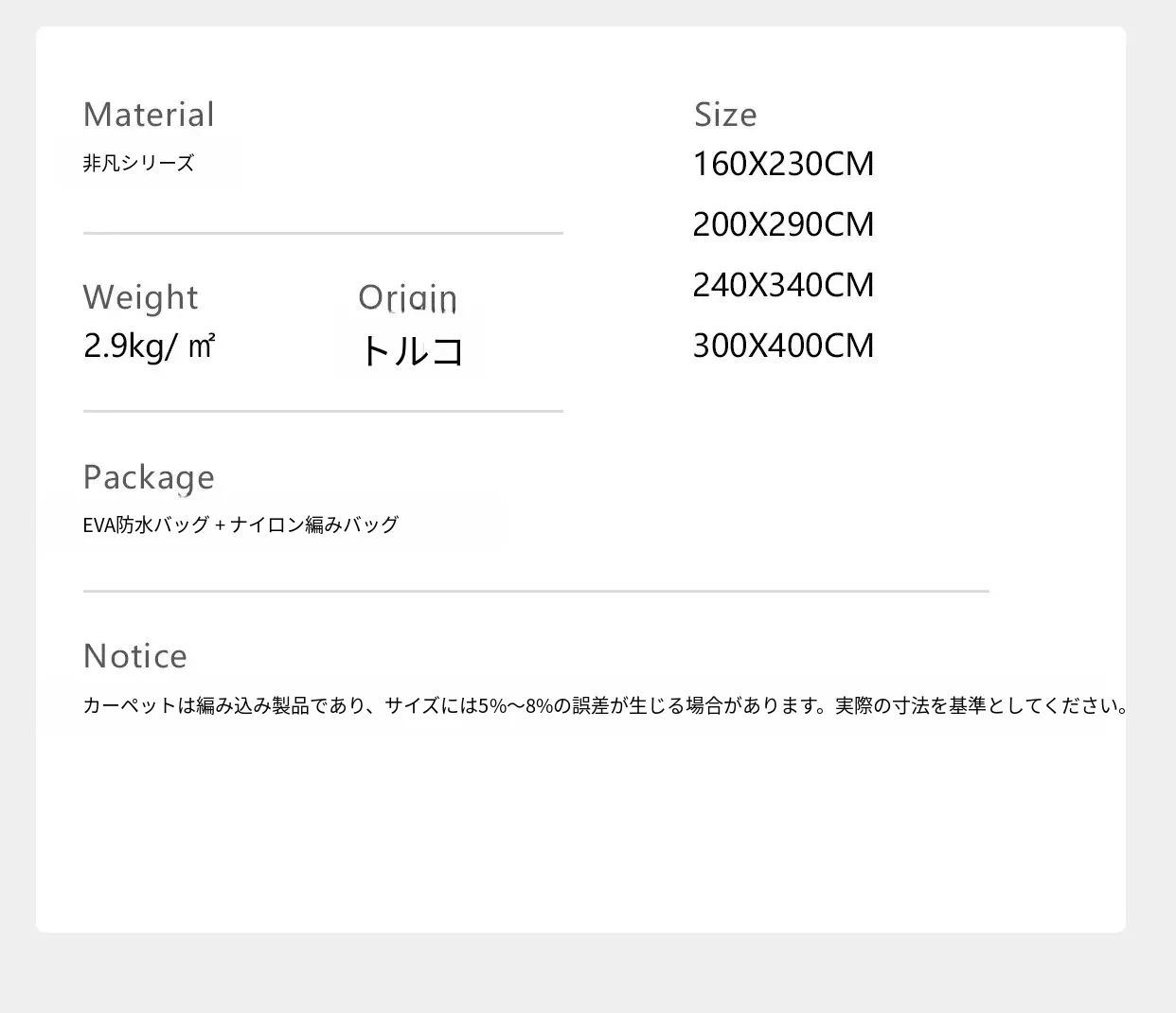 カーペットサイズ