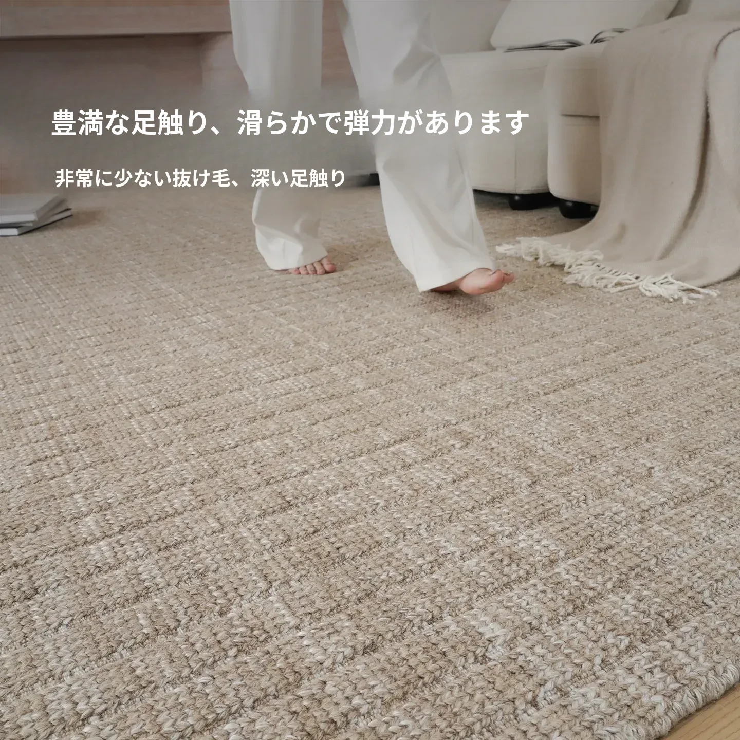 古臻・云隐|インド直輸入手作り無接着剤ウールリビングラグ、自然な侘び寂びの美、2026年新作高級感溢れる一品!
