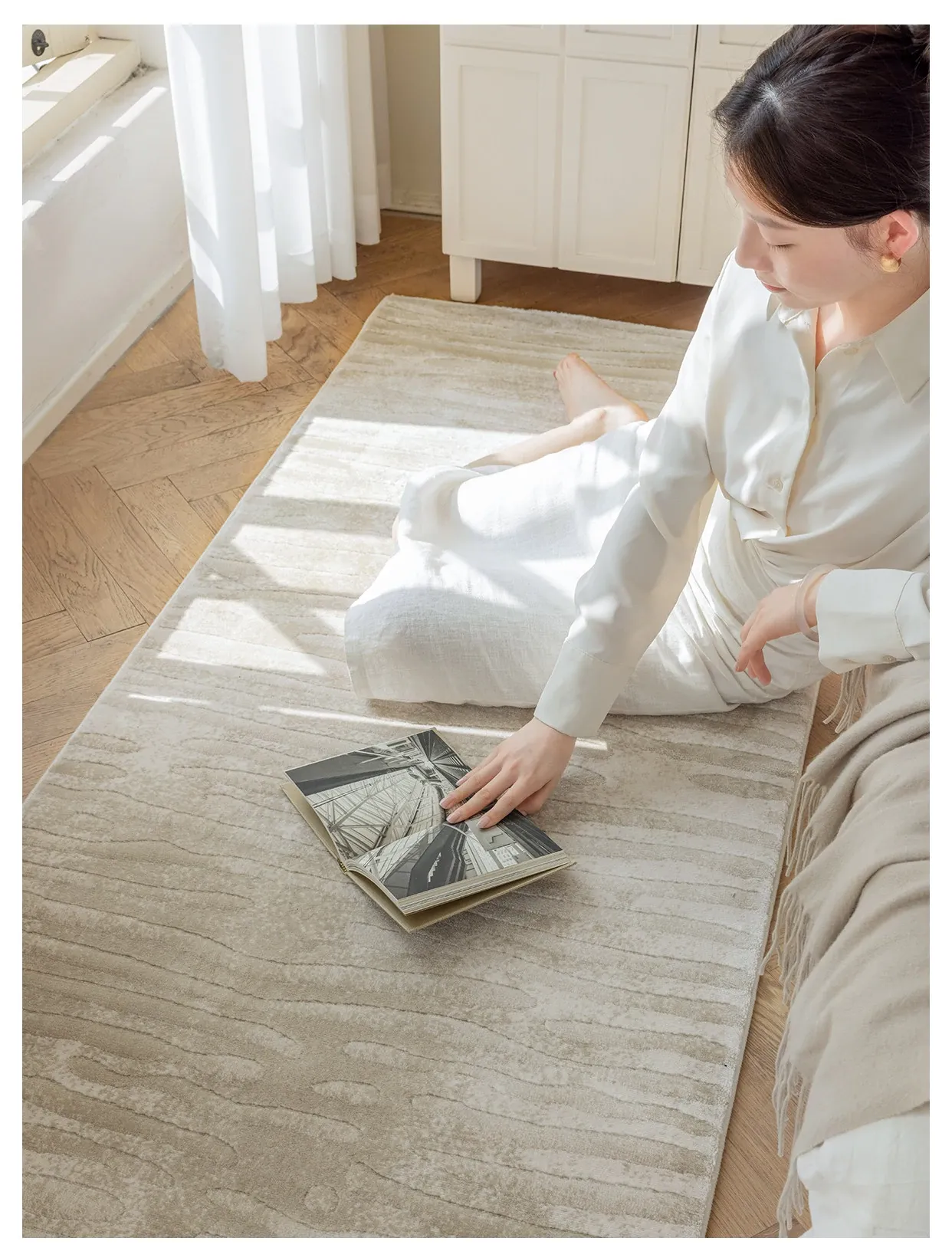 古臻輸入の高級感あふれるモダンシンプルな防水・抗汚れベッドサイドラグ - 子供部屋にも最適な素朴なデザインで、快適な寝室空間を演出します!