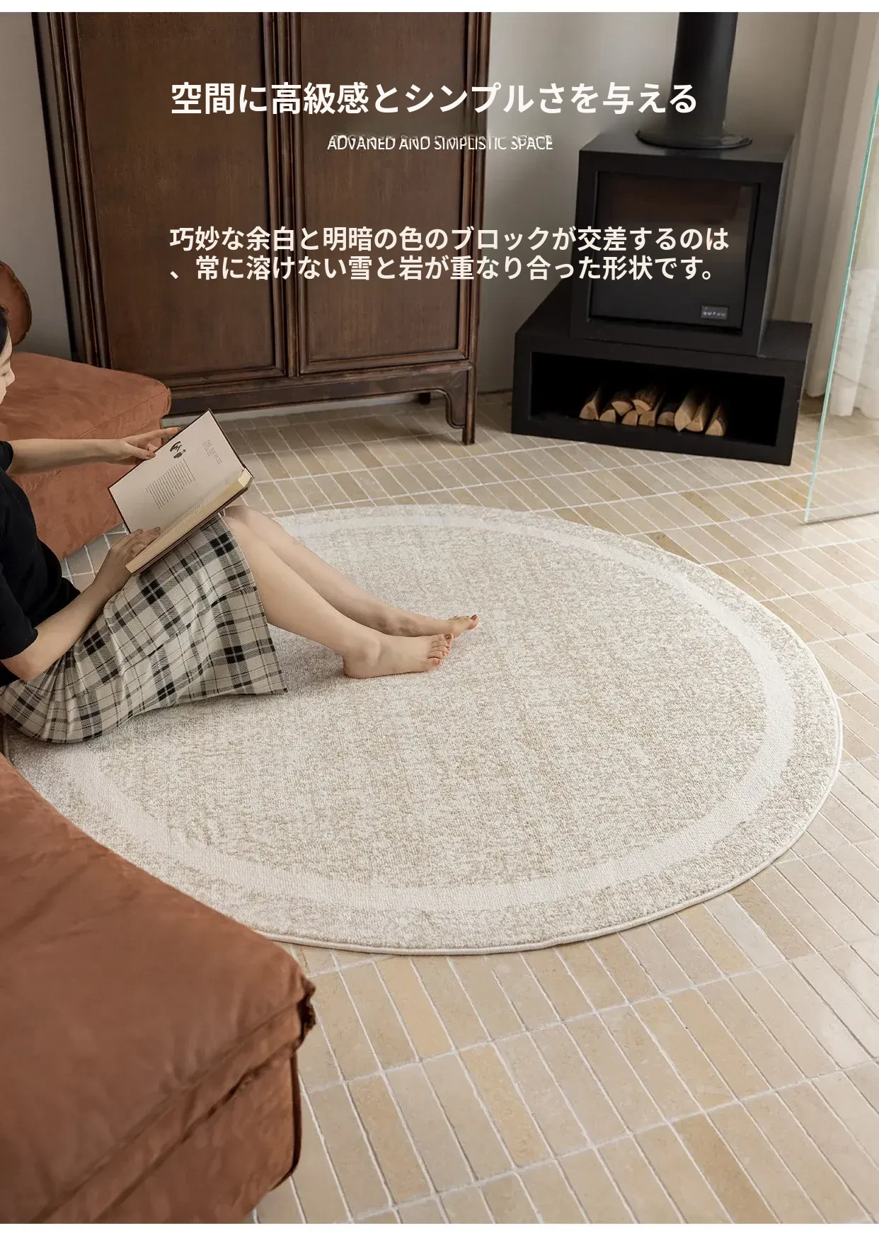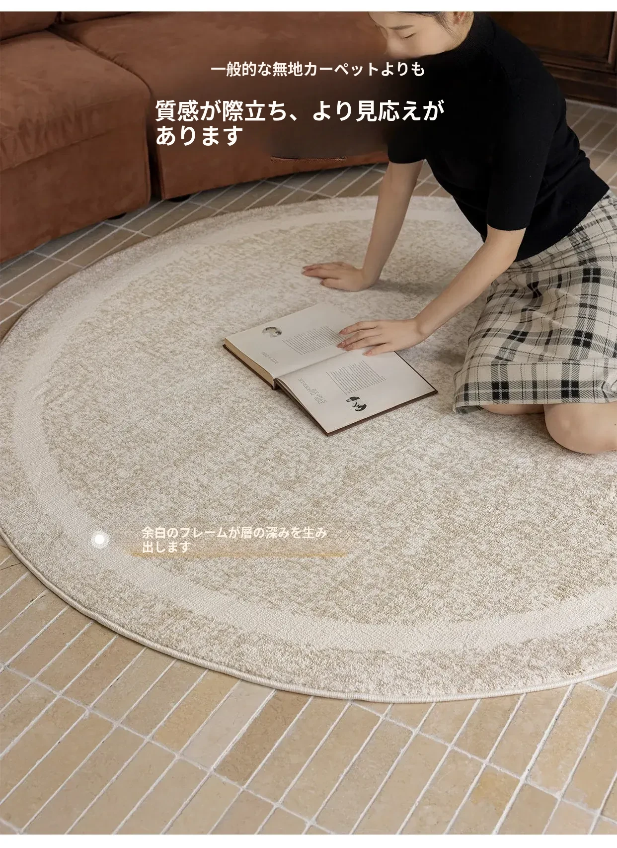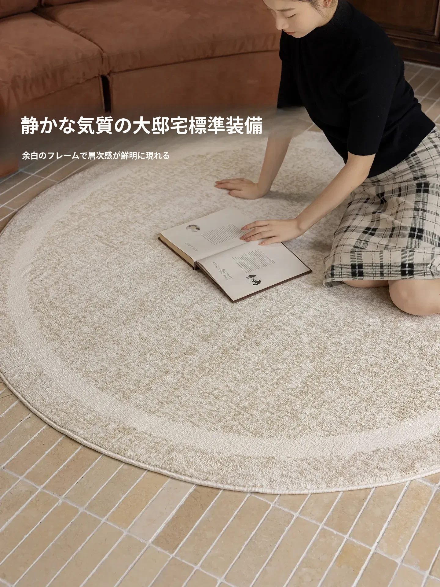 古臻半隐大邸宅風ミルクシルクラウンドカーペット|リビング・寝室・クローゼットに最適な軽奢で高級感あふれるデザイン!ソファやチェアの下にぴったりの贅沢な一品。