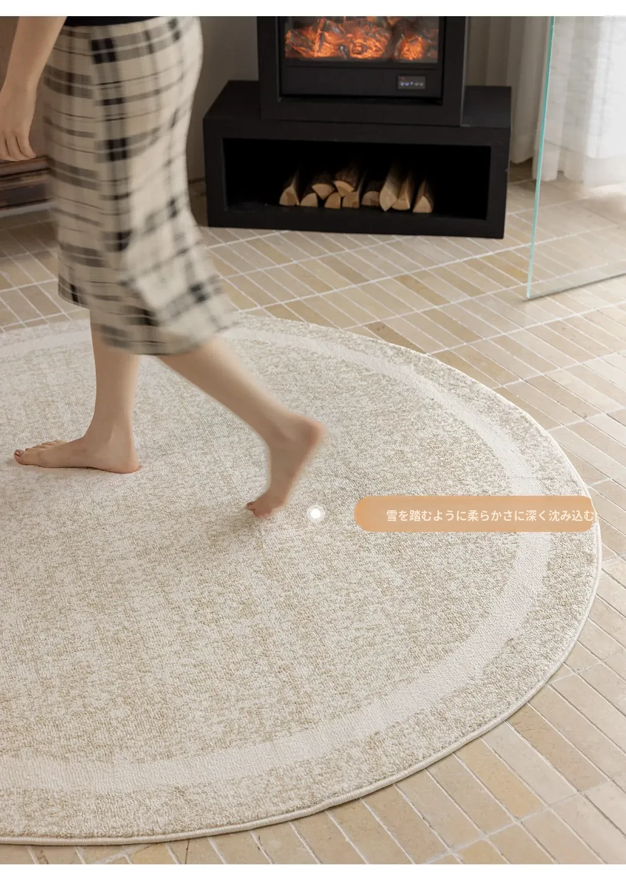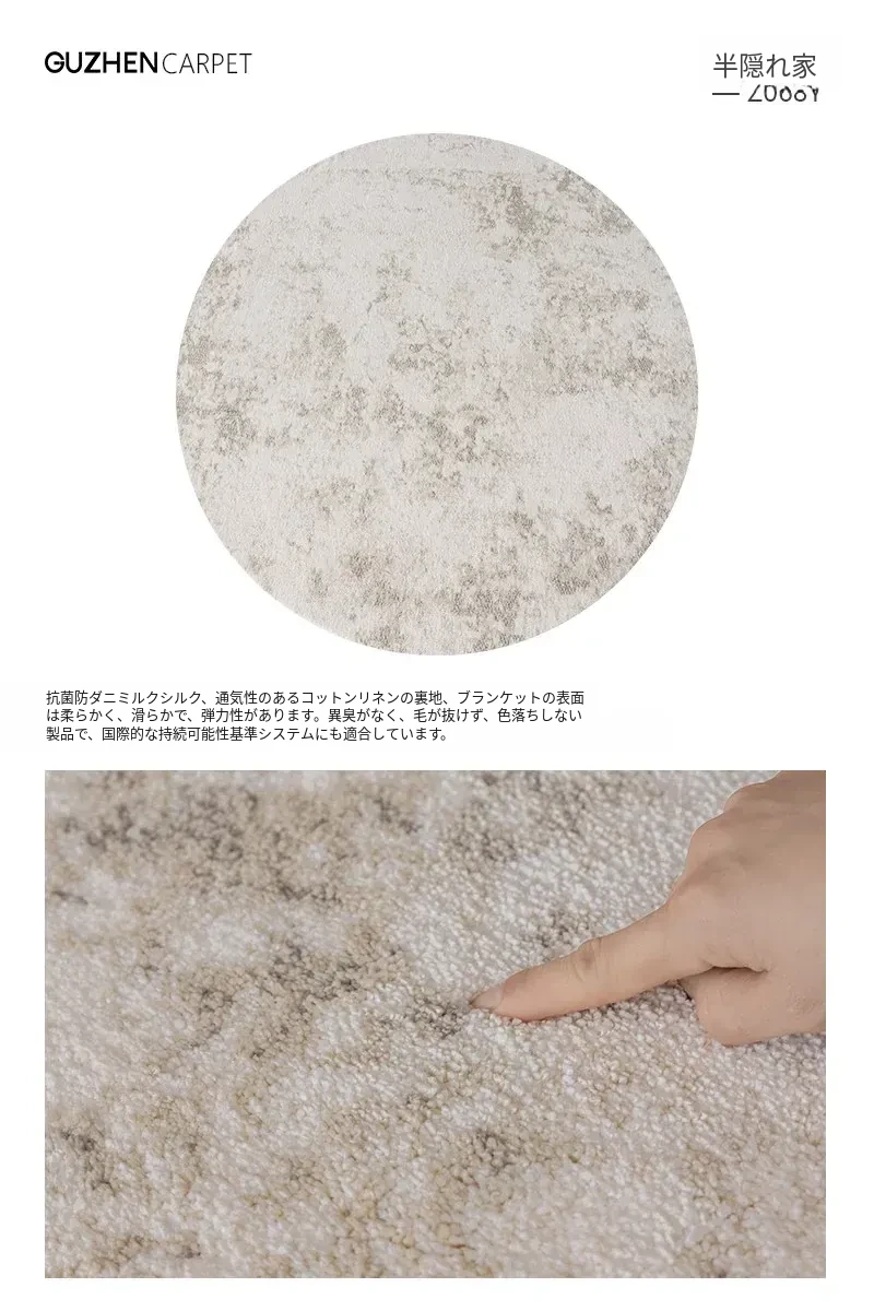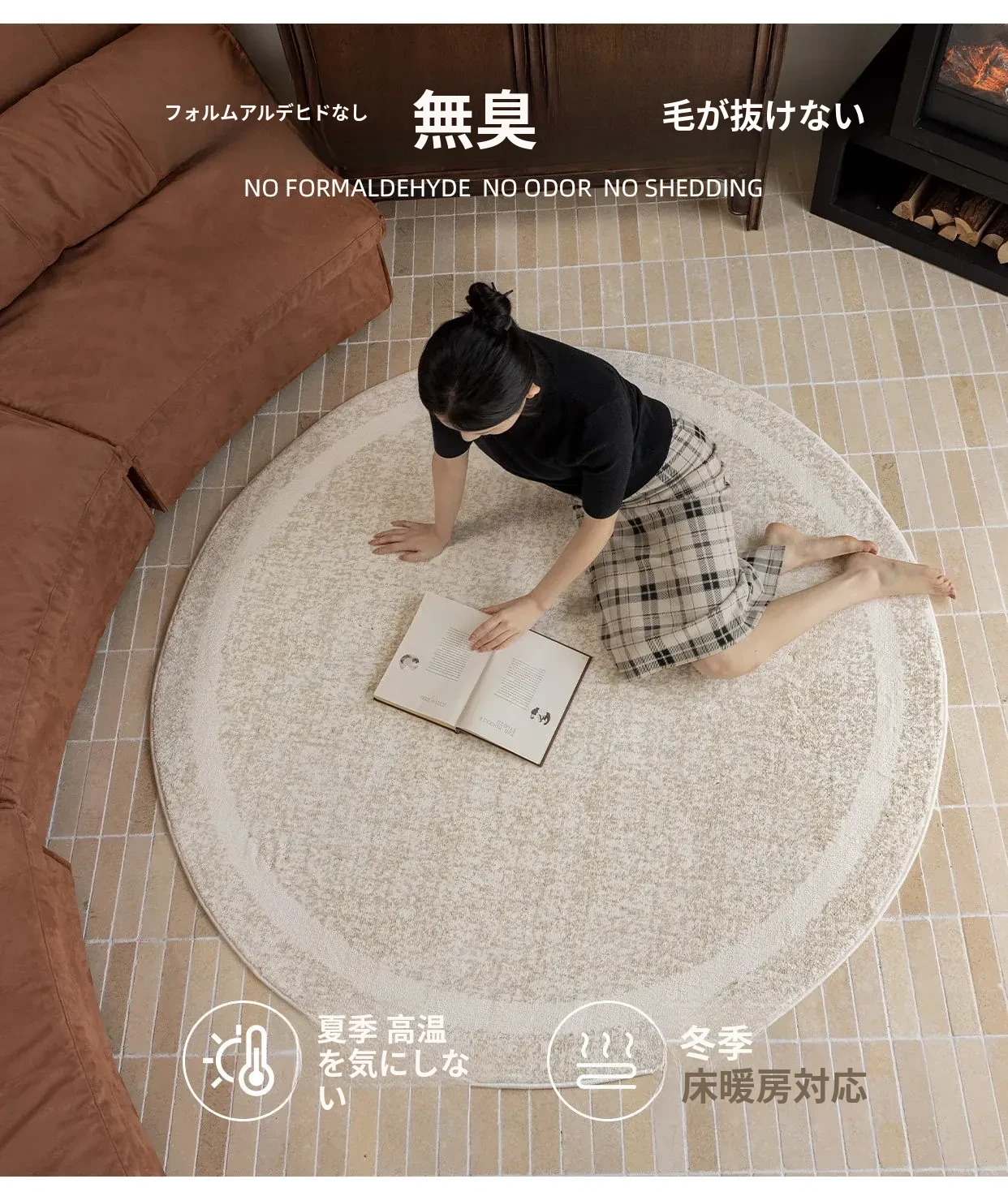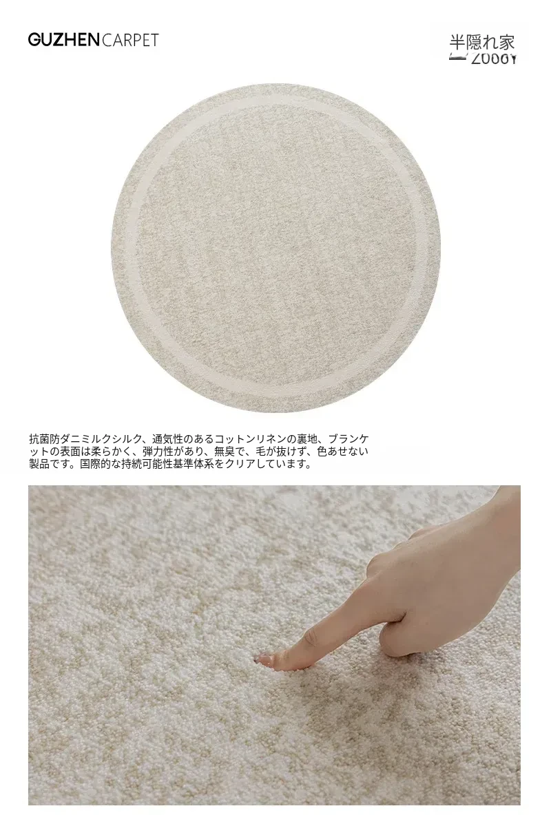 古臻半隐大邸宅風ミルクシルクラウンドカーペット|リビング・寝室・クローゼットに最適な軽奢で高級感あふれるデザイン!ソファやチェアの下にぴったりの贅沢な一品。