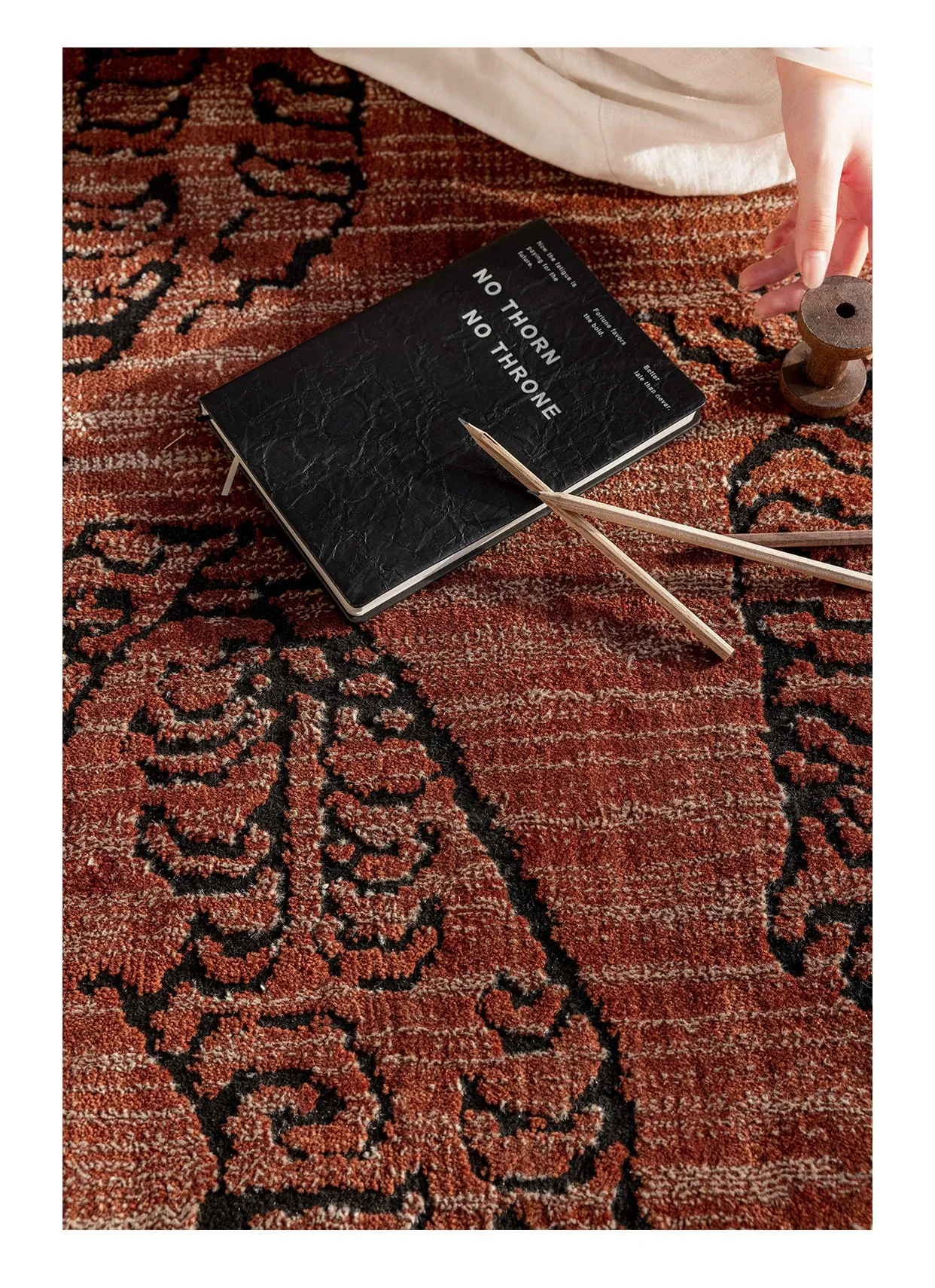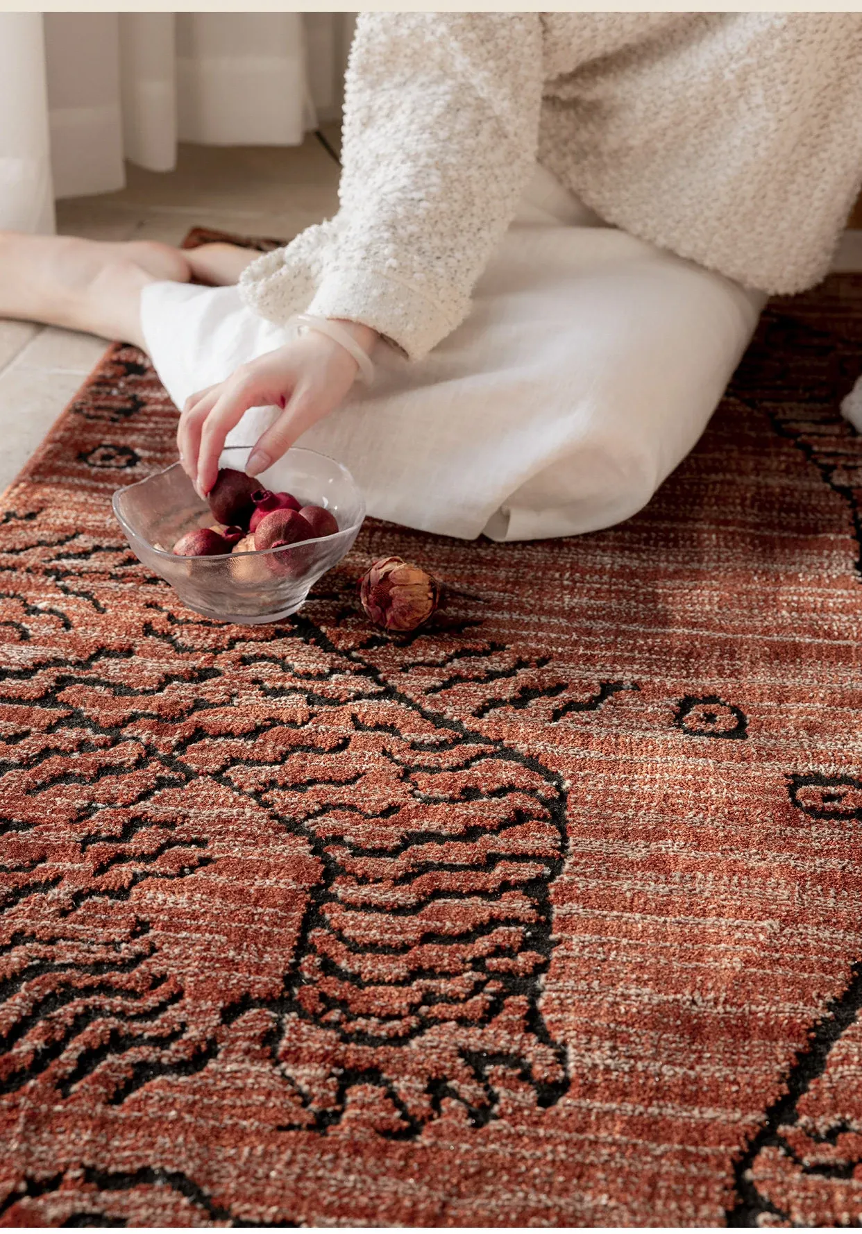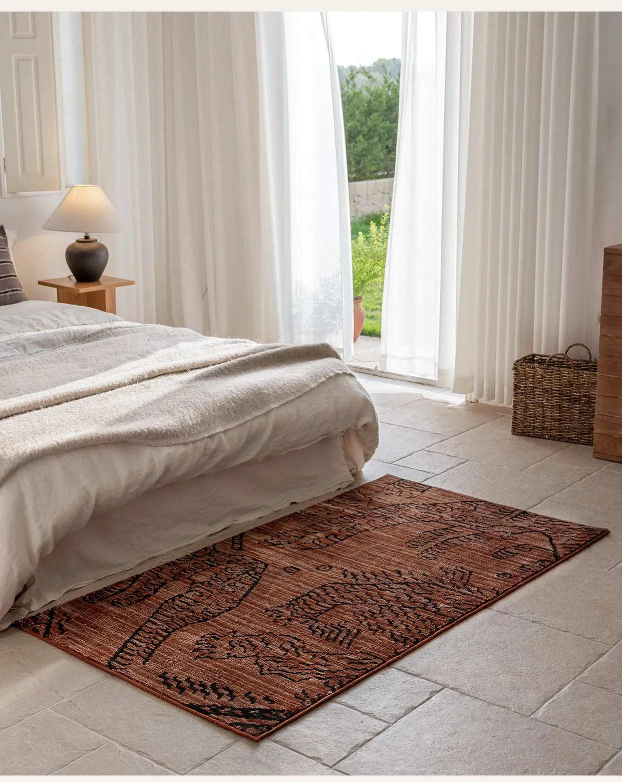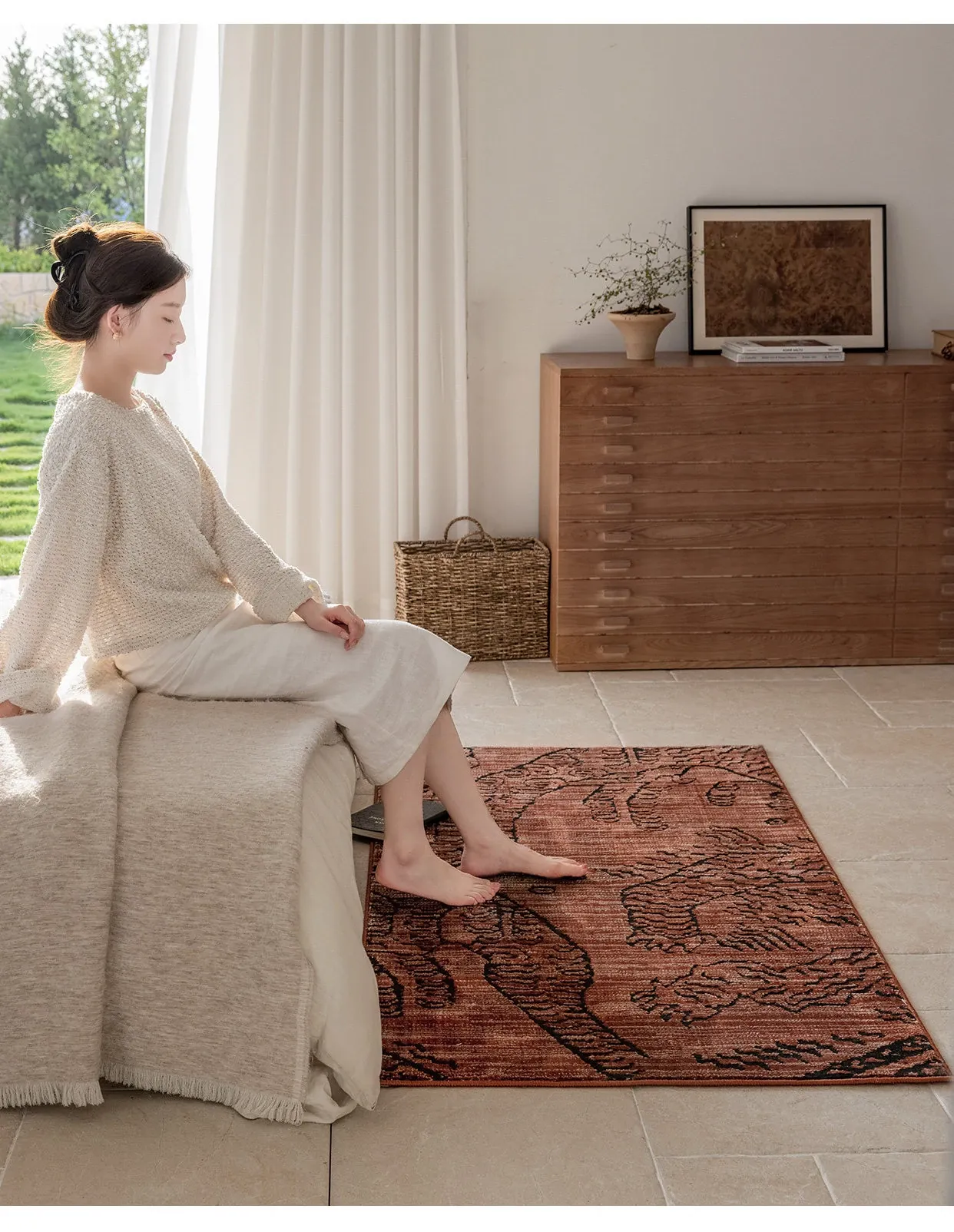 古典東方の虎デザイン、ラグジュアリーなヴィンテージレッドのウールラグ。接着剤不使用で、リビングやメラードの寝室にぴったりな高級感あふれるカーペット。