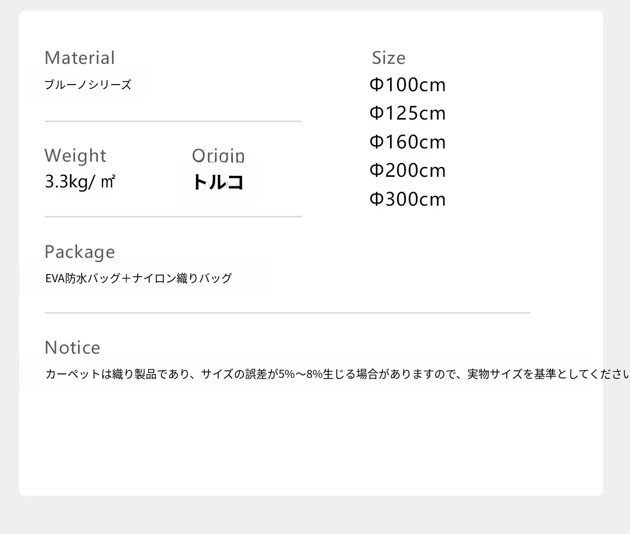 カーペットサイズ