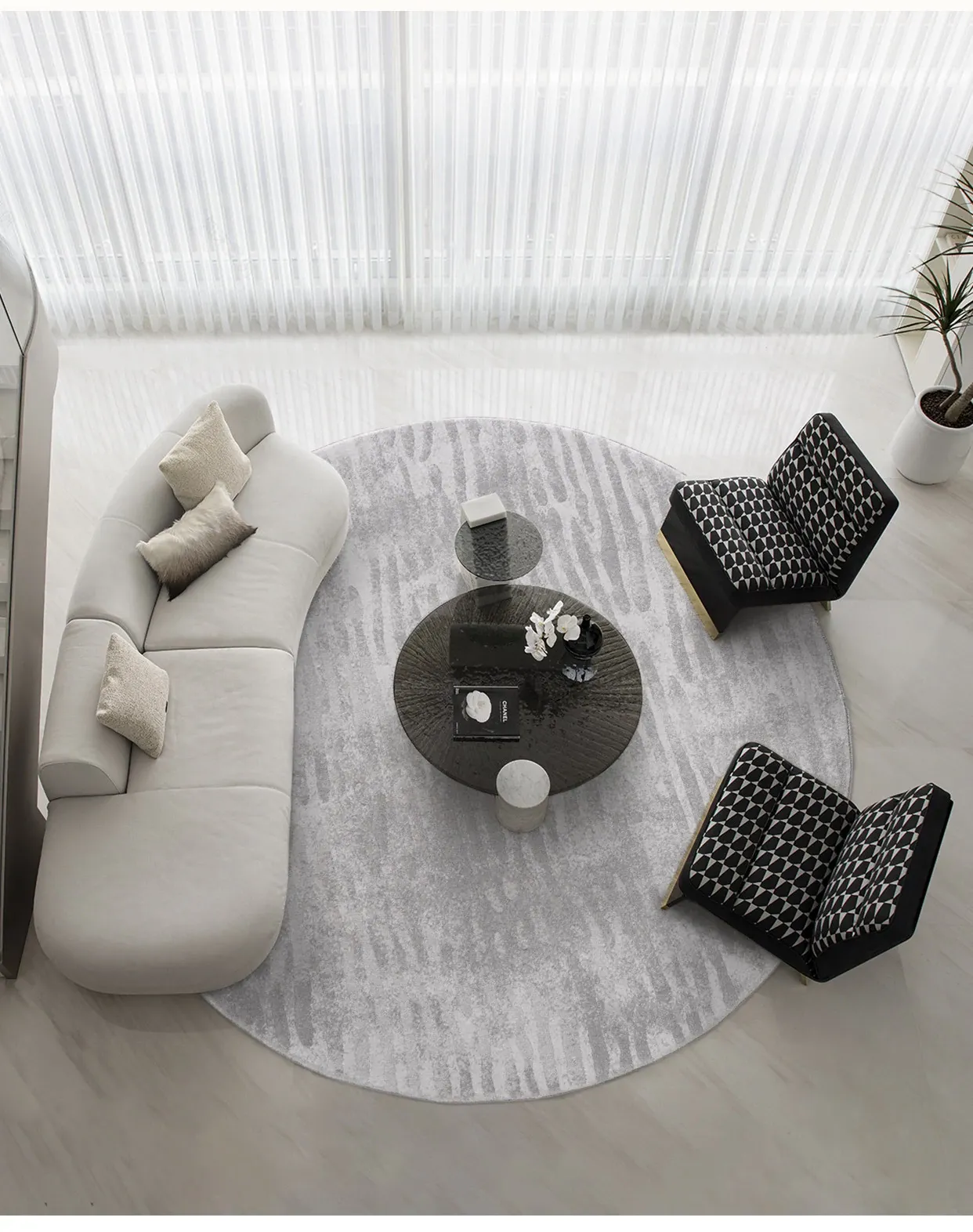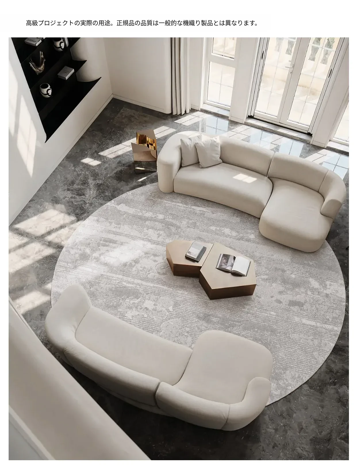 豪華感溢れるおすすめ!古典とモダンが融合したミニマリストデザインの大サイズラウンドラグ、防水・除ホルムアルデヒド機能付きの高級ヴィラリビング用カーペット