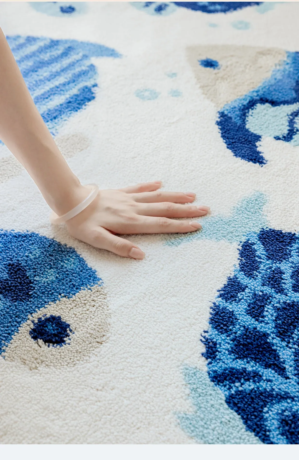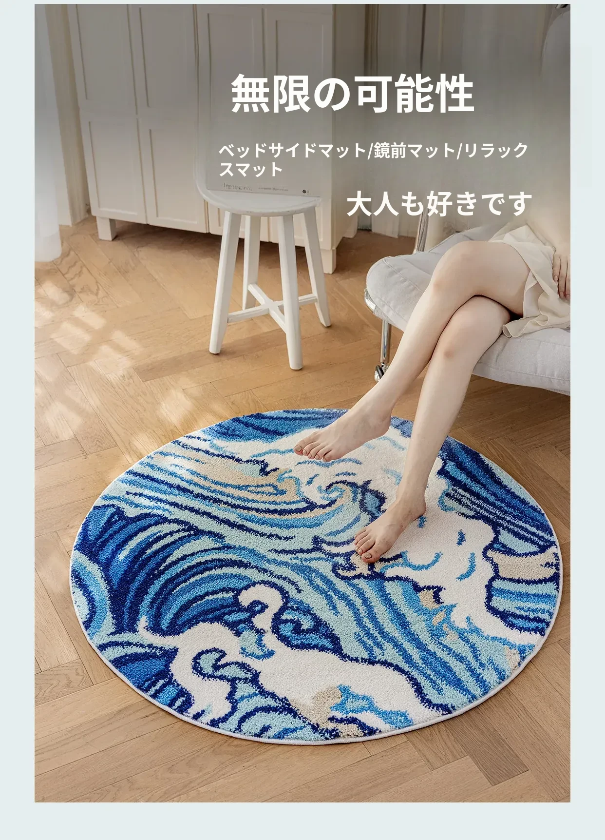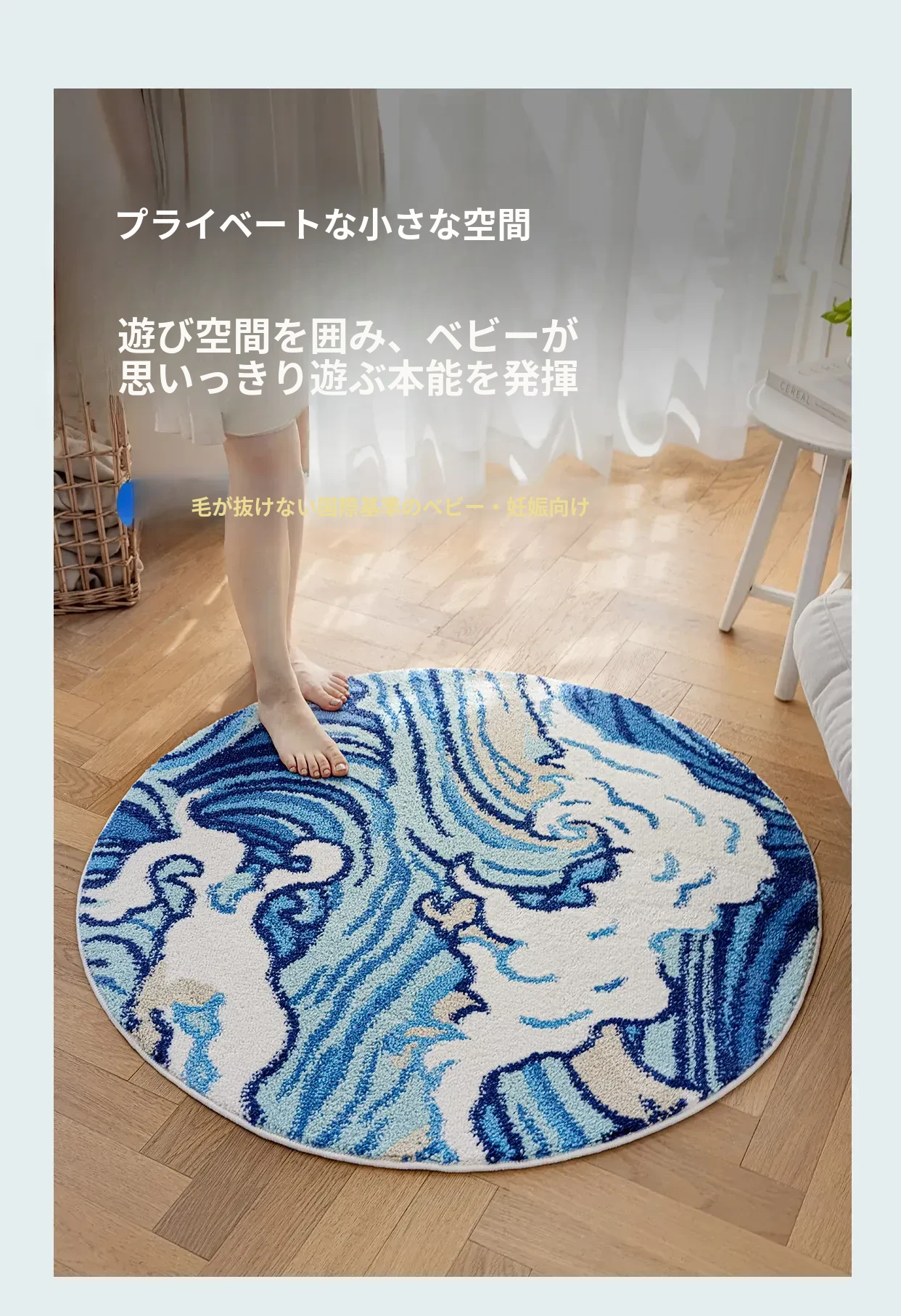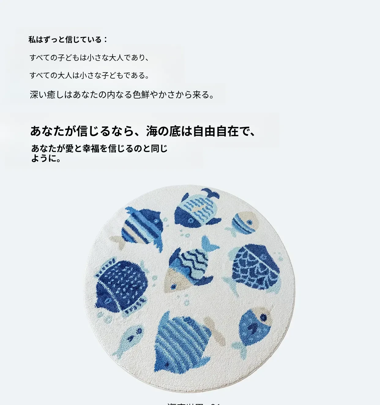 海の世界をテーマにした子供用カーペット|可愛らしい丸型デザインで、冬のベッドサイドにぴったり!厚手ミルクシルク素材で、ふわふわの暖かさをお届けします。お子様の夢の世界を演出するアイテムです!