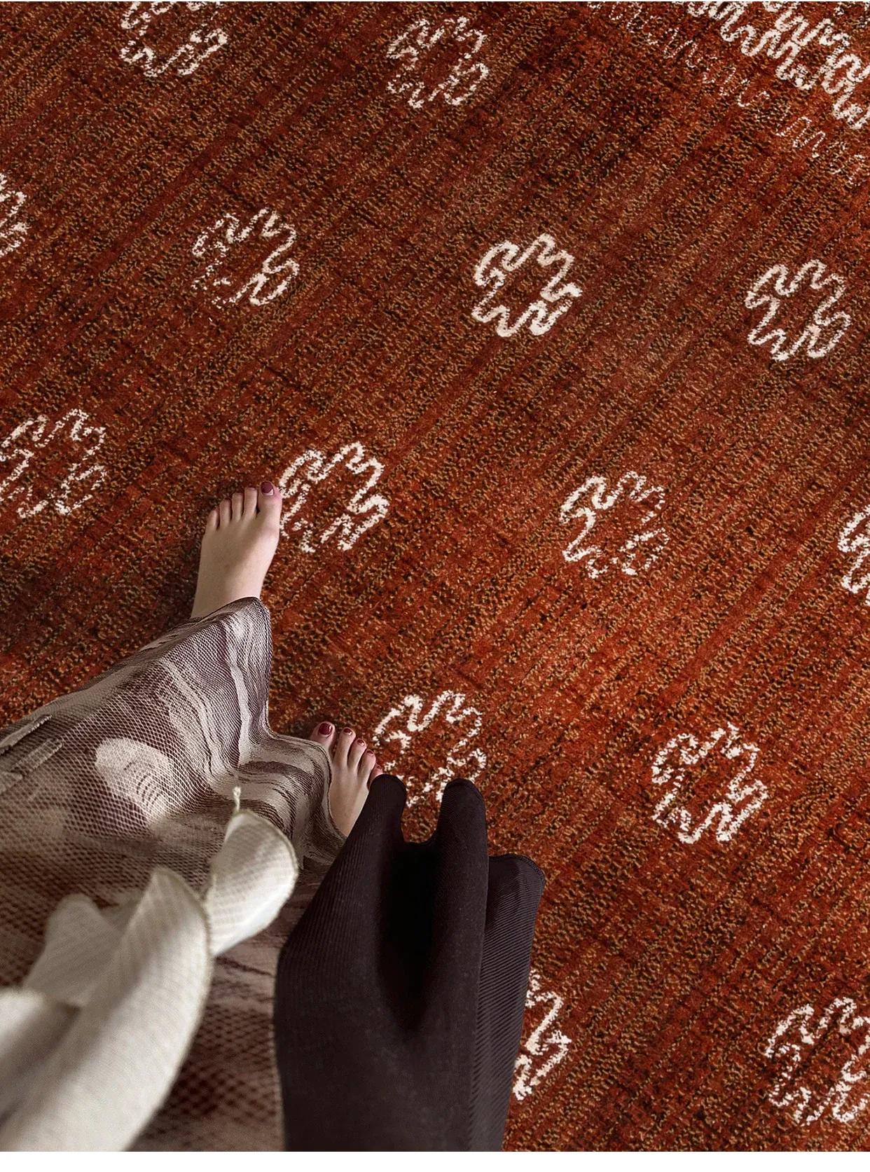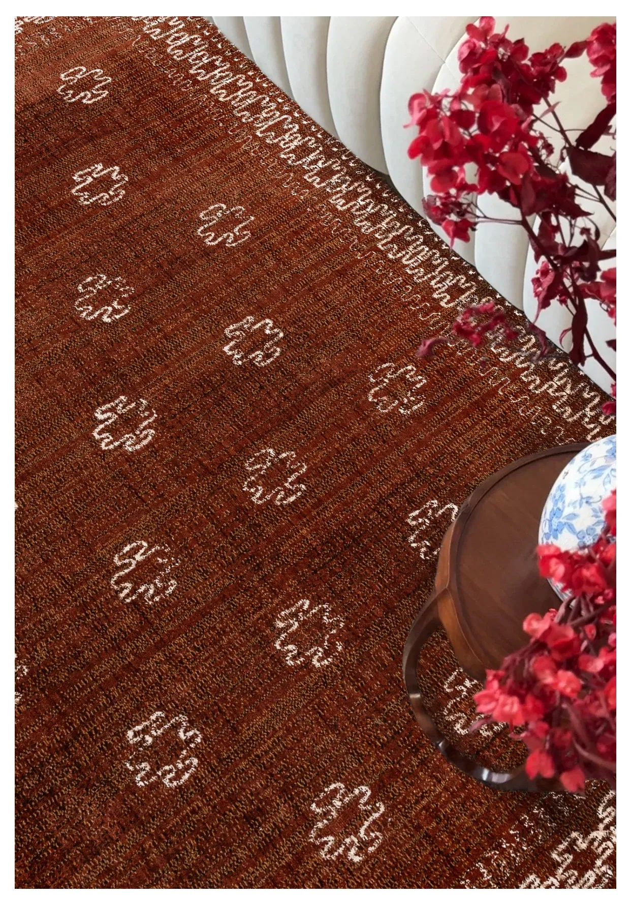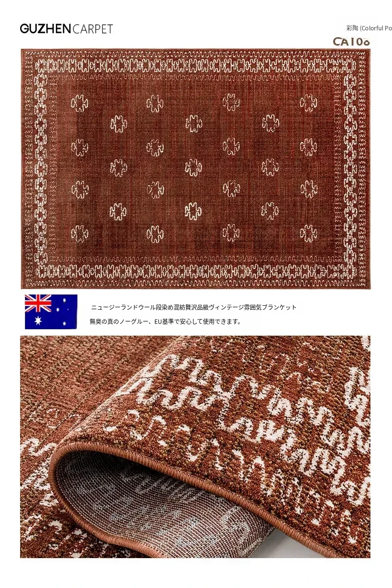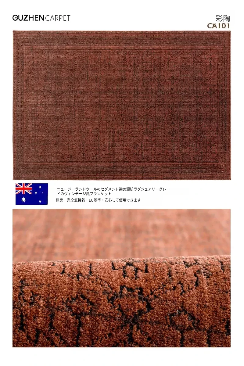 高級感あふれる古典的な赤色の輸入ウールカーペット - 結婚式やリビングルームに最適なフレンチモダンスタイルの別荘用寝室カーペット、接着剤不使用で安心!