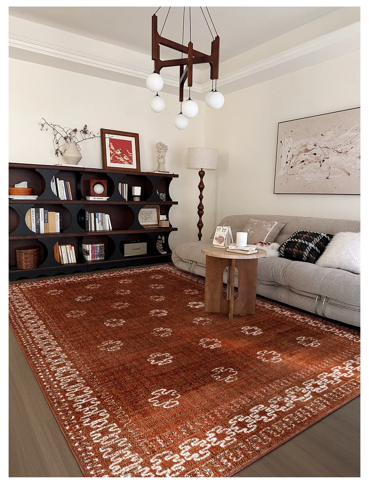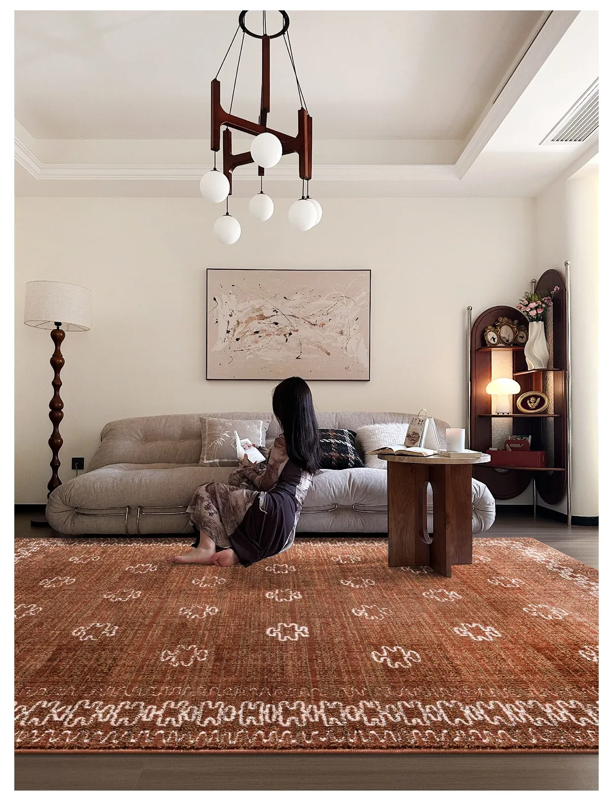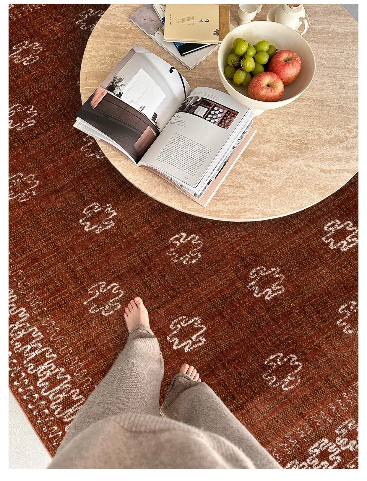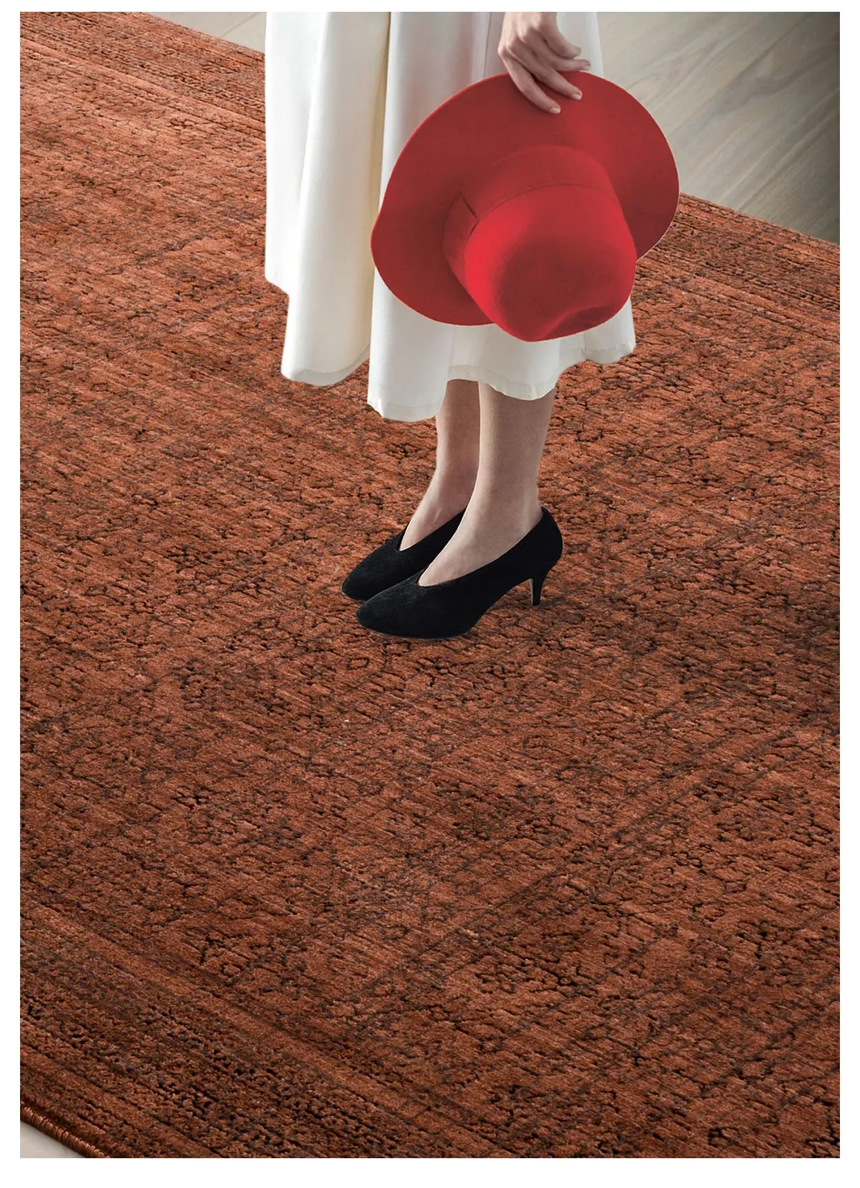 高級感あふれる古典的な赤色の輸入ウールカーペット - 結婚式やリビングルームに最適なフレンチモダンスタイルの別荘用寝室カーペット、接着剤不使用で安心!