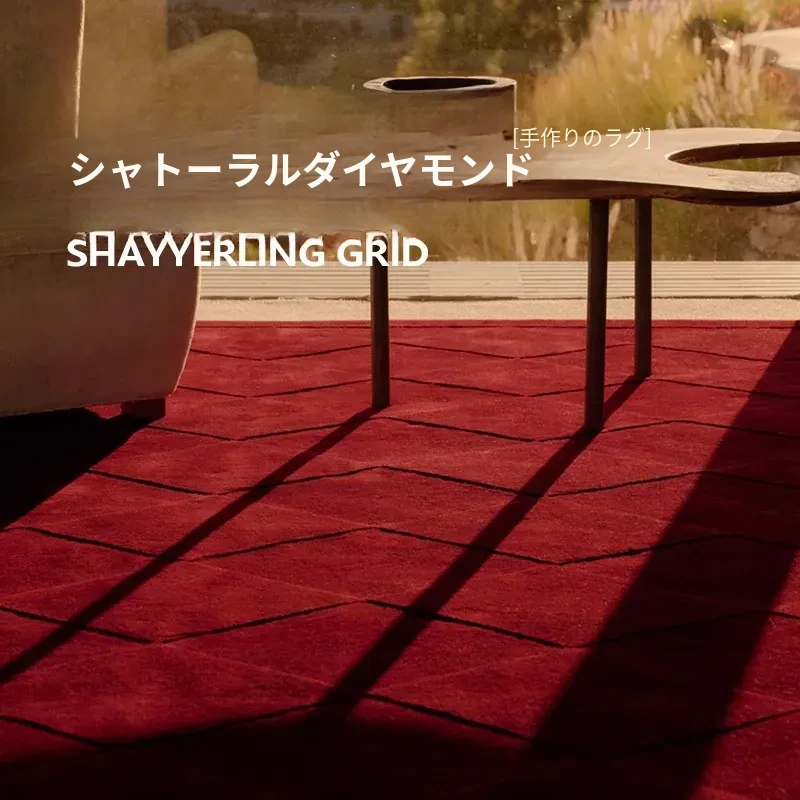 手作ダイヤモンド型アンティーク風レトロレッドカーペット - 北欧風のシンプルでラグジュアリーなデザイン、厚手で寝室のベッドサイドにぴったり!