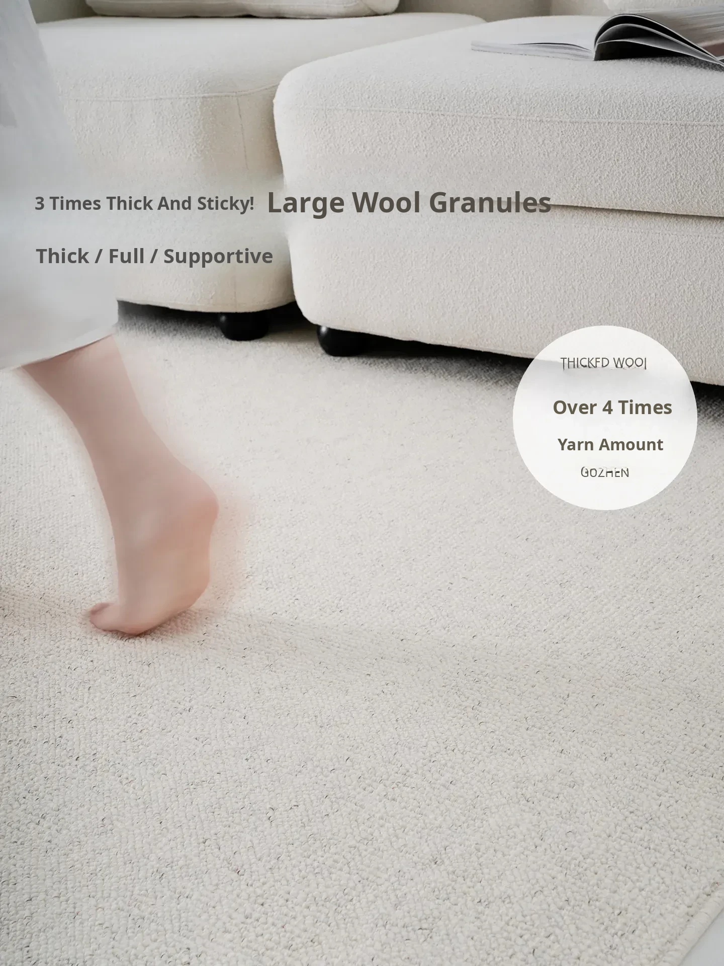 Guzhen Imported Wool Blend Popcorn Area Rug - Minimalist Solid Color Carpet for Living Room and Bedroom, Perfect for Creating a Cozy Atmosphere Under Your Coffee Table