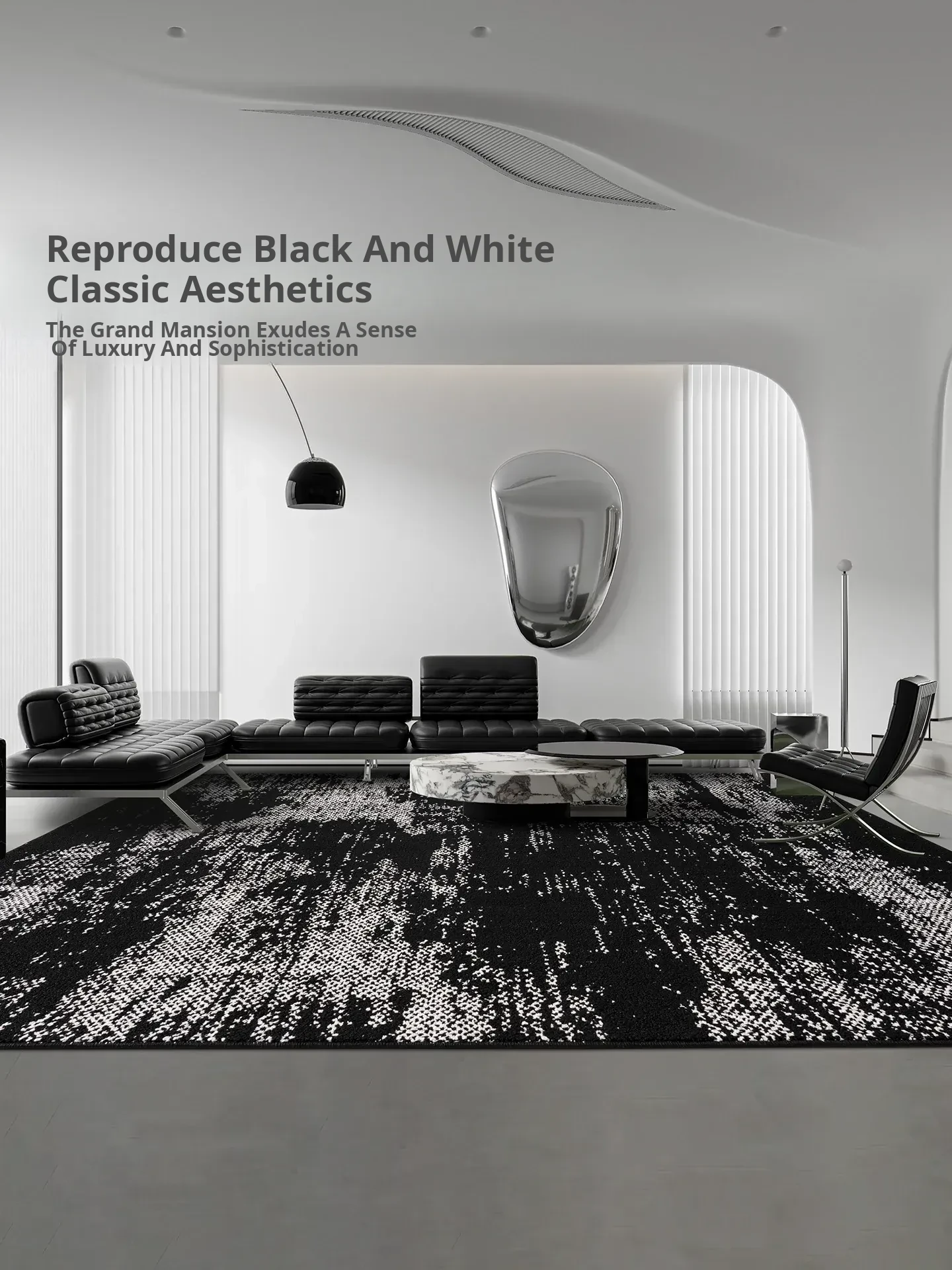 Luxurious Black Area Rug for Living Room - 2026 New Collection, Elegant Dark Tone, Designer Waterproof & Easy-Clean, Perfect for Modern Homes