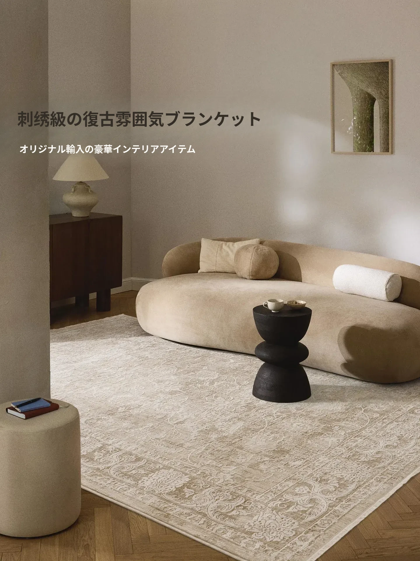 古臻手工ウールラグ|インド輸入のシンプルな侘寂スタイル、ラグジュアリーなフレンチ中古デザインで、リビングや寝室に上質な雰囲気をプラス!