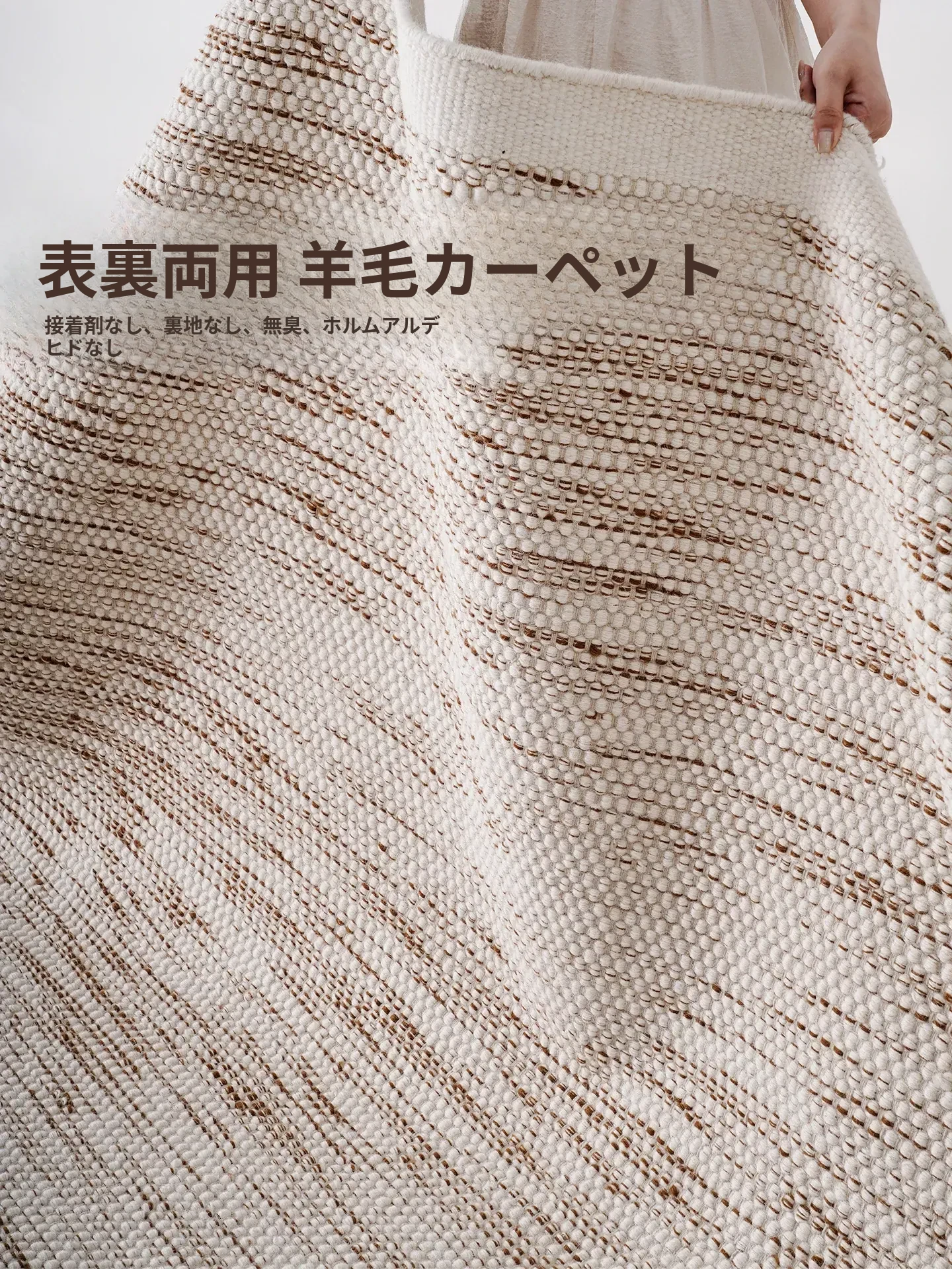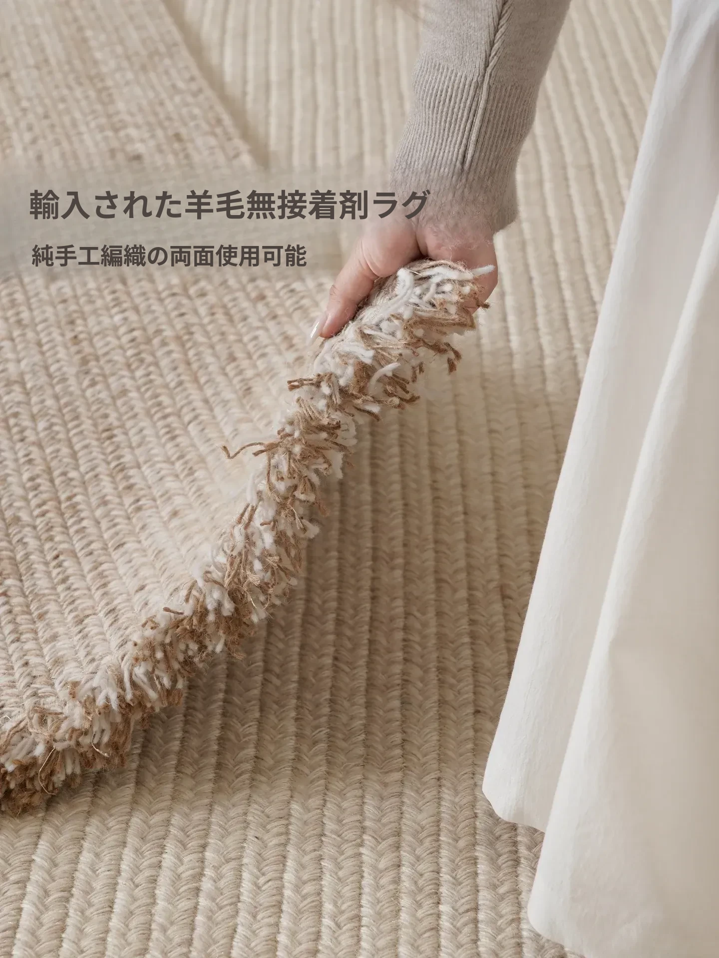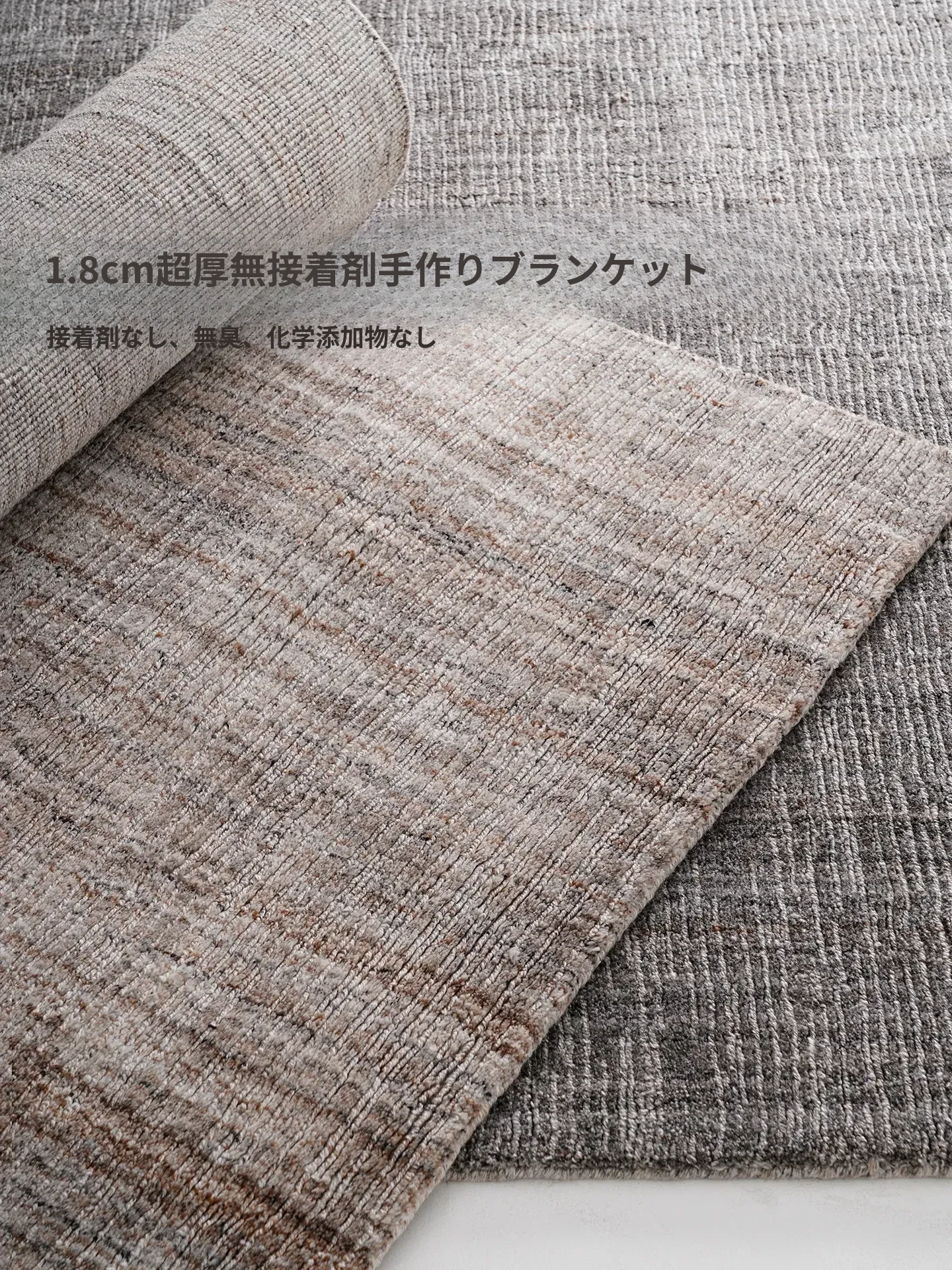 古臻手作の無接着ウールカーペット - シンプルなリネンデザイン、リビングや寝室に最適な高級フリンジブランケット。心地よい触感とナチュラルな風合いで、あなたの空間を美しく彩ります。