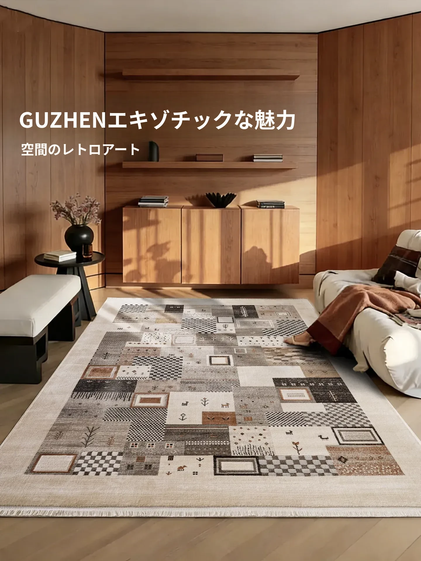 古臻・エイマ輸入ノングルー手作りラグ マンション向け高級レトロ侘寂スタイル ベルベットのような肌触りで、ヴィンテージ感あふれるリビングや寝室にぴったり!