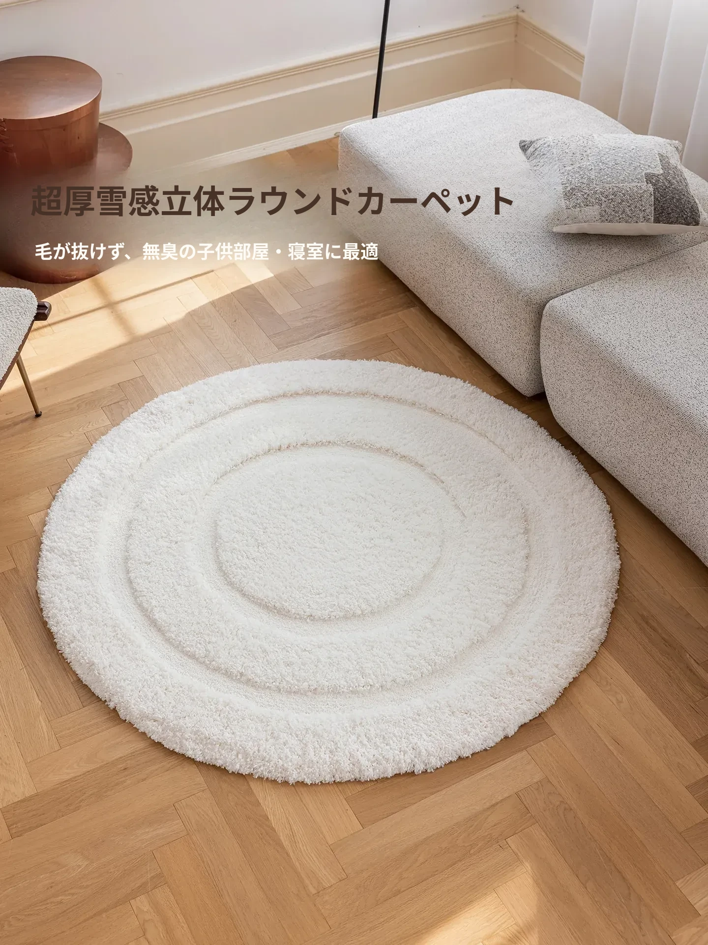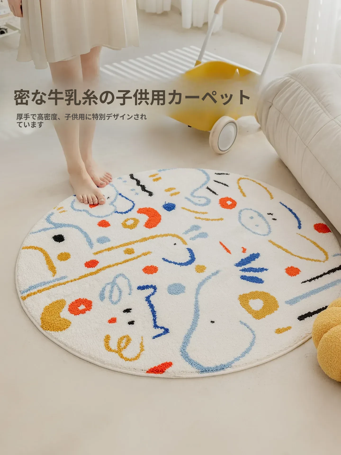 古臻 2026新作 丸型ラグマット - ベッドサイドや子供部屋にぴったり!柔らかなミルクシルク素材を使用し、猫と遊ぶのに最適な厚手の感触を実現。心地よい空間を演出します!
