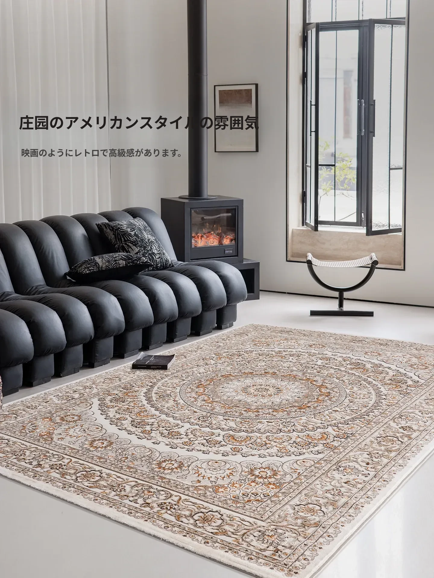 古典アメリカンレトロカーペット - 高級感溢れるラグ、ラグジュアリーな別荘や大邸宅にぴったり。リビングやベッドルームに最適なオシャレなティーテーブルカーペット!