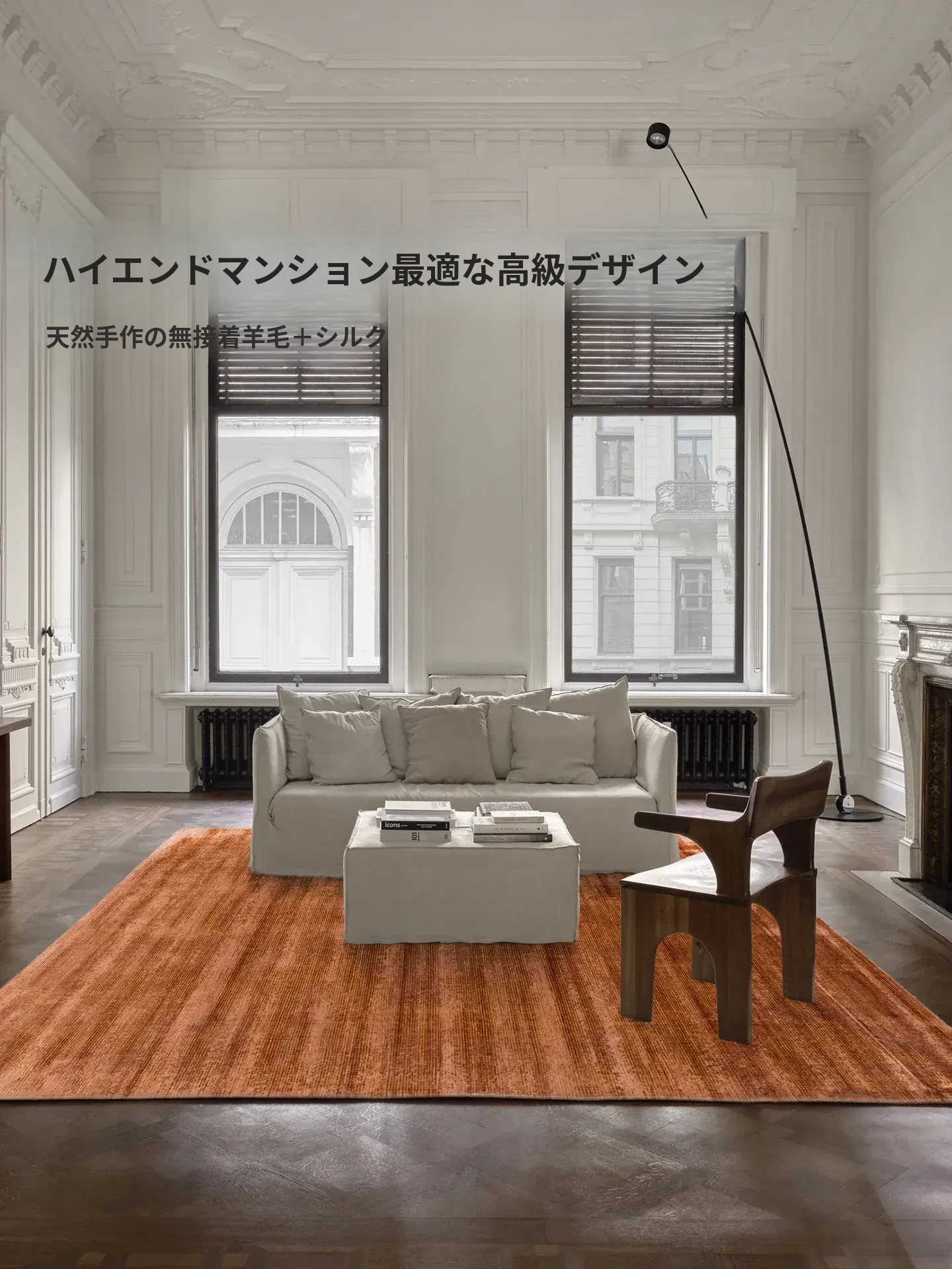 古臻インポート無地テンサ地毯|手作り接着剤不使用、別荘向けのラグジュアリーでミニマルな中古風オレンジ色、汚れに強い!